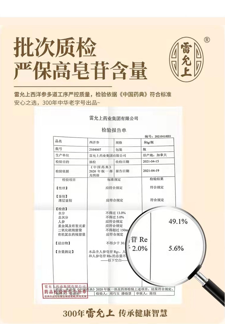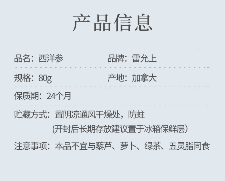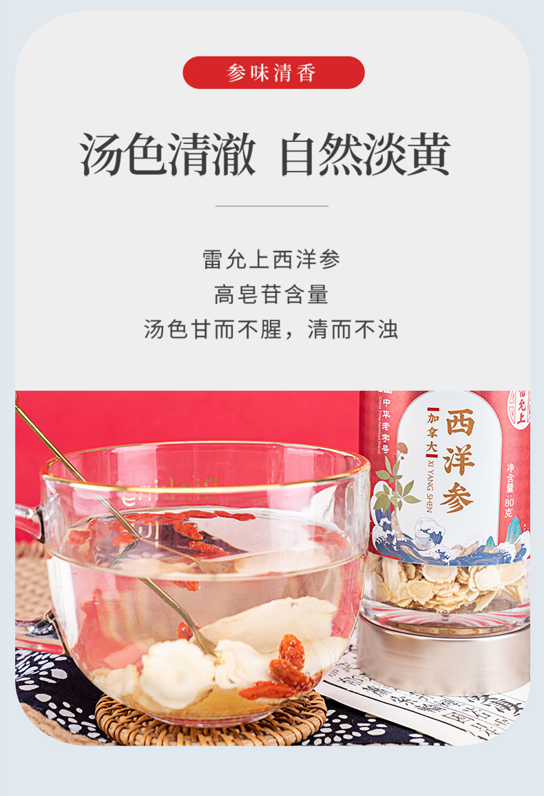 雷允上直营 | 加拿大进口西洋参80g/瓶 北美安大略湖原采泡茶煲汤煲粥