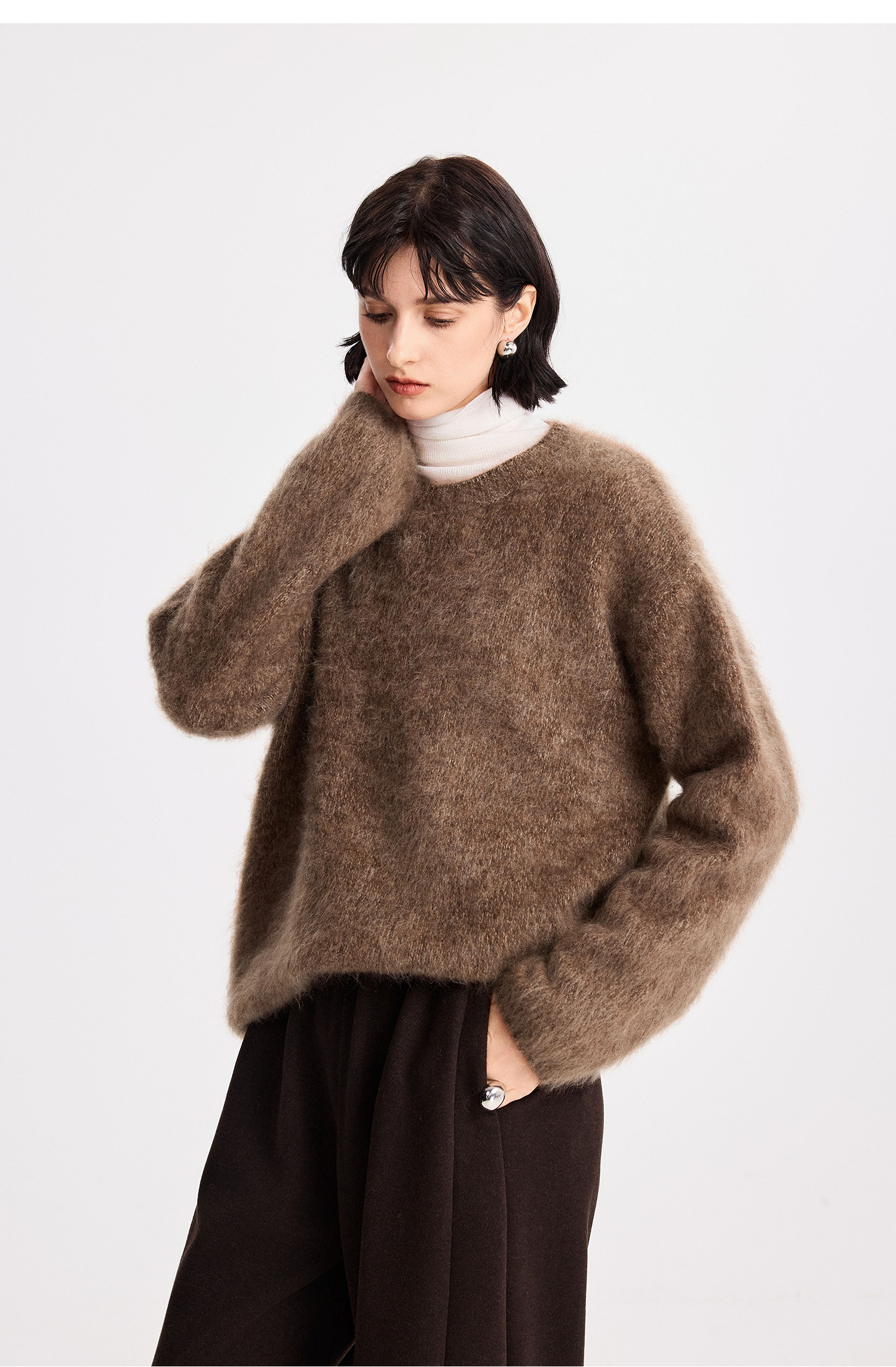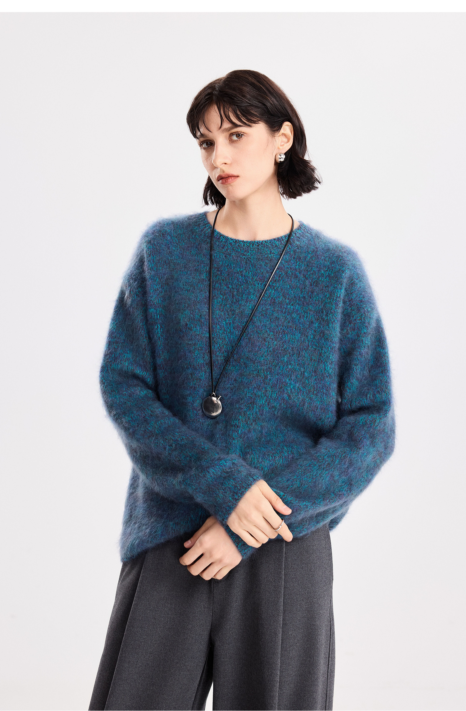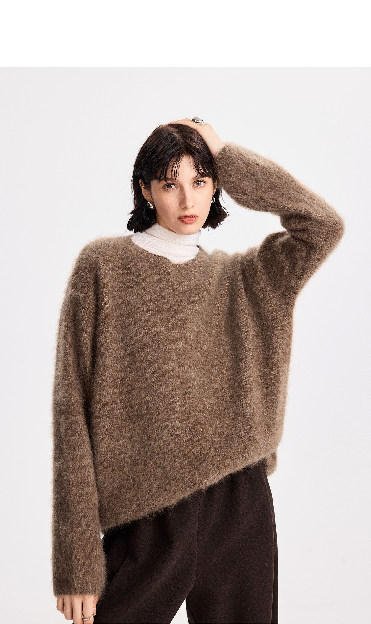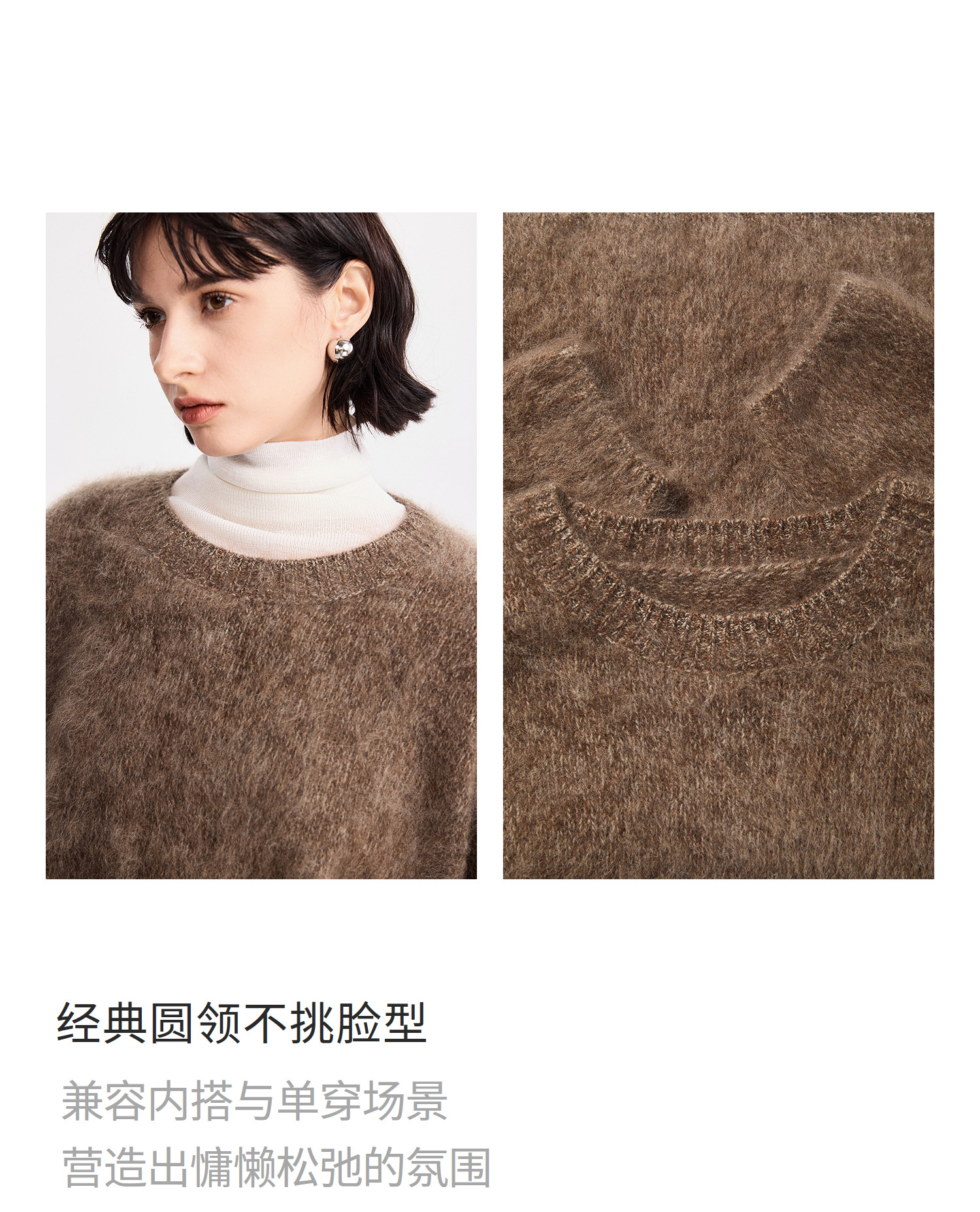 初棉拉毛全羊毛花纱设计套头毛衣女25秋冬绒毛感微宽松针织上衣366605077