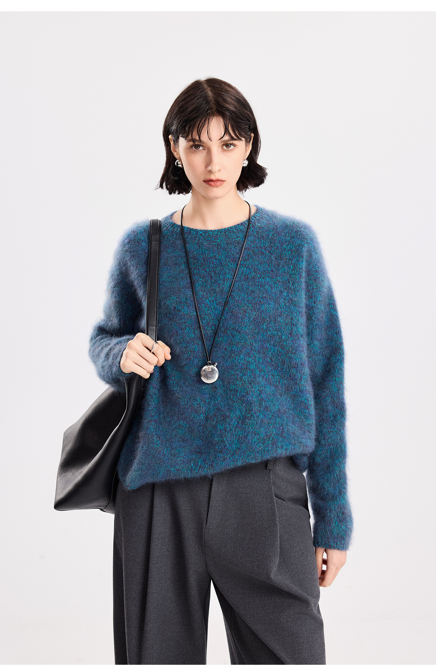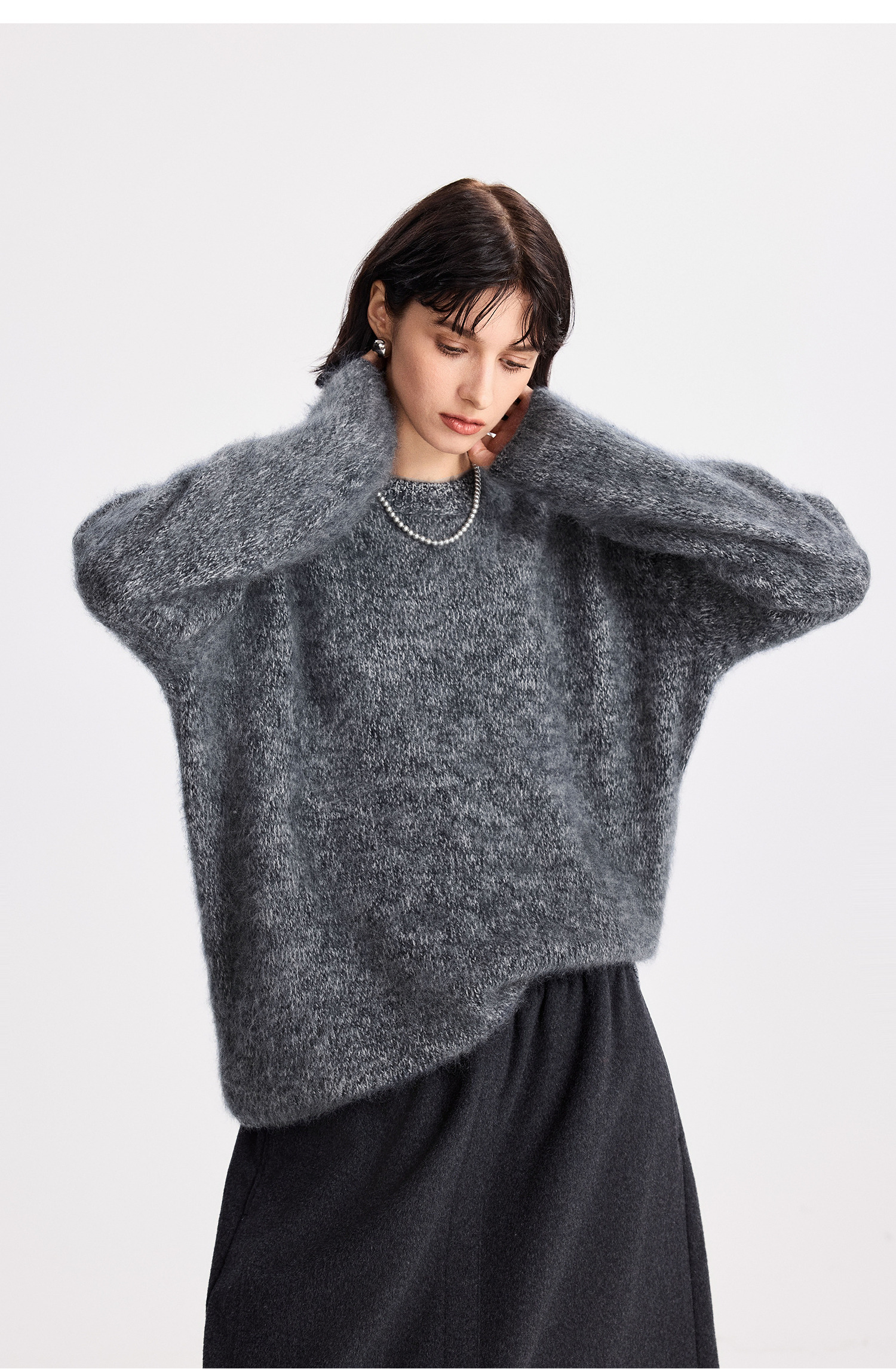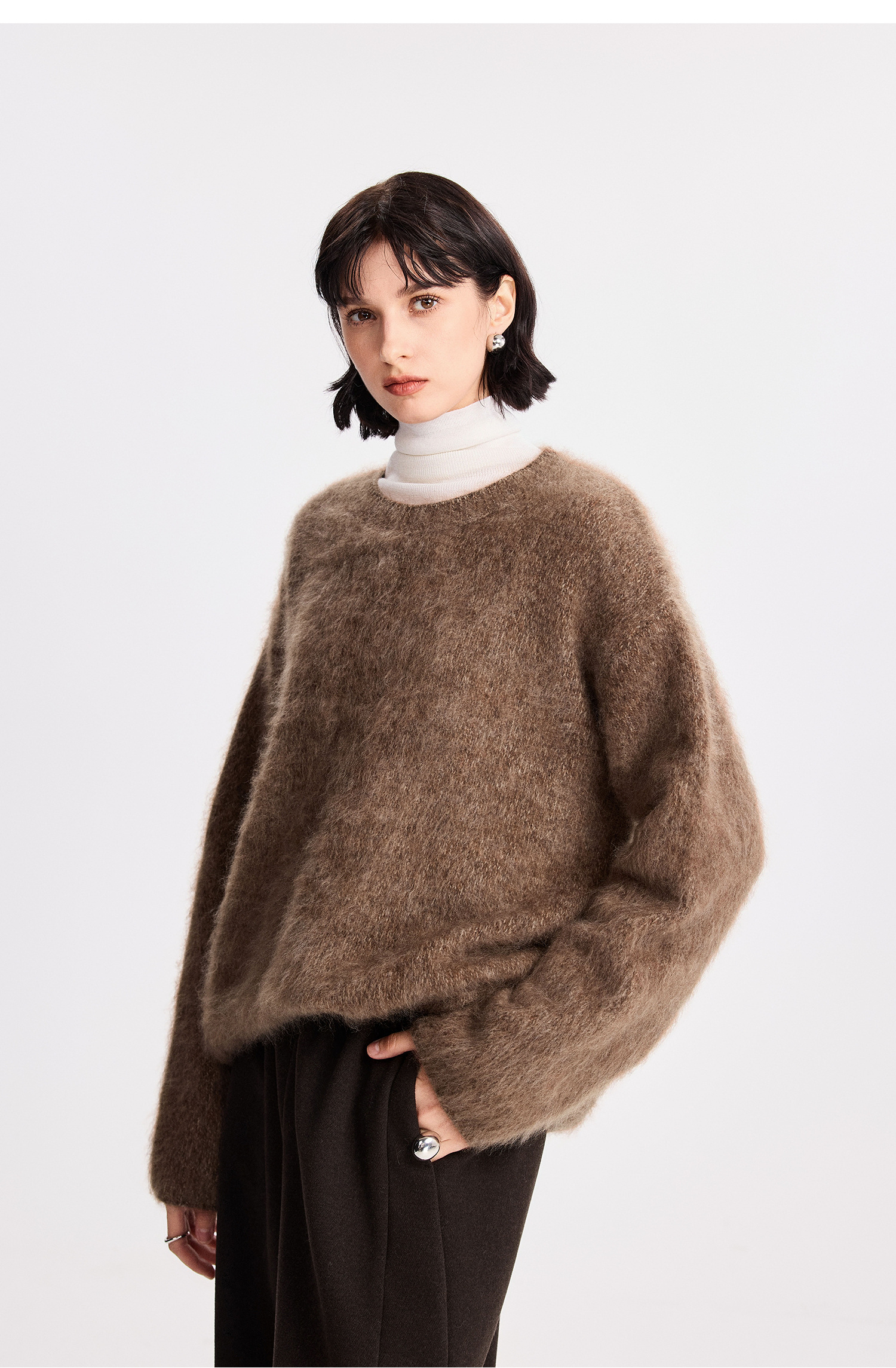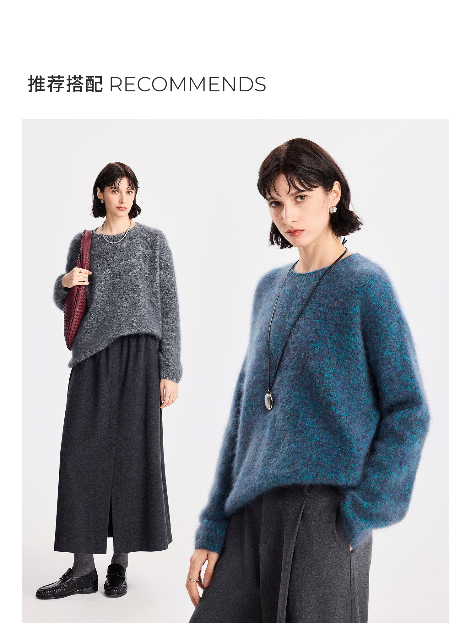 初棉拉毛全羊毛花纱设计套头毛衣女25秋冬绒毛感微宽松针织上衣366605077