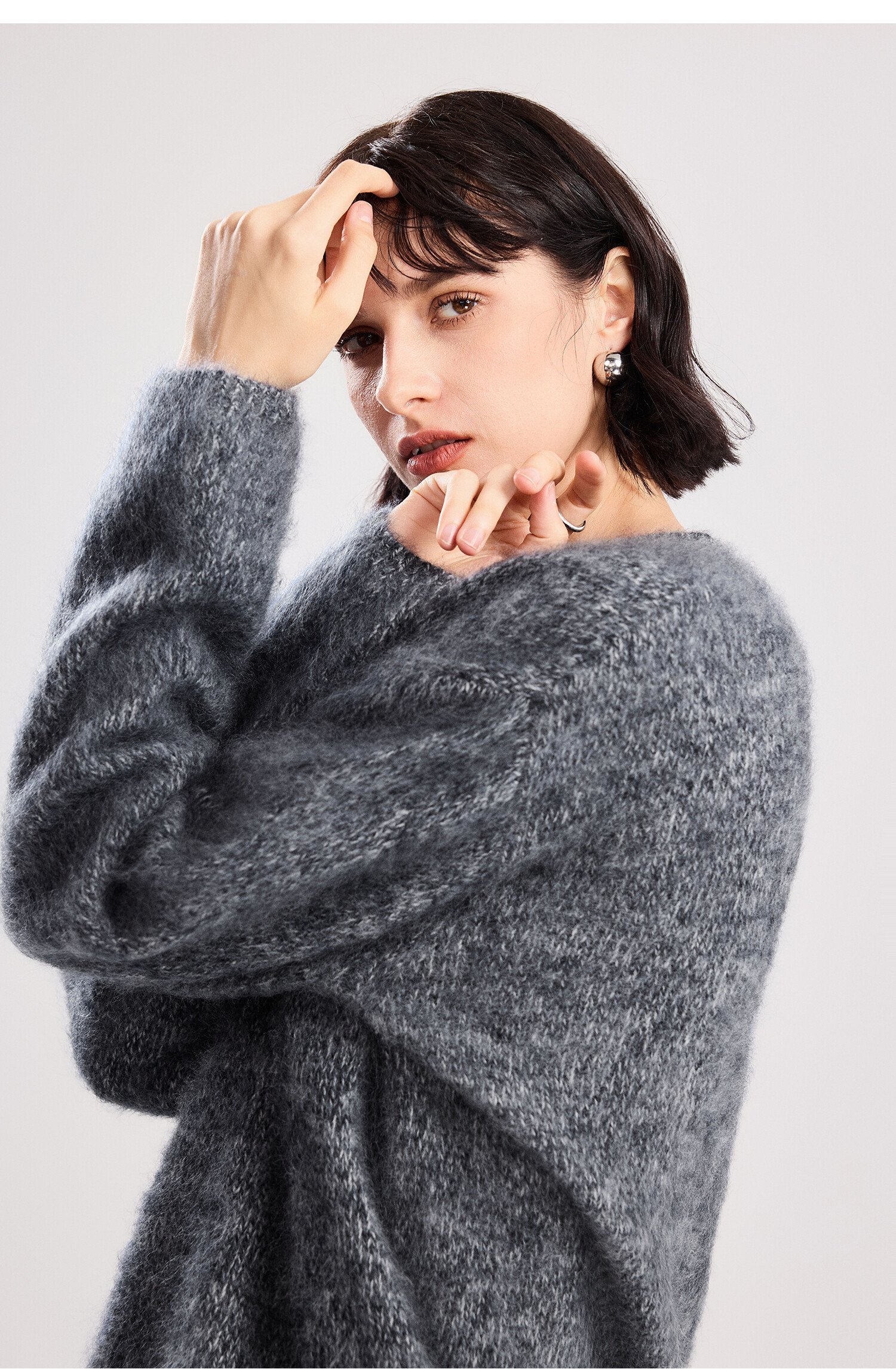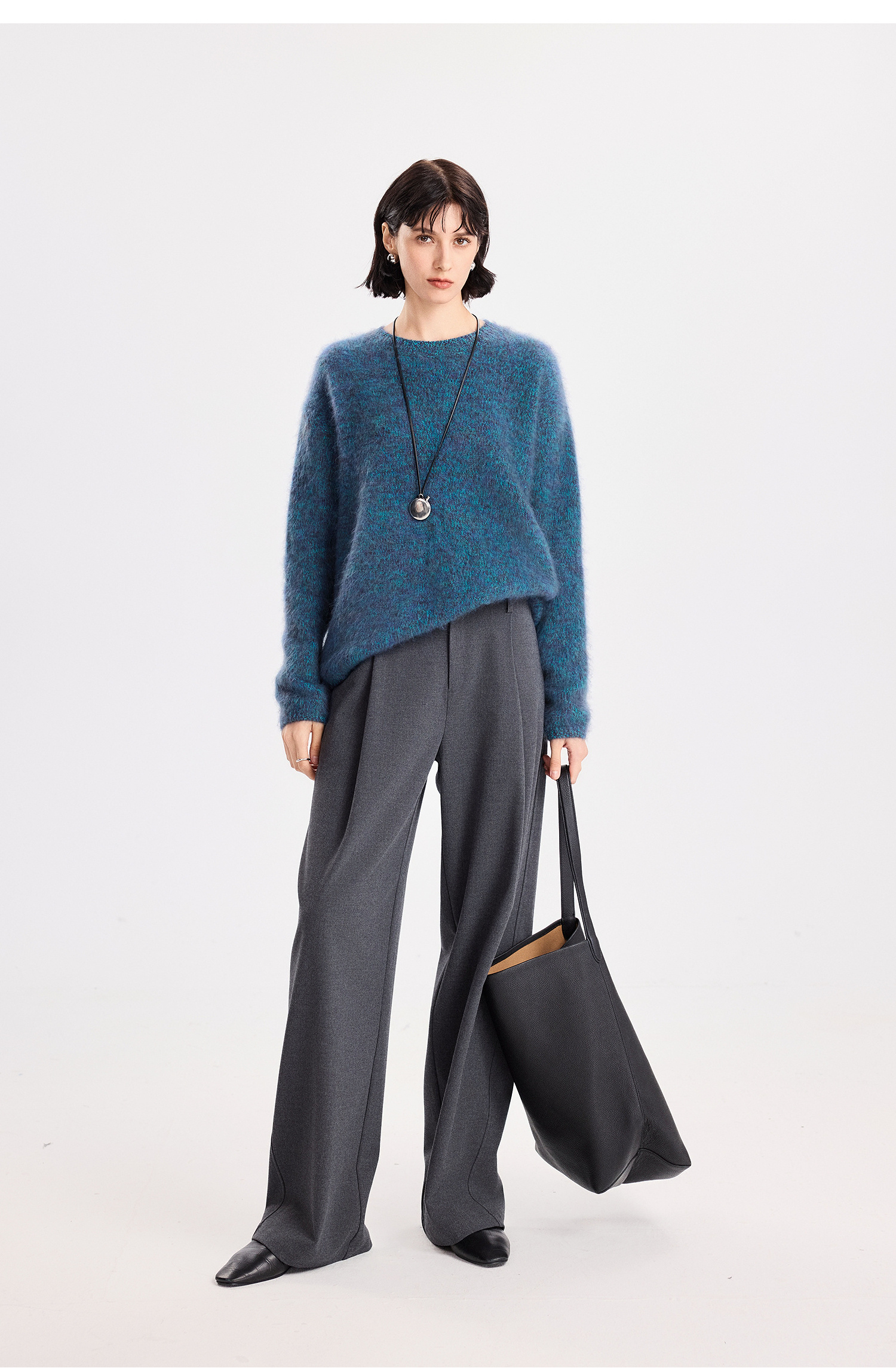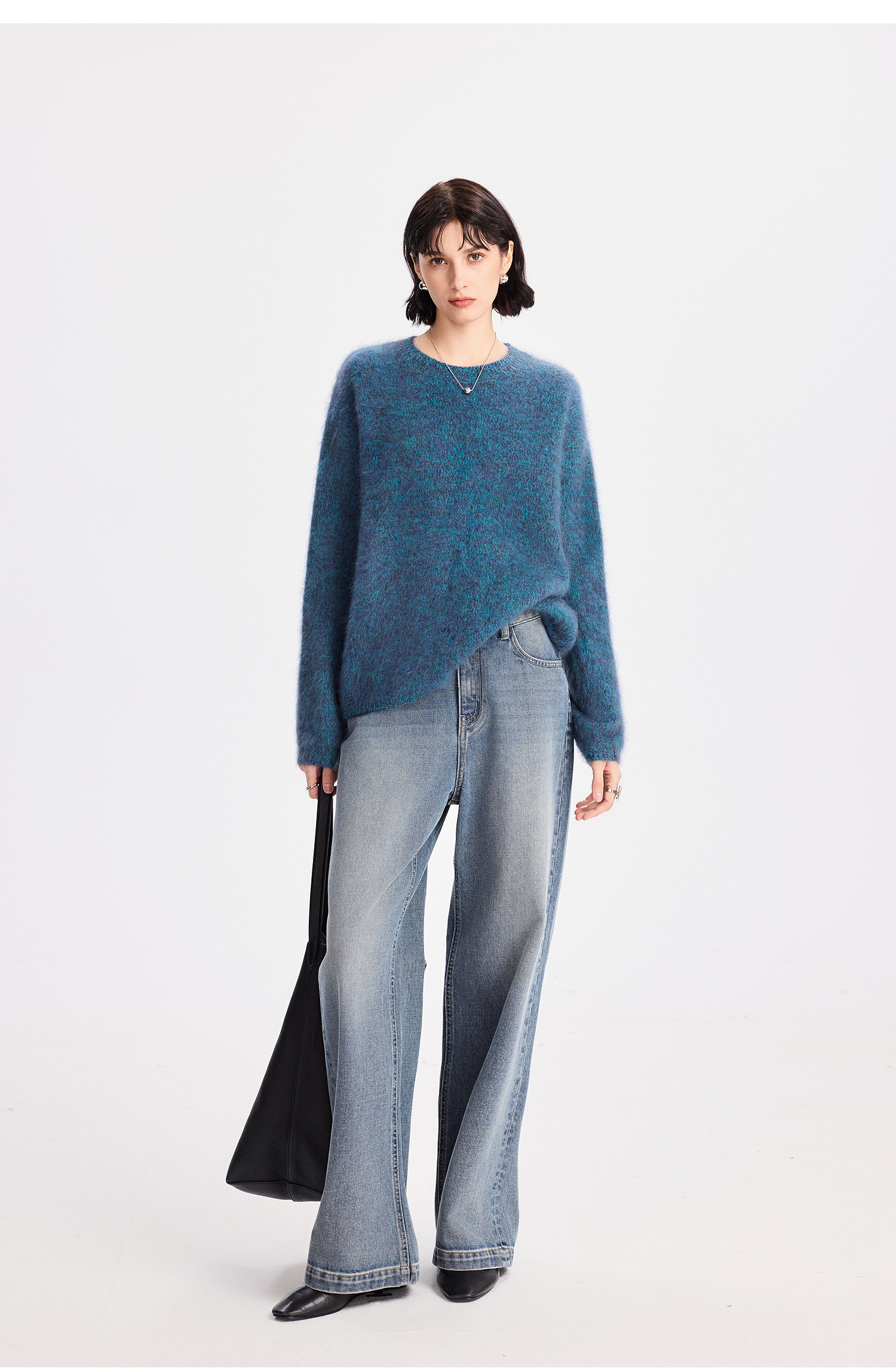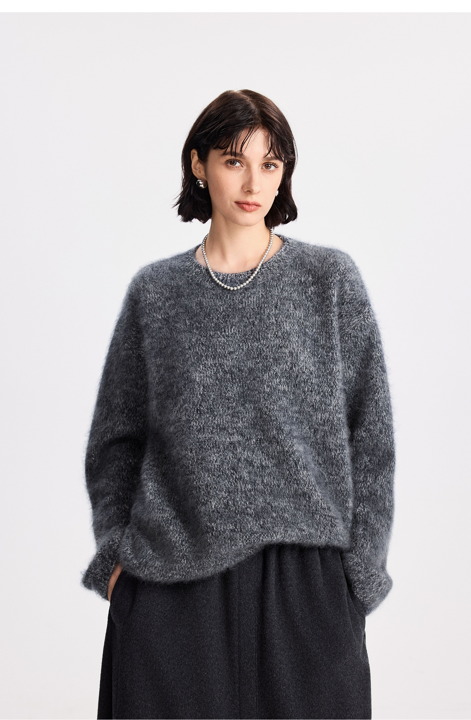 初棉拉毛全羊毛花纱设计套头毛衣女25秋冬绒毛感微宽松针织上衣366605077