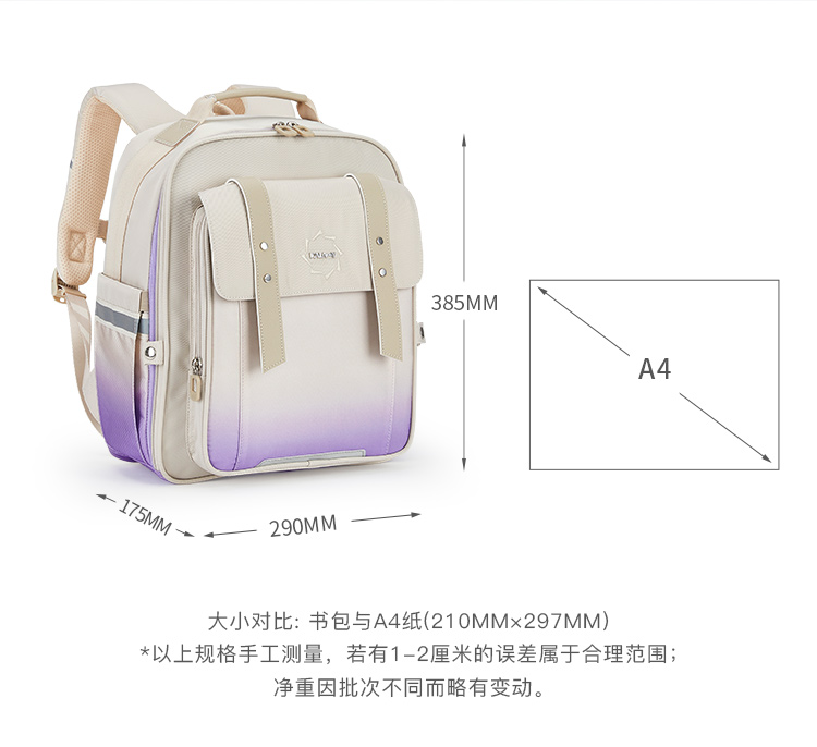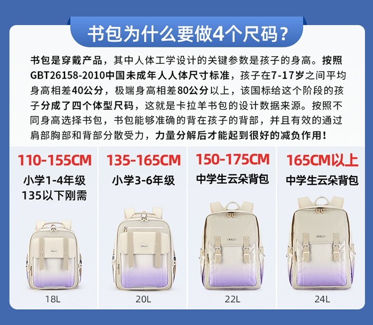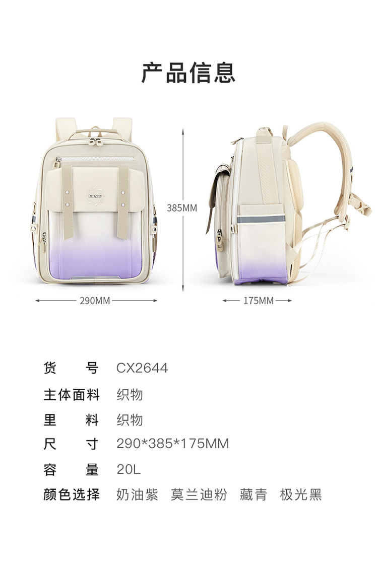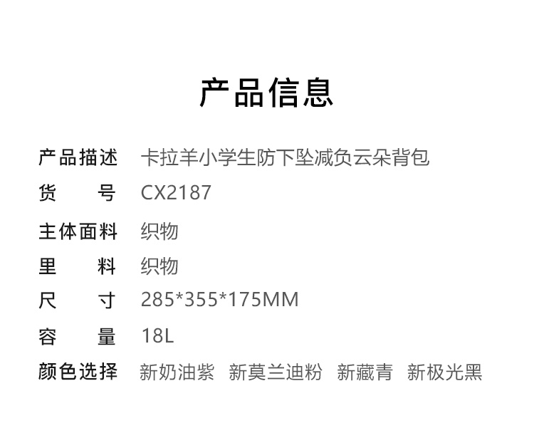 【云朵书包】卡拉羊小学生1-3-6年级云朵书包大容量儿童护脊背包光影双肩包CX2187+CX2644
