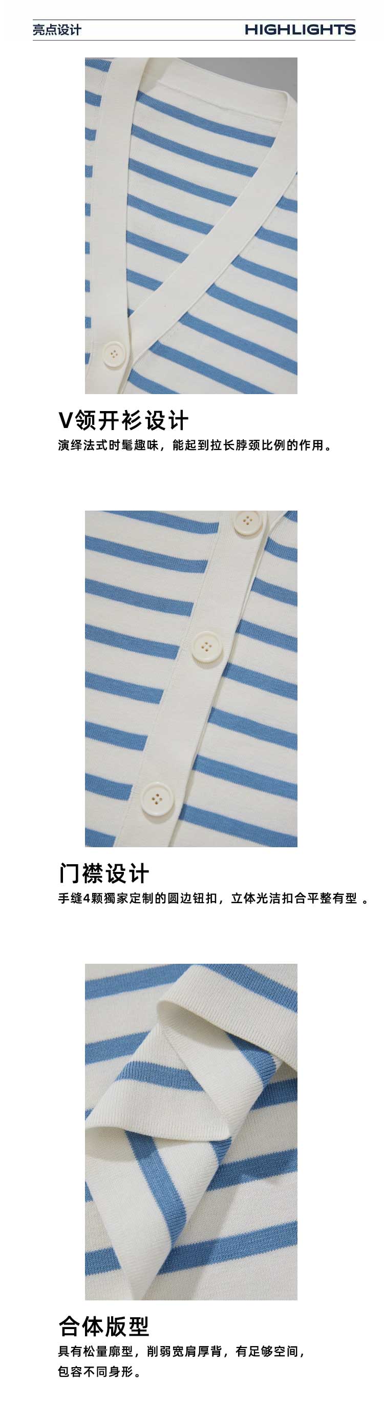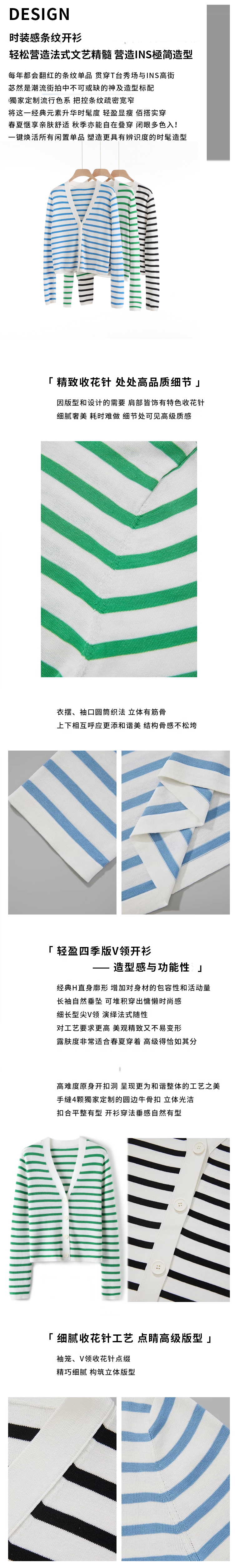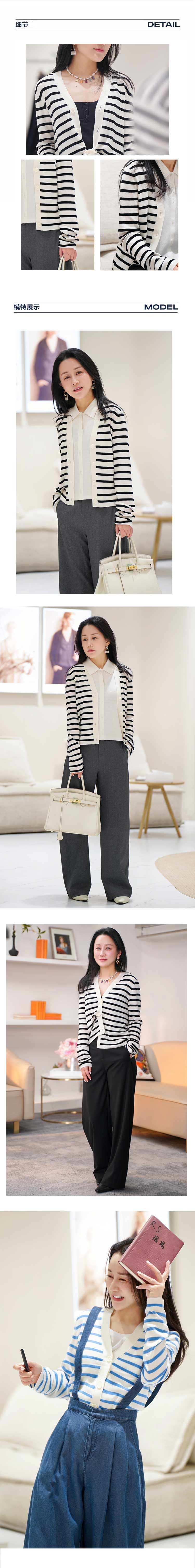 【四季条纹开衫】臣禾 16针 羊毛60/2支 V领短款针织衫9241090356【金猪甄选】