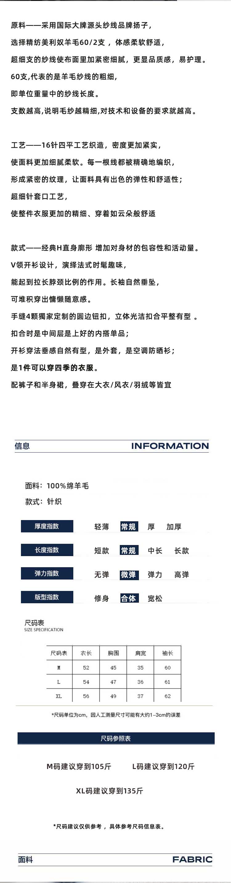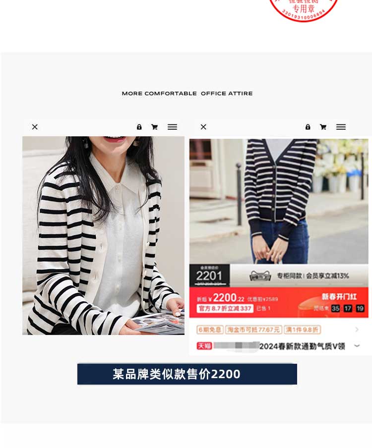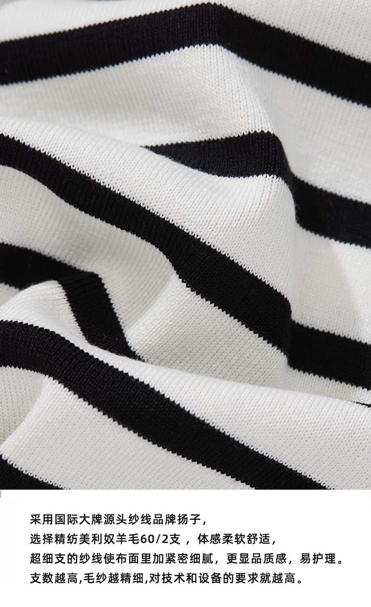 【四季条纹开衫】臣禾 16针 羊毛60/2支 V领短款针织衫9241090356【金猪甄选】