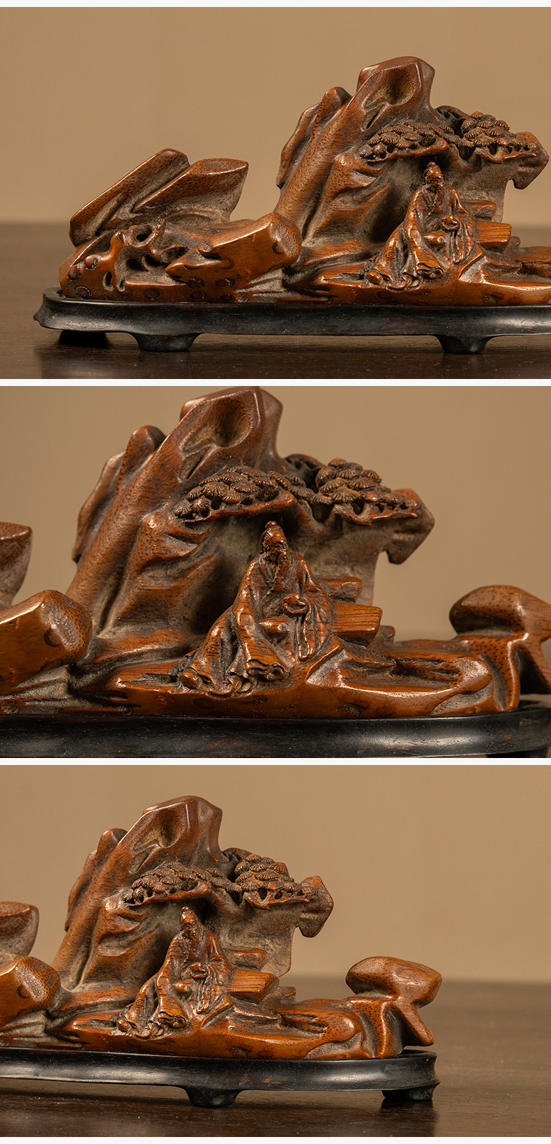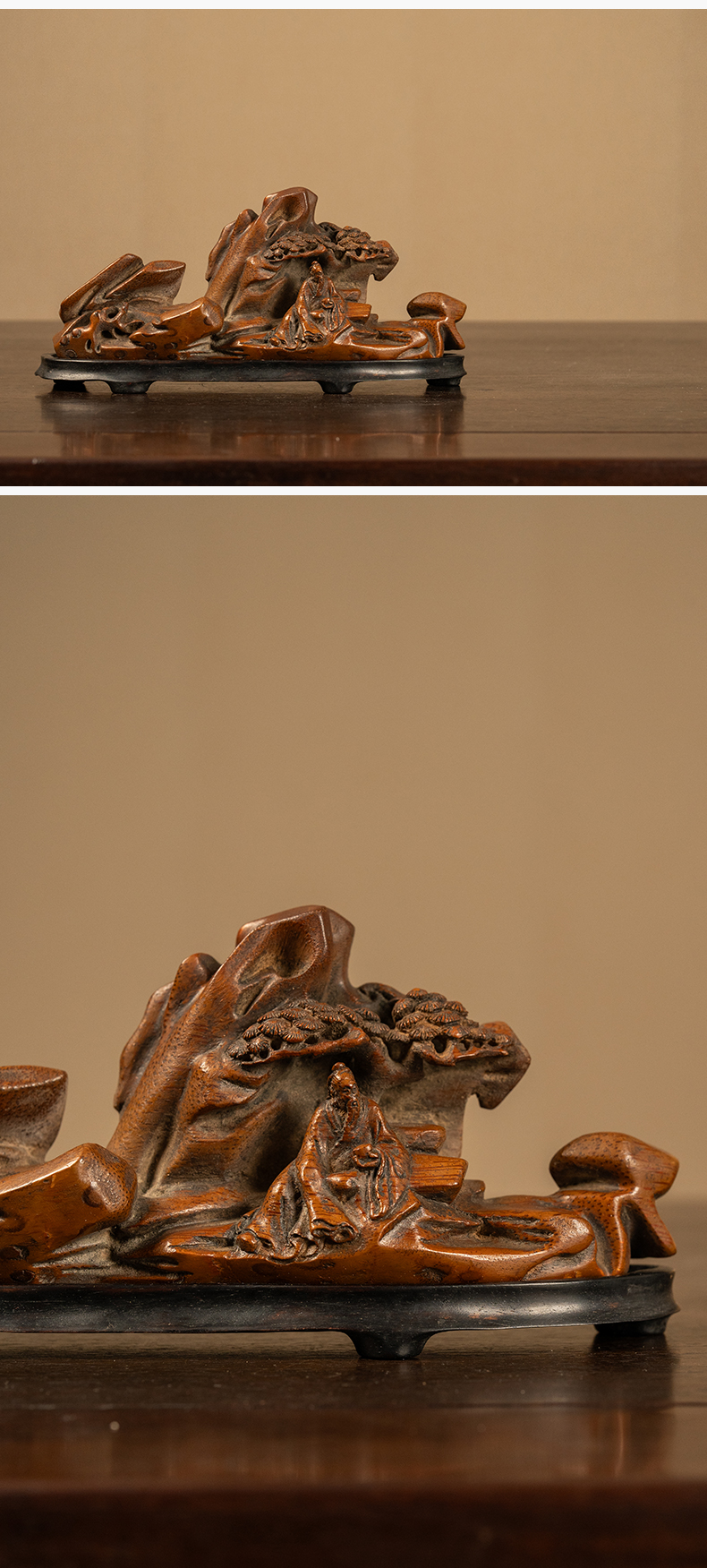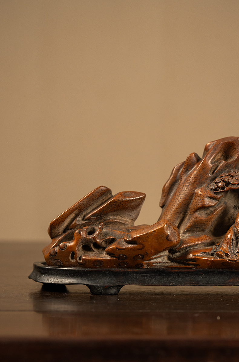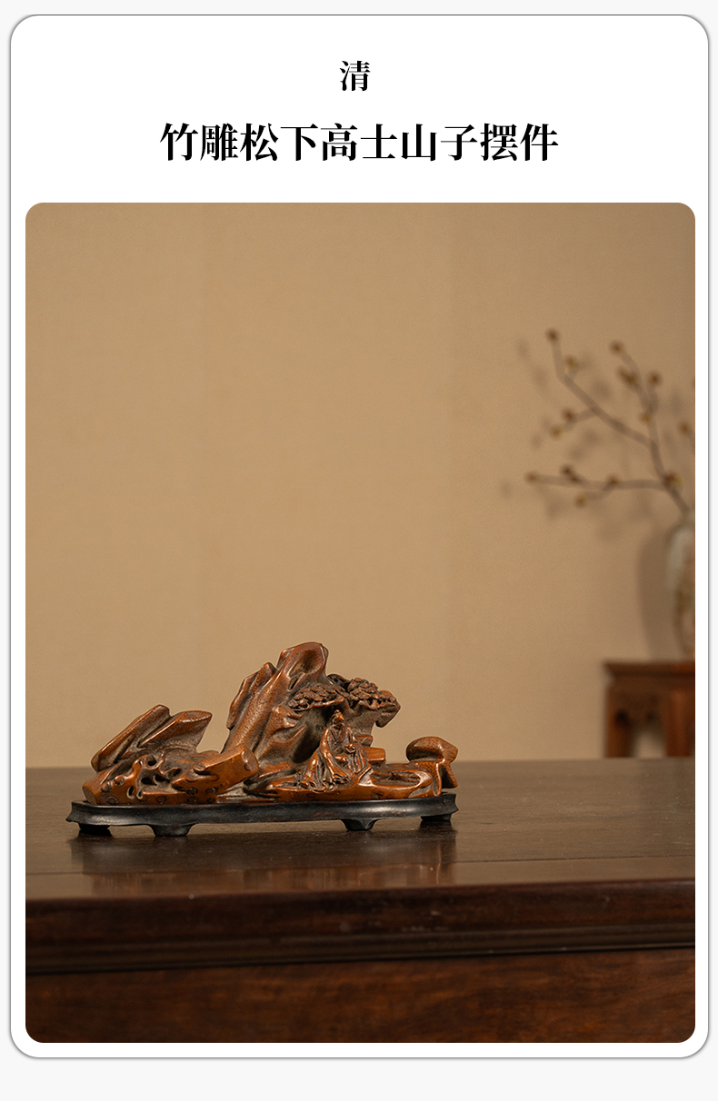 清 竹雕松下高士山子摆件