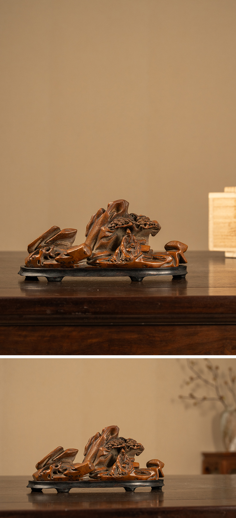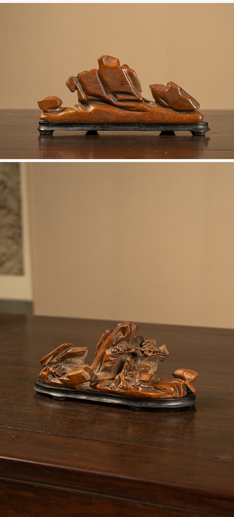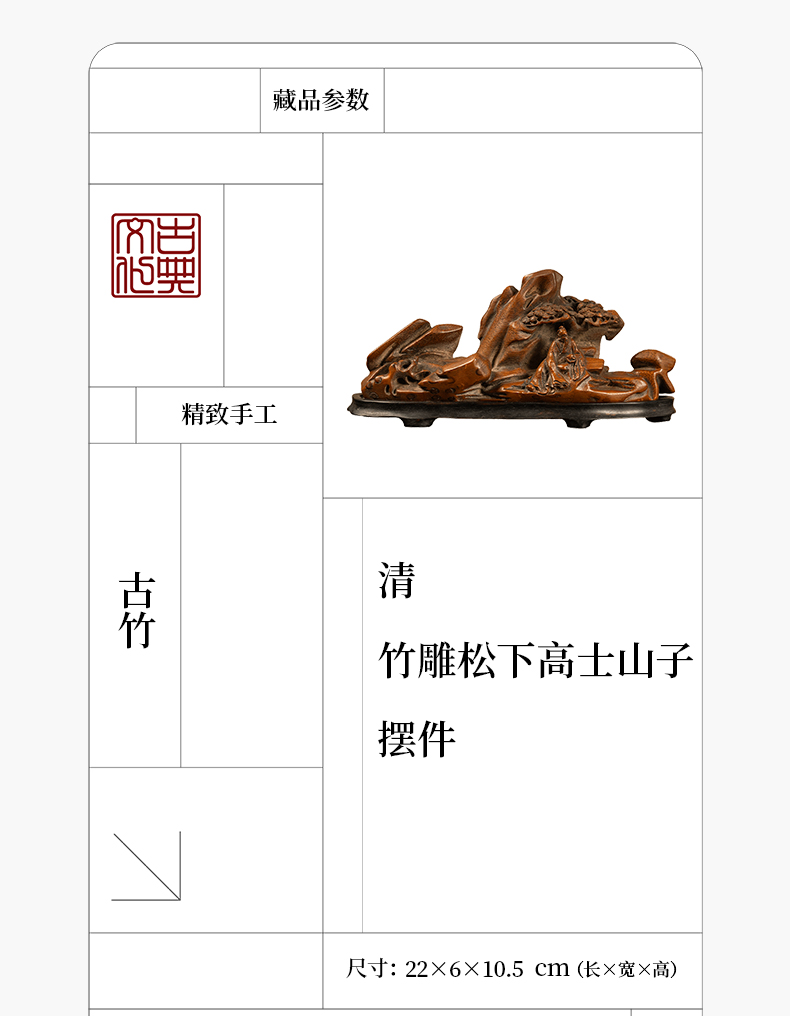 清 竹雕松下高士山子摆件