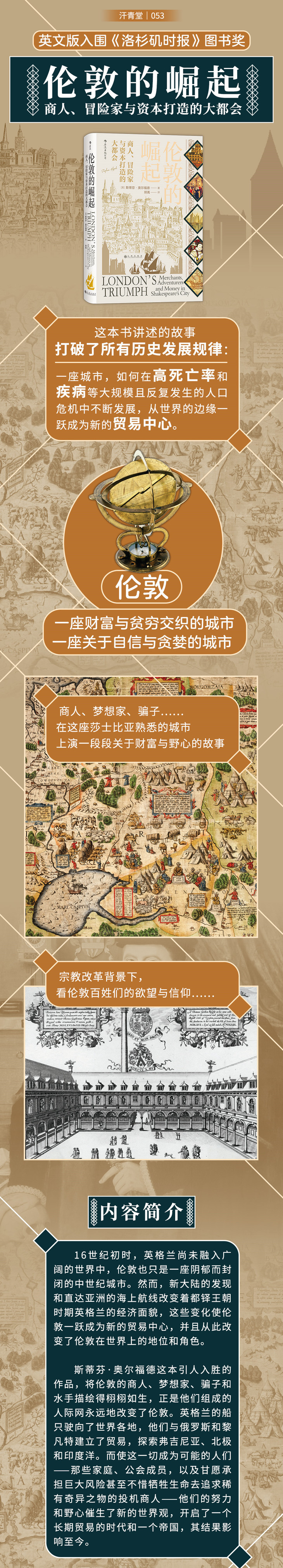 斯蒂芬·奥尔福德这本引人入胜的作品,将伦敦的商人、梦想家、骗子和水手描绘得栩栩如生,正是他们组成的人际网永远地改变了伦敦。英格兰的船只驶向了世界各地,他们与俄罗斯和黎凡特建立了贸易,探索弗吉尼亚、北极和印度洋。而使这一切成为可能的人们——那些家庭、公会成员,以及甘愿承担巨大风险甚至不惜牺牲生命去追求稀有奇异之物的投机商人——他们的努力和野心催生了新的世界观,开启了一个长期贸易的时代和一个帝国,其结果影响至今。