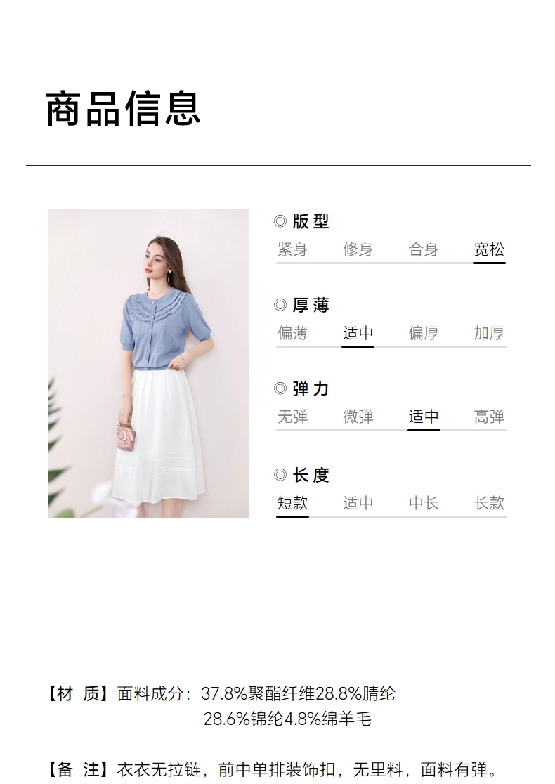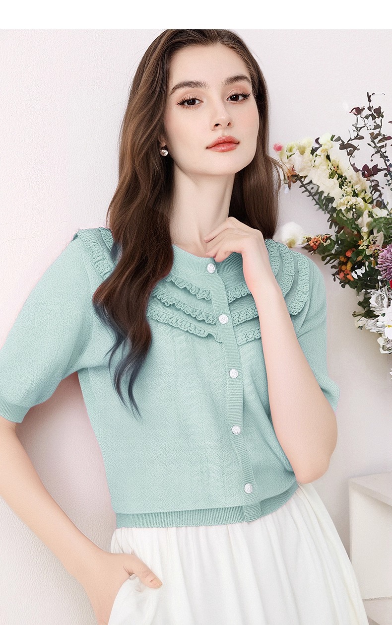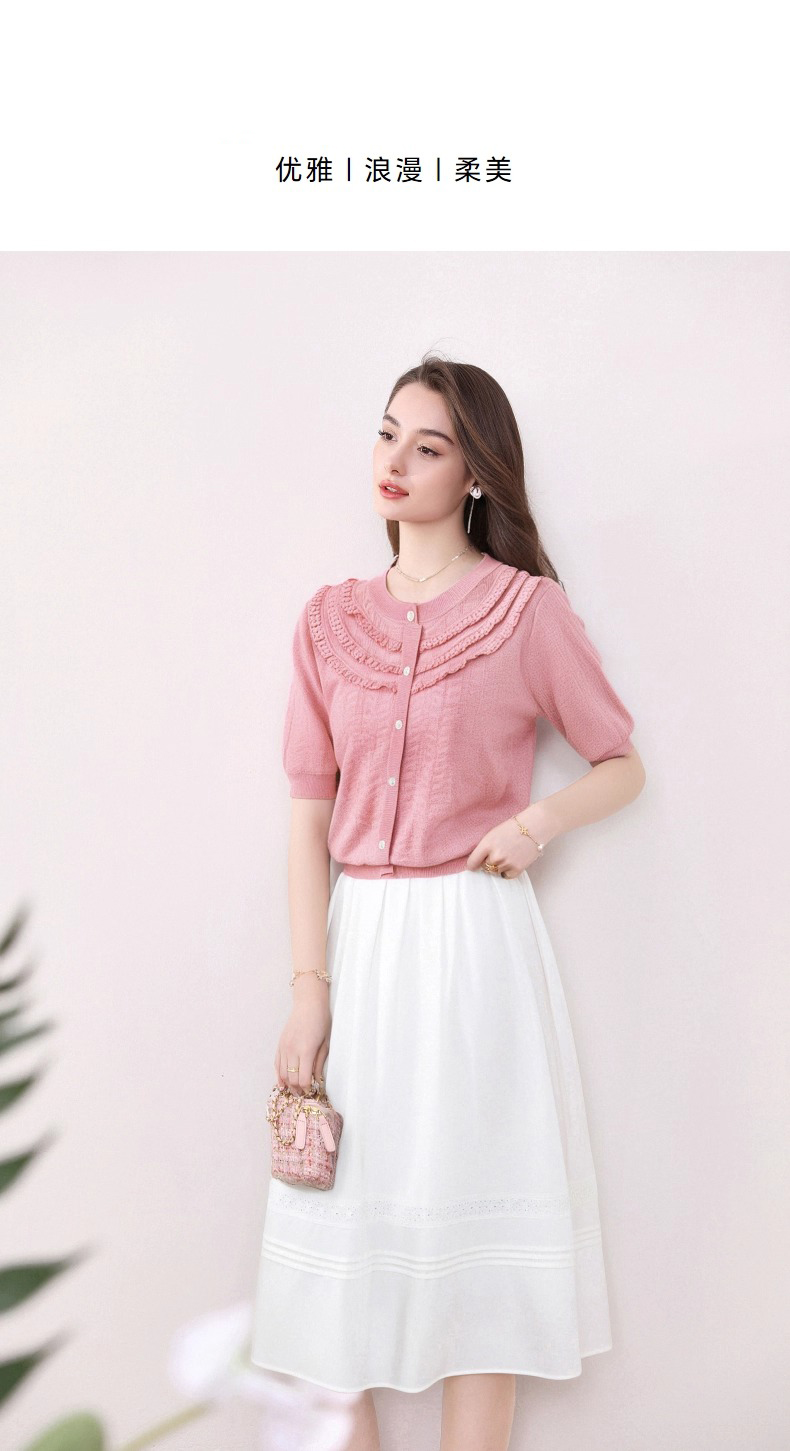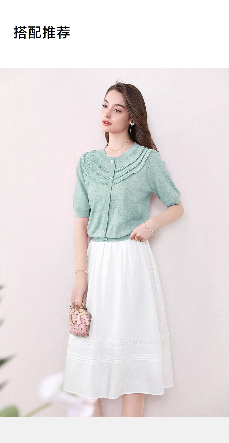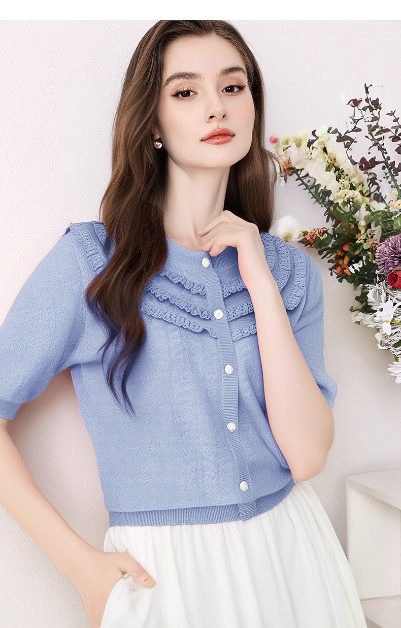全新升级【铂金会员183/天猫239/差价56】(72655)洛诗琳设计感荷叶边短袖针织衫女夏季2025新款气质宽松上衣