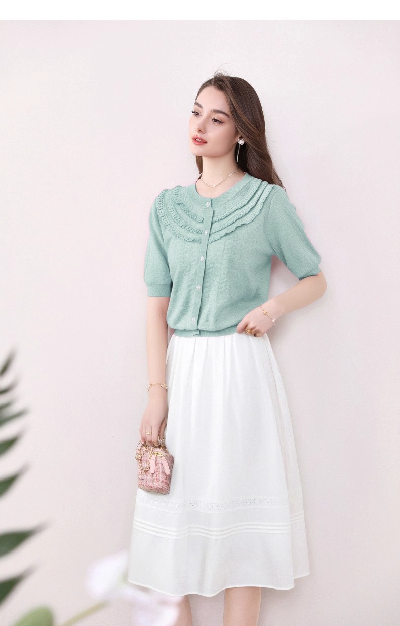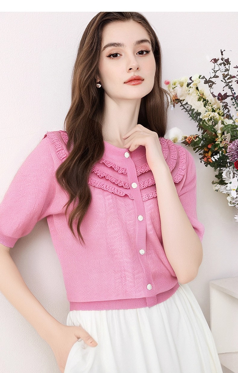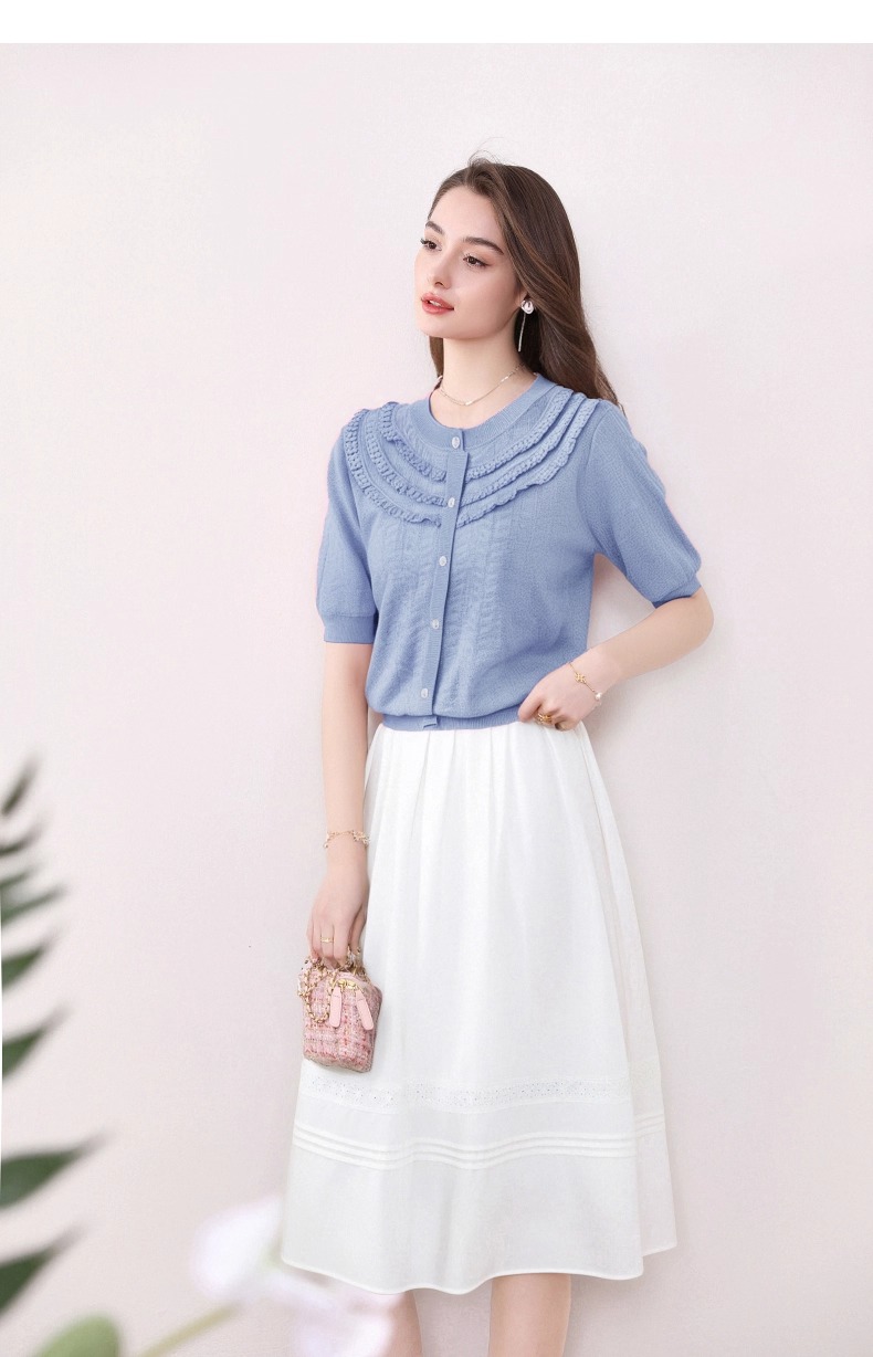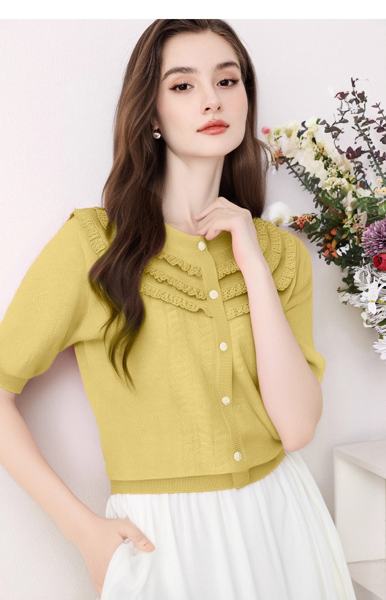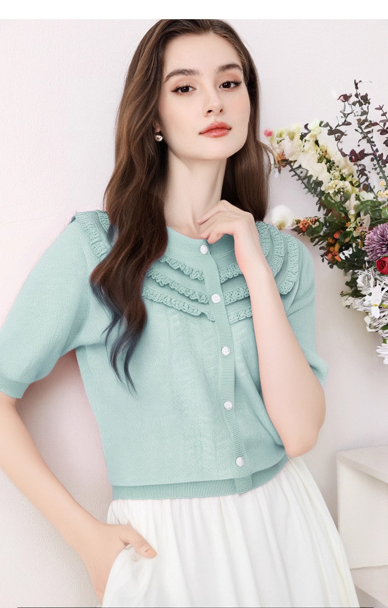 全新升级【铂金会员183/天猫239/差价56】(72655)洛诗琳设计感荷叶边短袖针织衫女夏季2025新款气质宽松上衣