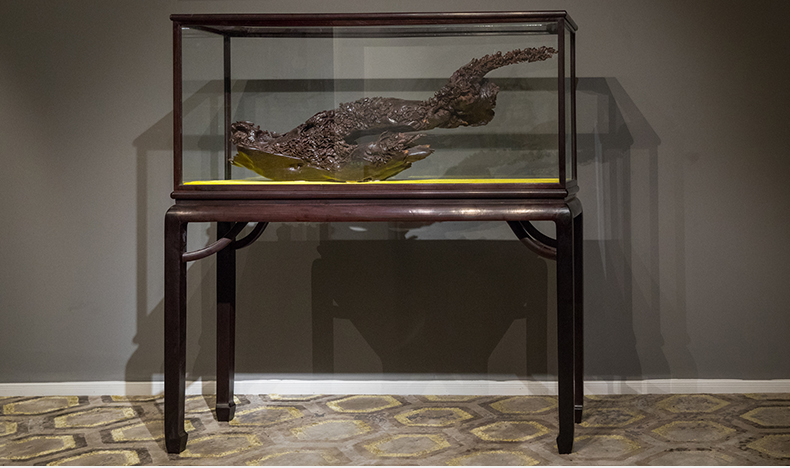 清 黄花梨镶竹丝编四抹门亮格柜摆件