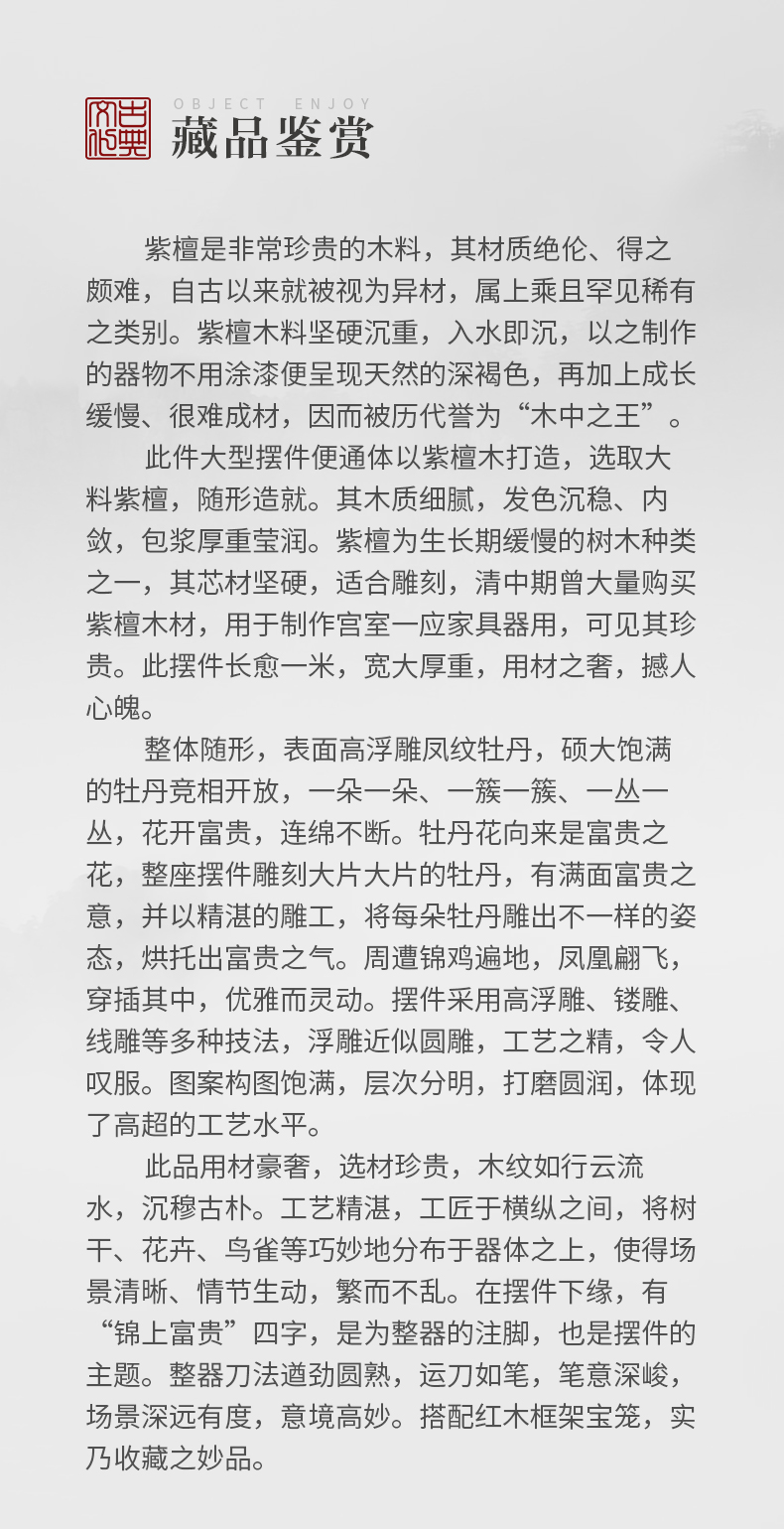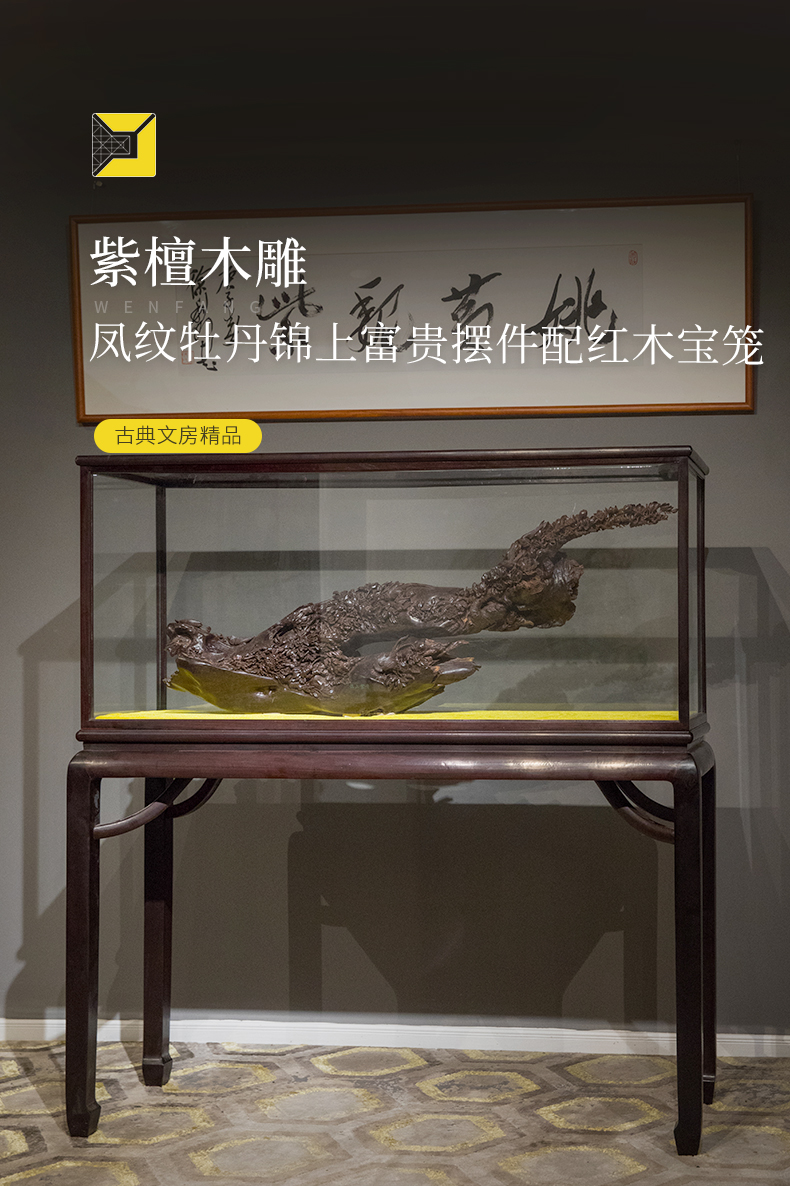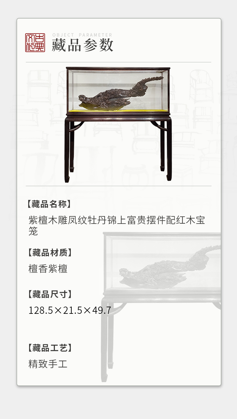 紫檀木雕凤纹牡丹锦上富贵摆件配红木宝笼