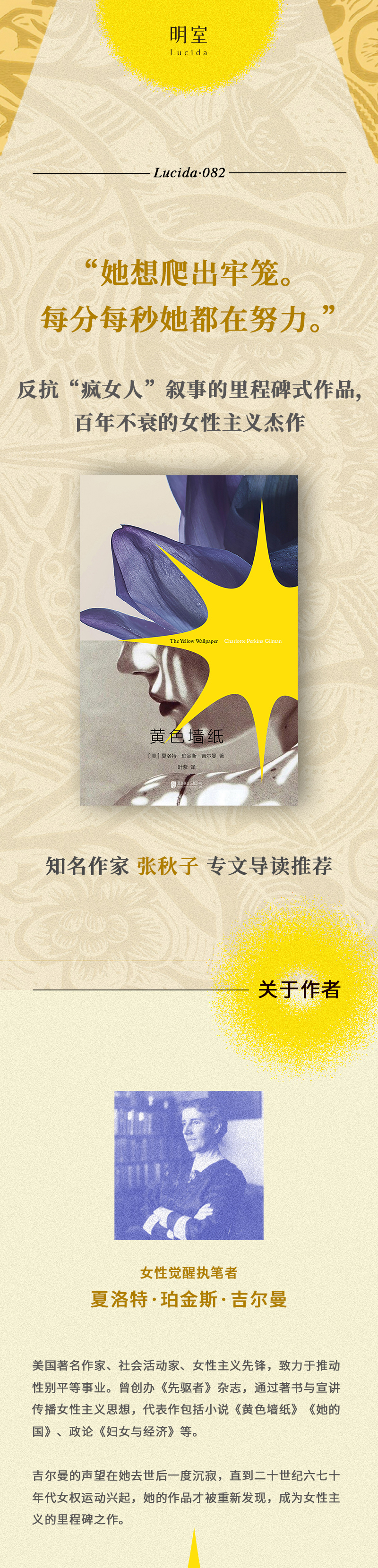 *代表作《黄色墙纸》一篇自问世以来便引发阅读轰动,成为反抗“疯女人”叙事的开辟之作。
