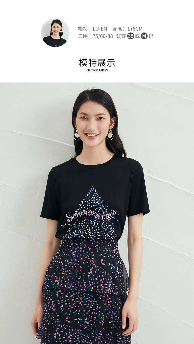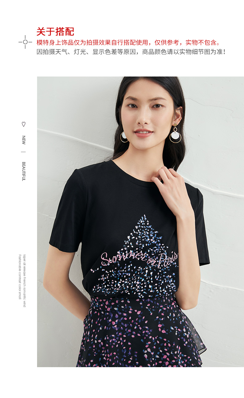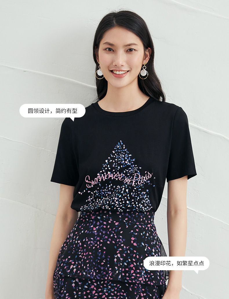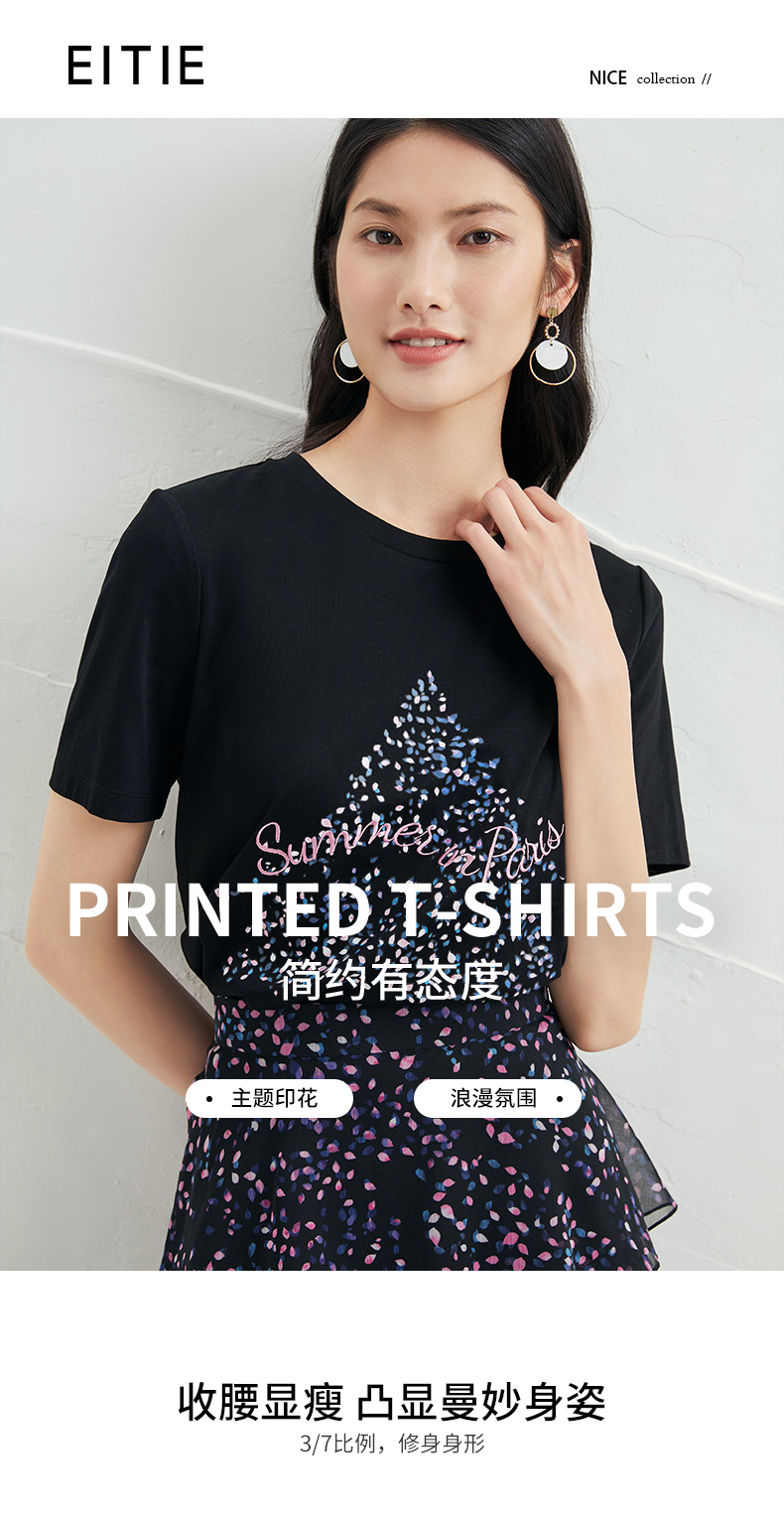 EITIE爱特爱夏款舒适时尚简约亲肤T恤打底短袖女上衣6602301