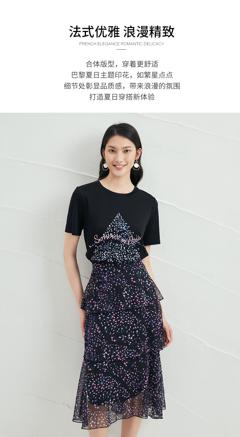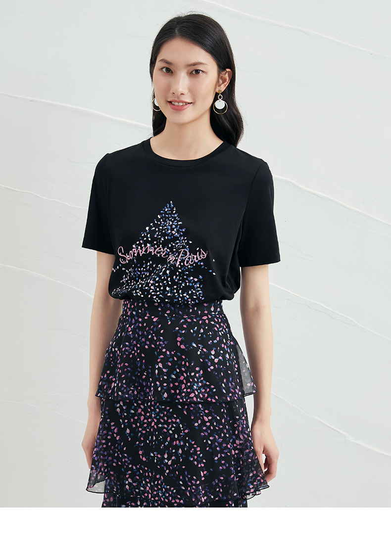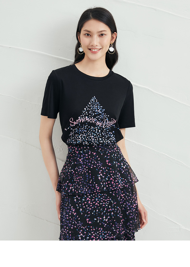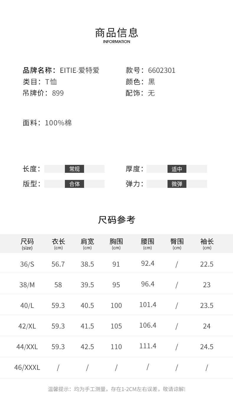 EITIE爱特爱夏款舒适时尚简约亲肤T恤打底短袖女上衣6602301