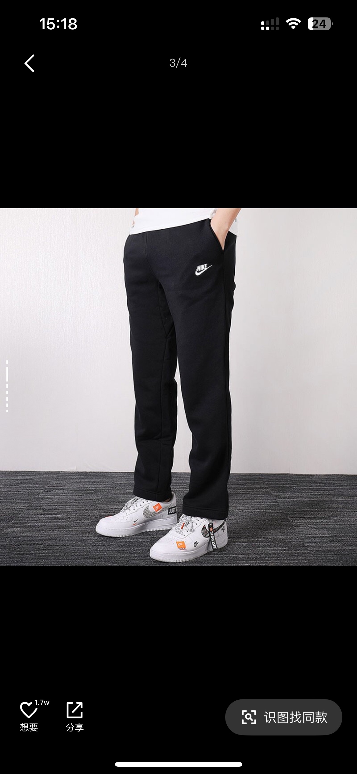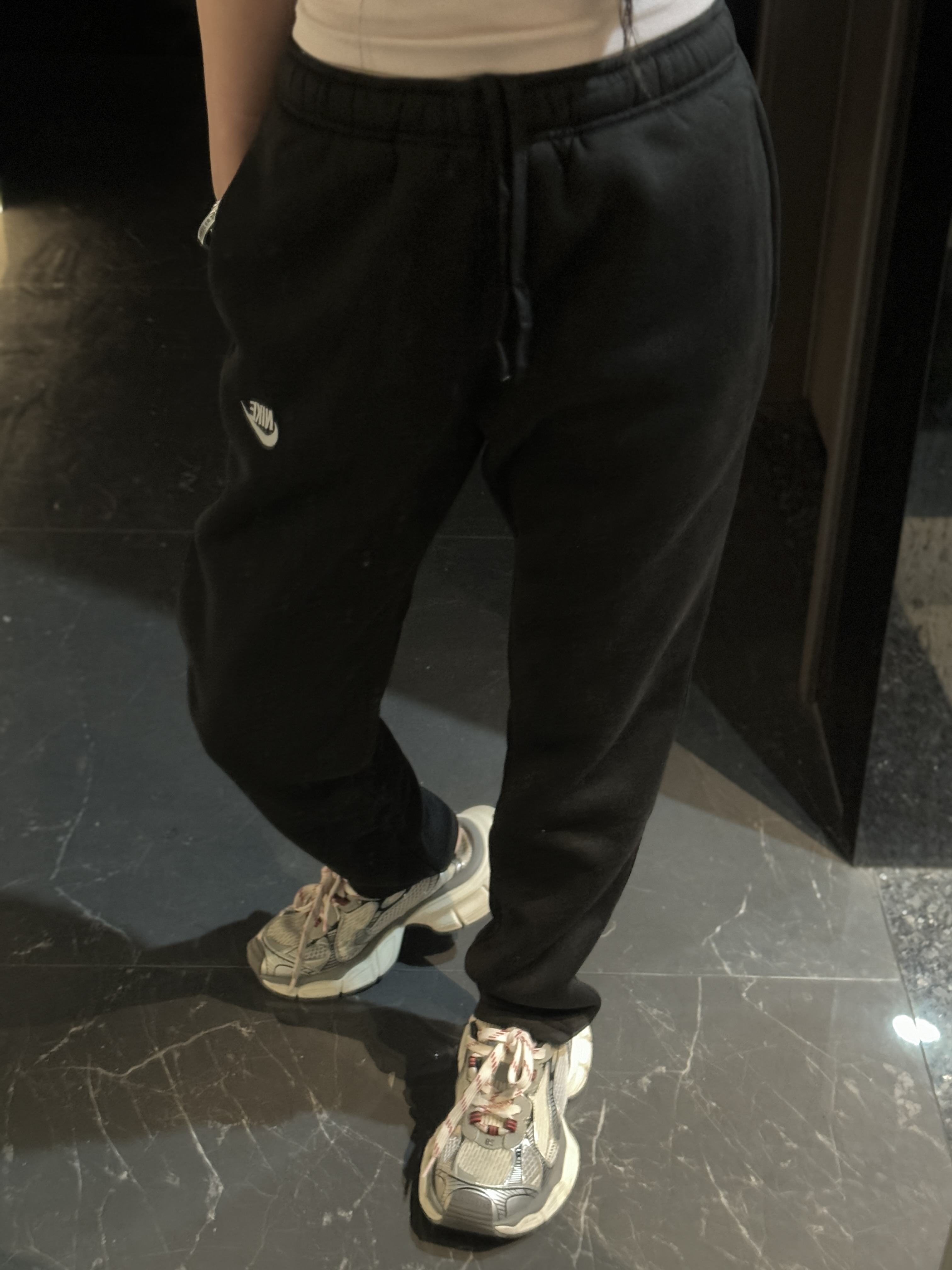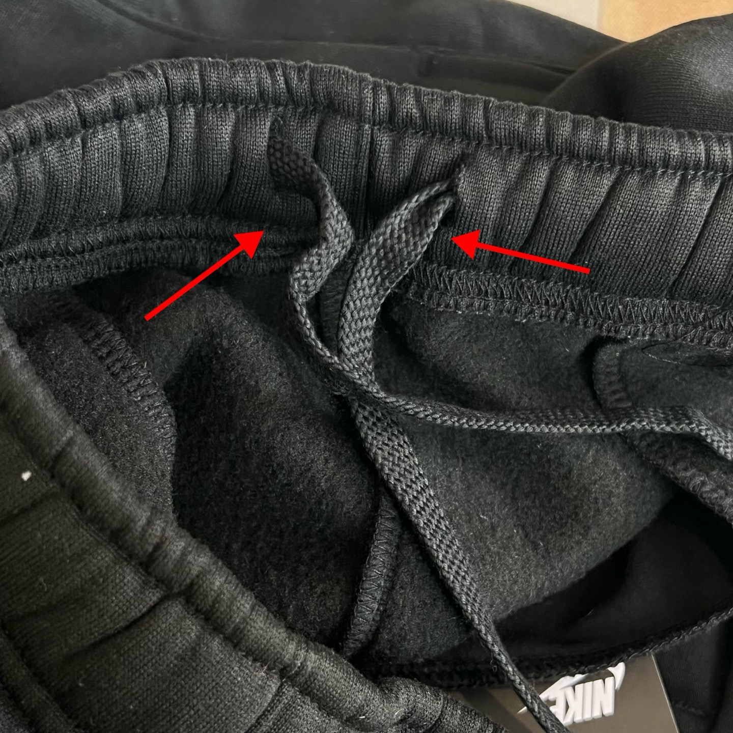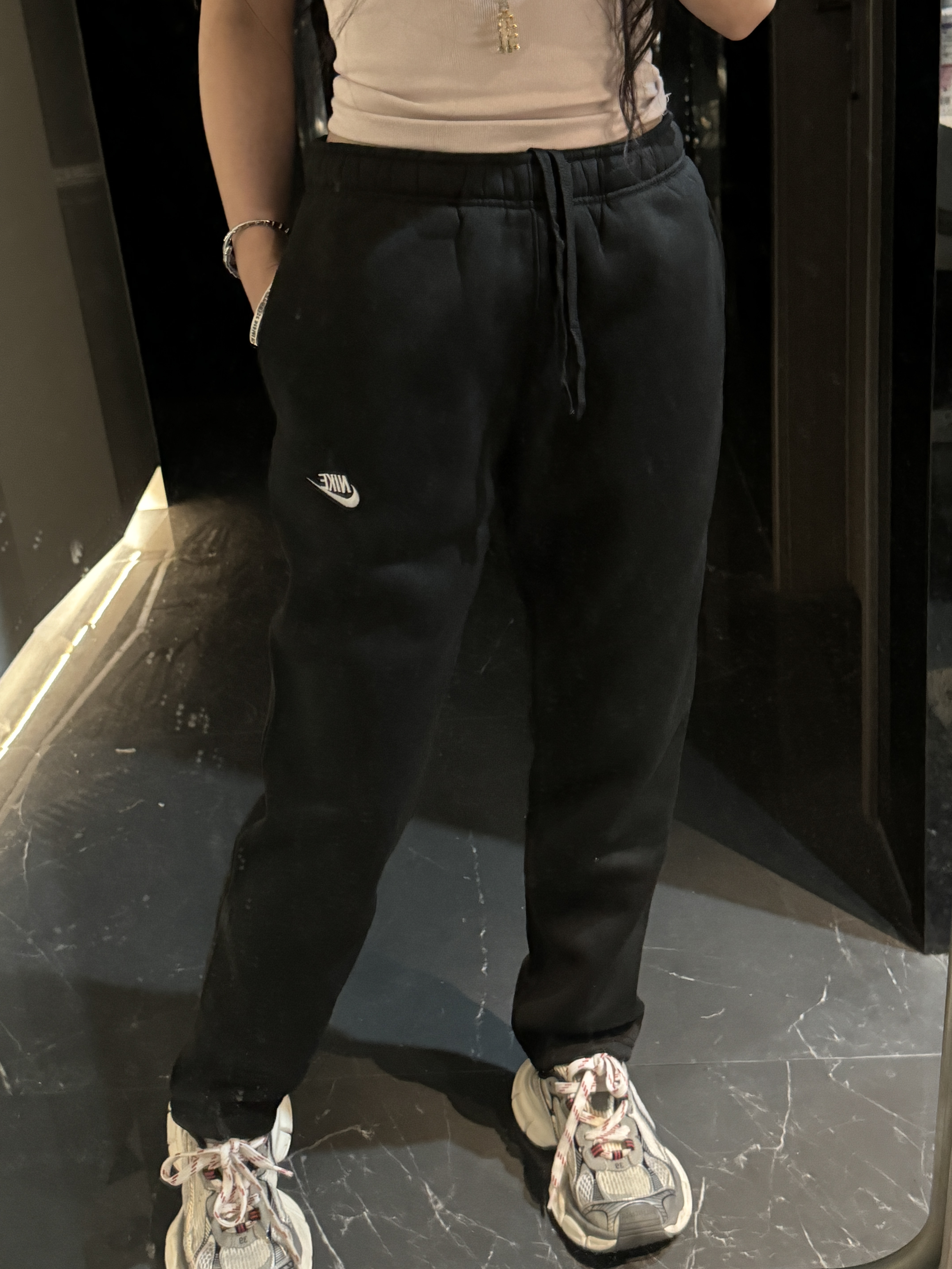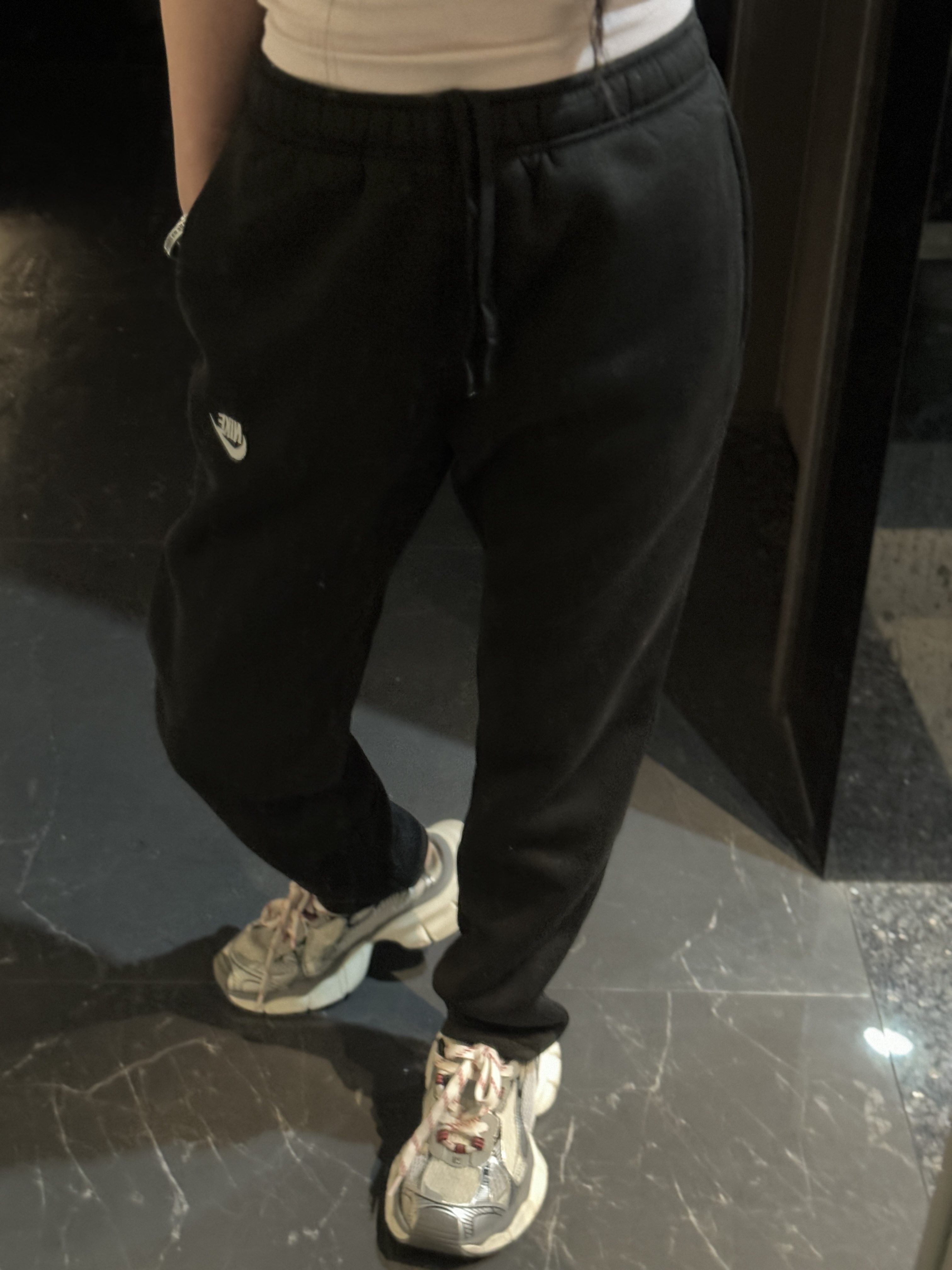 •裤腰是松紧带+抽绳设计😎,方便调节,腿外侧有白色的经典耐克小勾(Swoosh)刺绣Logo