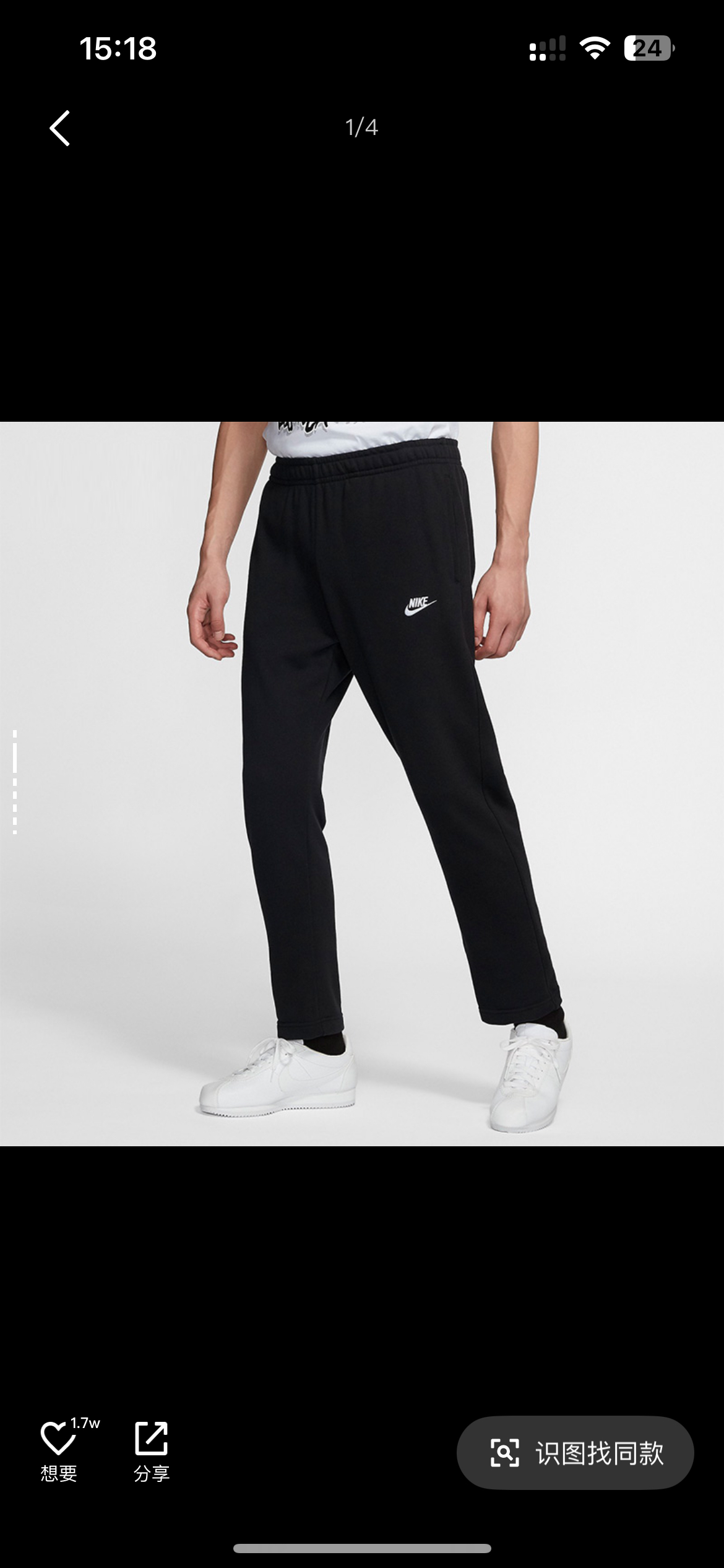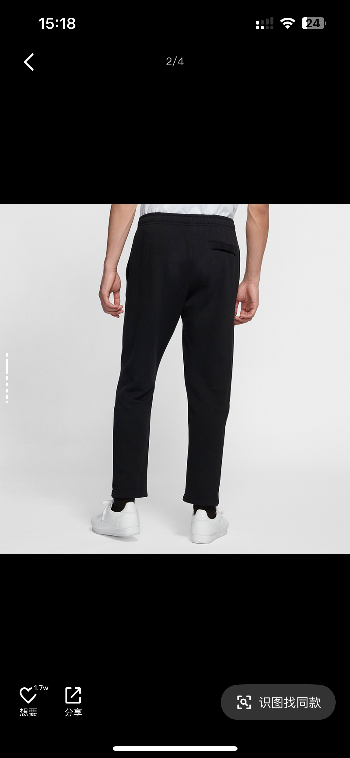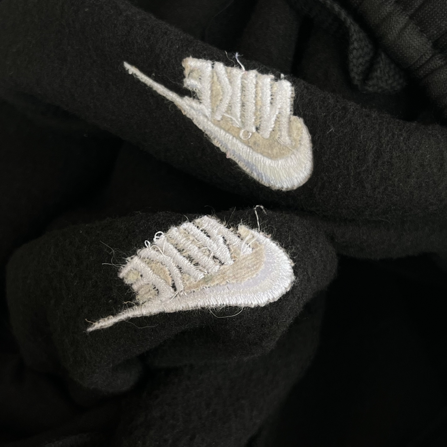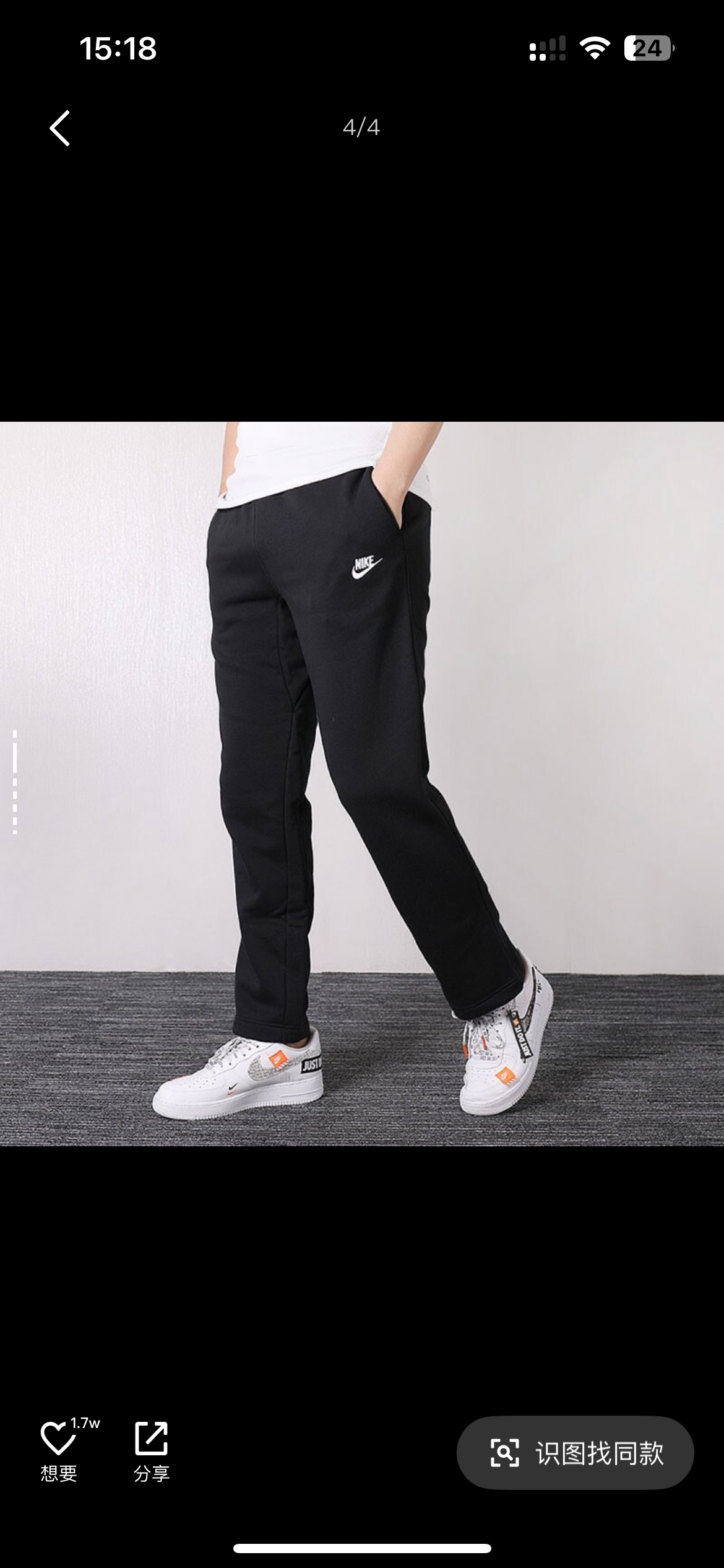 •裤腰是松紧带+抽绳设计😎,方便调节,腿外侧有白色的经典耐克小勾(Swoosh)刺绣Logo