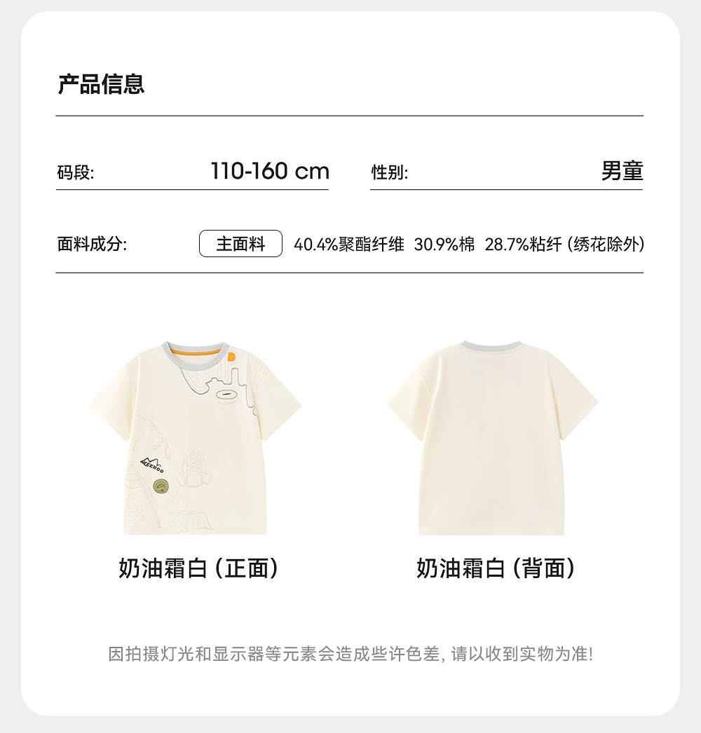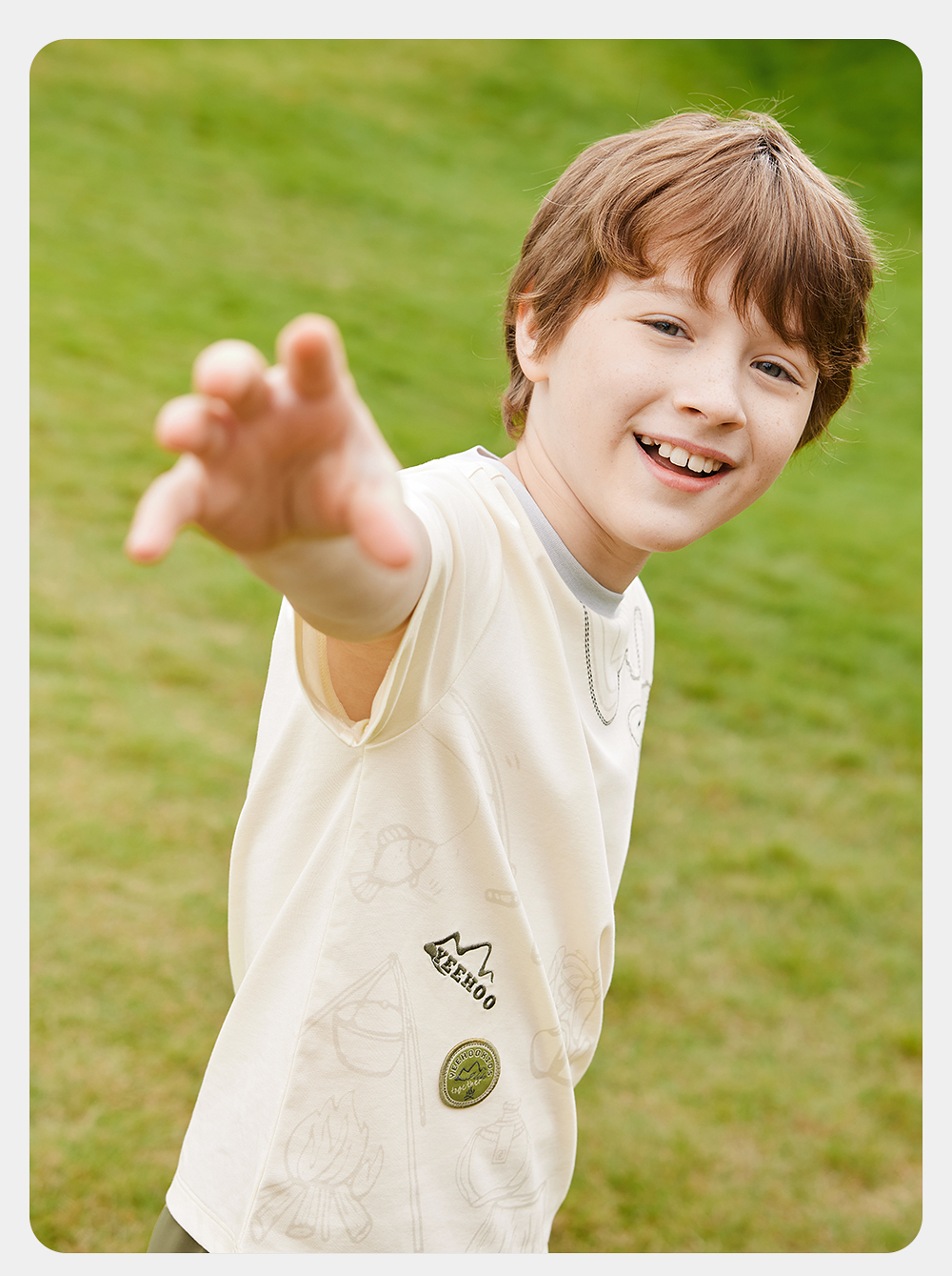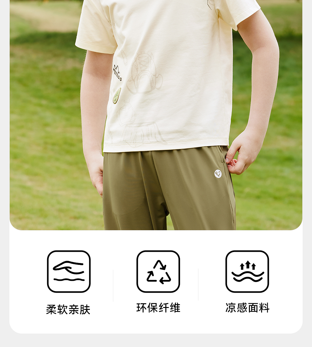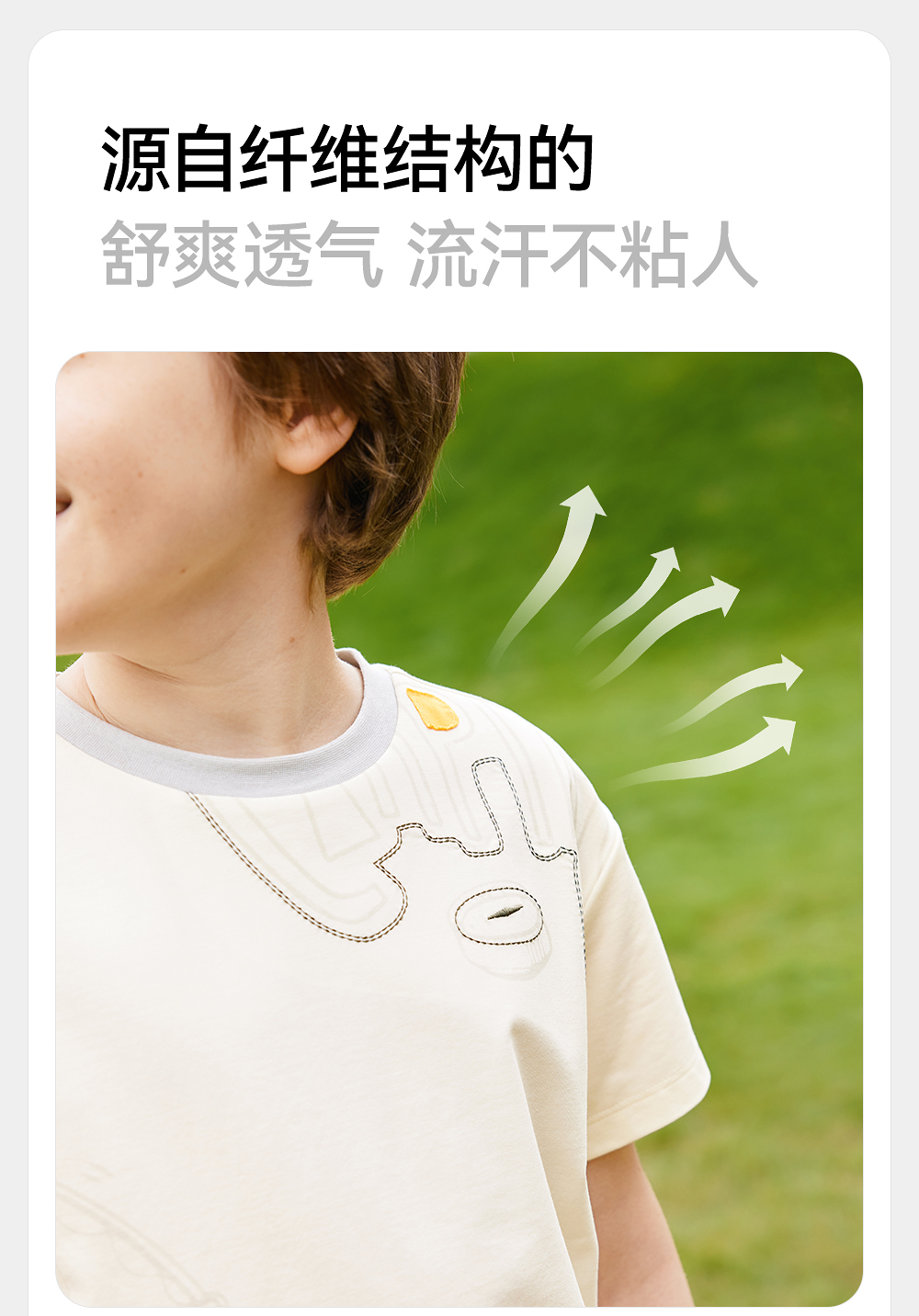 英氏儿童T恤夏季短袖透气凉感男童户外百搭T恤中大童短袖2025新款