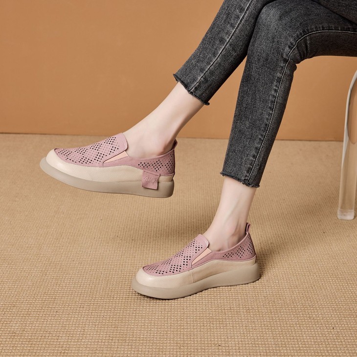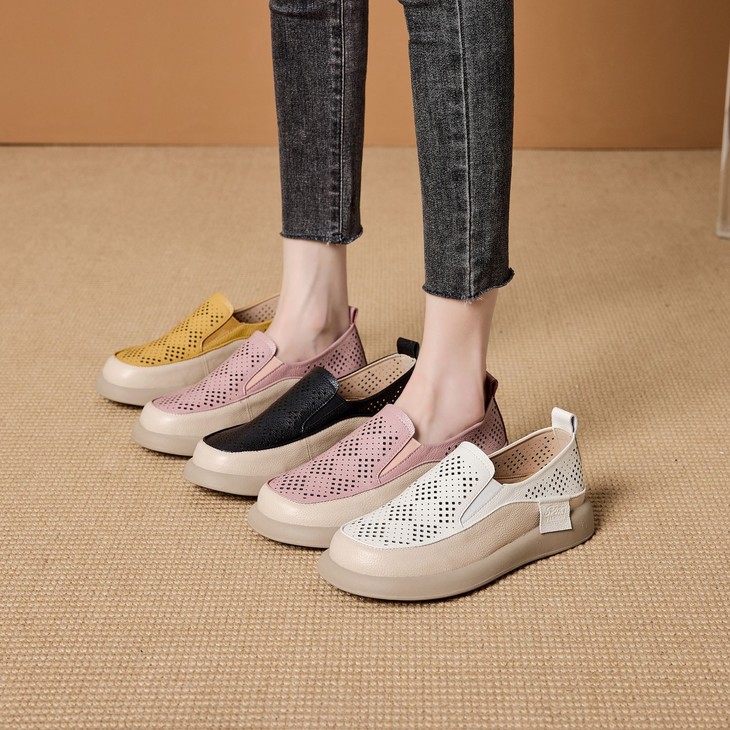 真皮镂空透气乐福鞋,平底休闲单鞋一脚蹬懒人鞋ZSM273