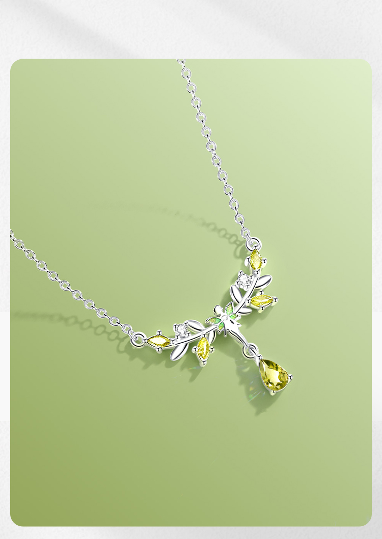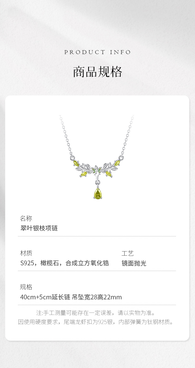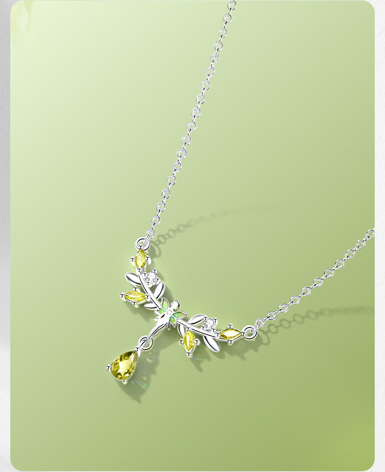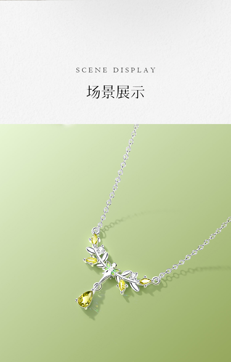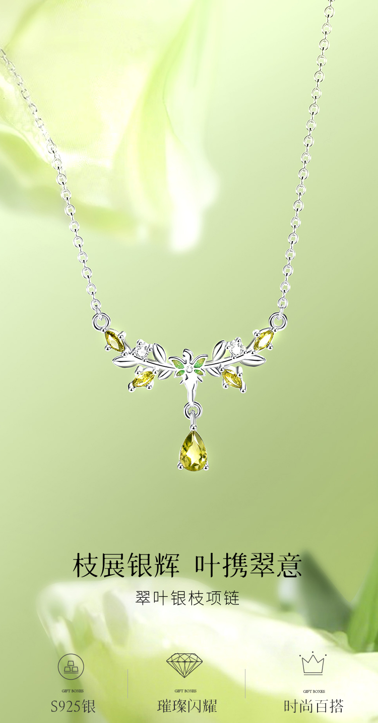 Winy S925银翠叶银枝项链配证书送女友闺蜜节日生日礼物
