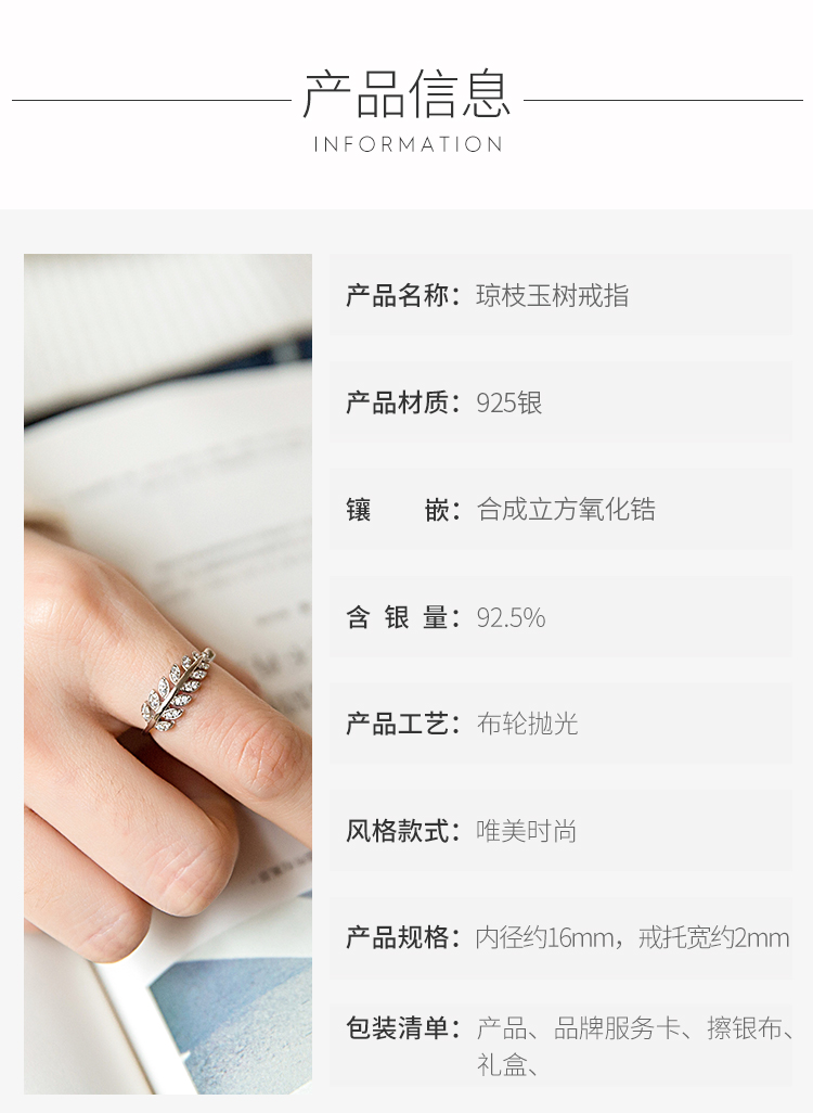 Winy925纯银琼枝玉树戒指送女友闺蜜节日生日礼物