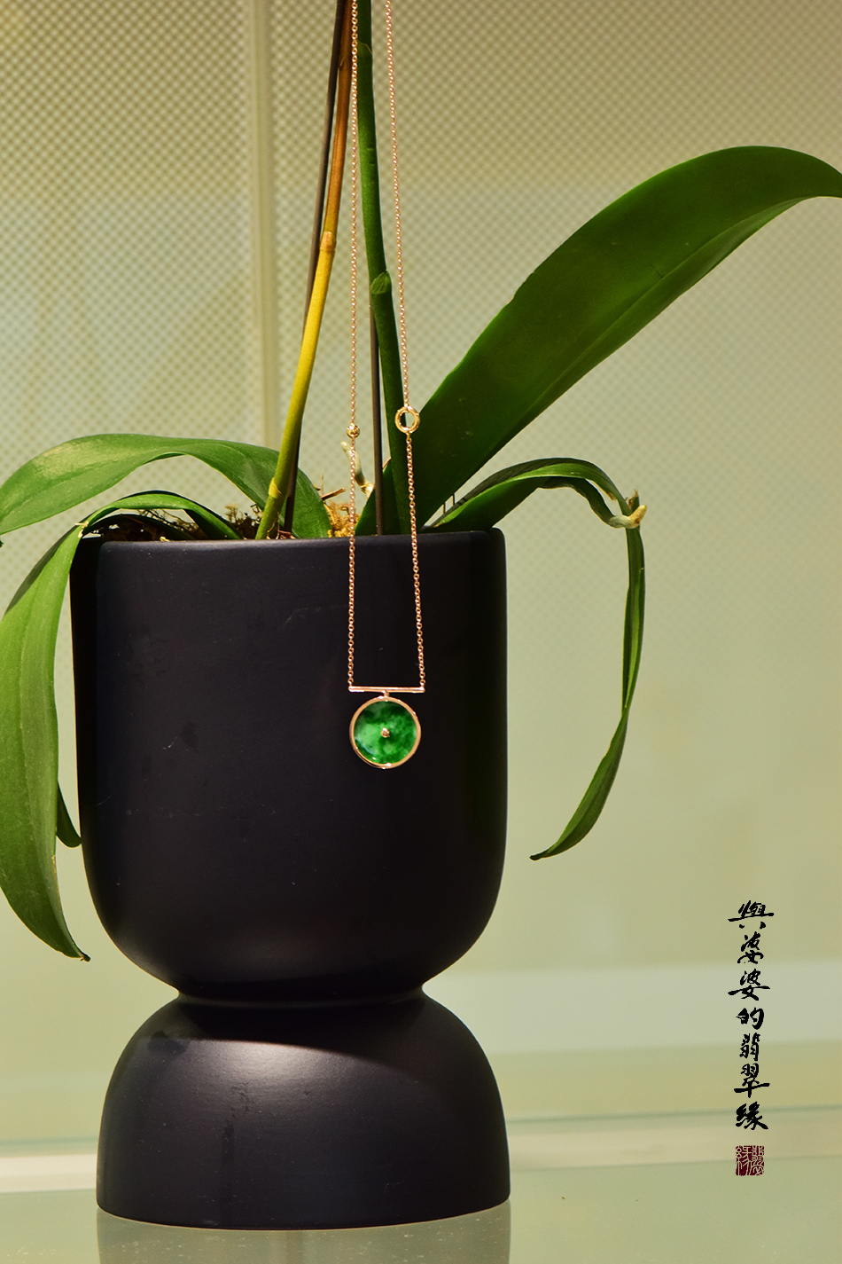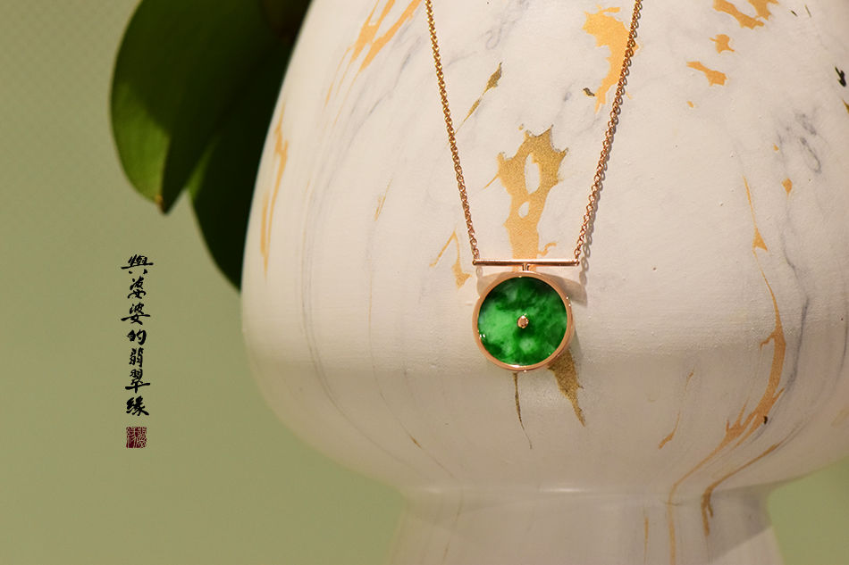 18k玫瑰金翡翠怀古长链