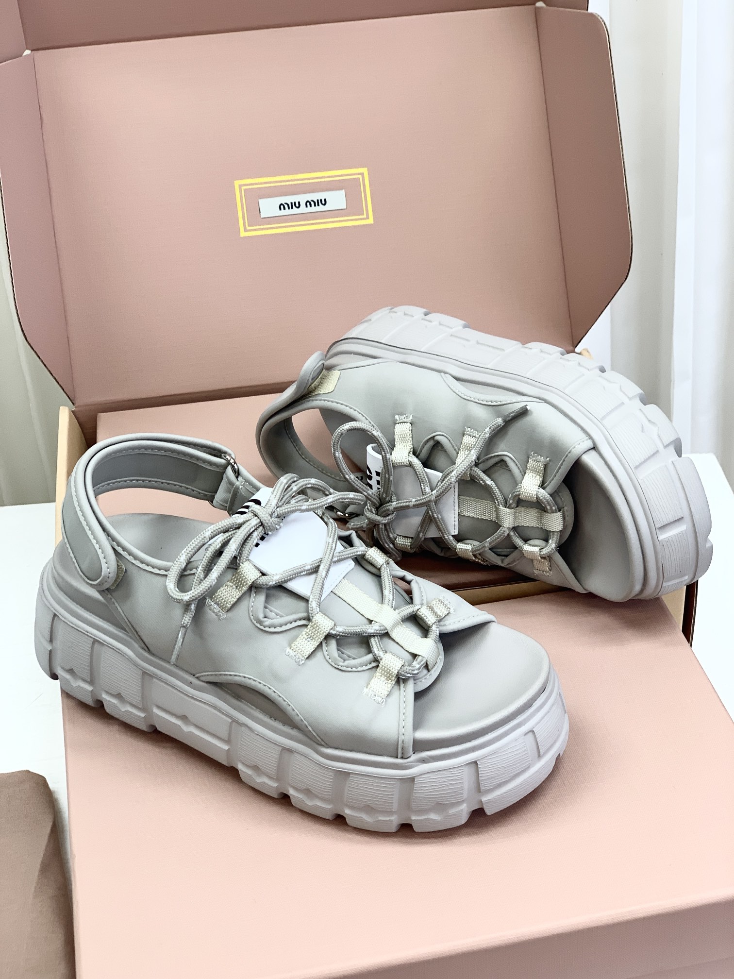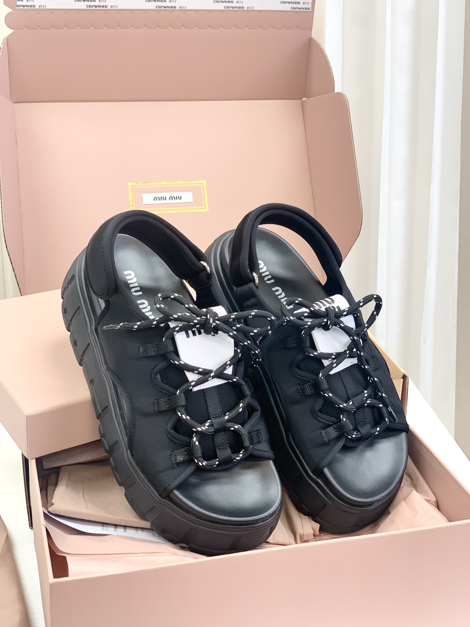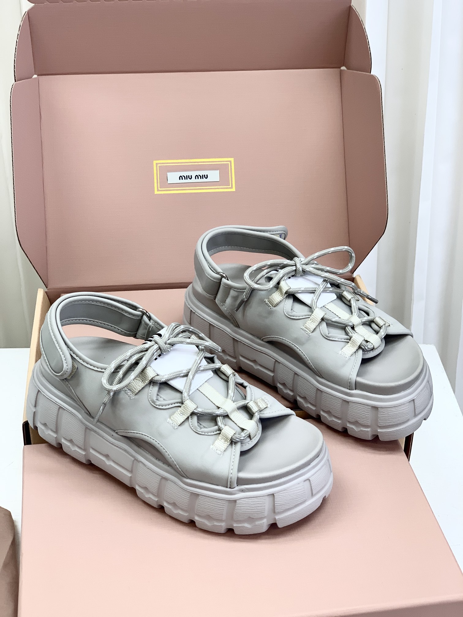 Miumiu,莞产,顶级,官网同步,2025专柜最新款,时尚抽绳绑带厚底魔术贴凉鞋‼️款式新颖时尚,一出场便是焦点,被追问无数次的夏日宝藏凉鞋,黑色款神秘而酷飒,低调中满是高级感,鞋面柔软细腻,随着步伐的移动,尽显奢华质感,温柔又清新,如同春日暖阳下的一缕微风,让你瞬间化身温柔女神 ,演绎随性优雅的气质!面料采用缎莱卡轻弹布,内里垫脚羊皮,柔软细腻,TPU模具发泡大底,底厚6cm!原盒包装,尺码,35 36 37 38 39 40 正码!