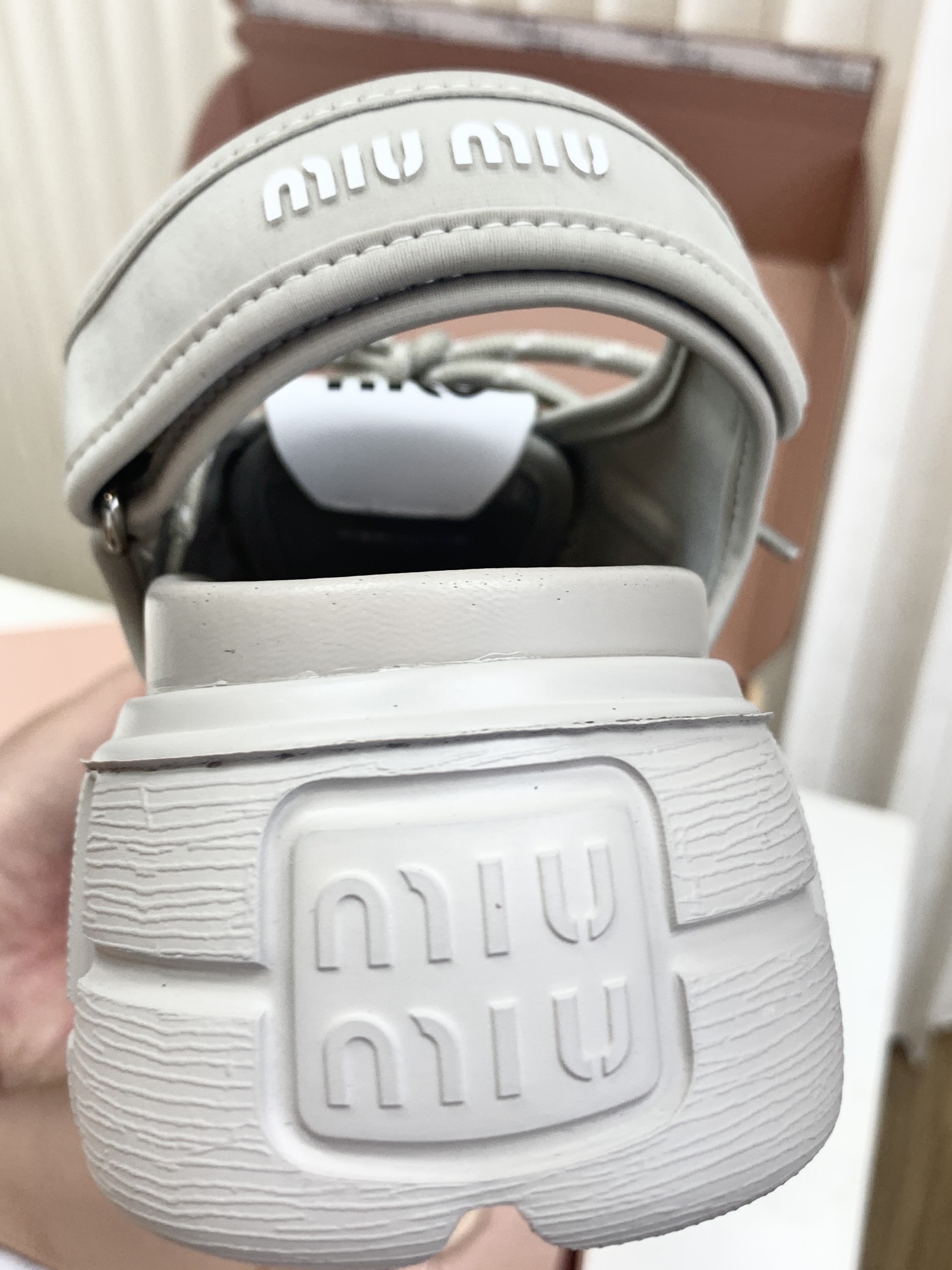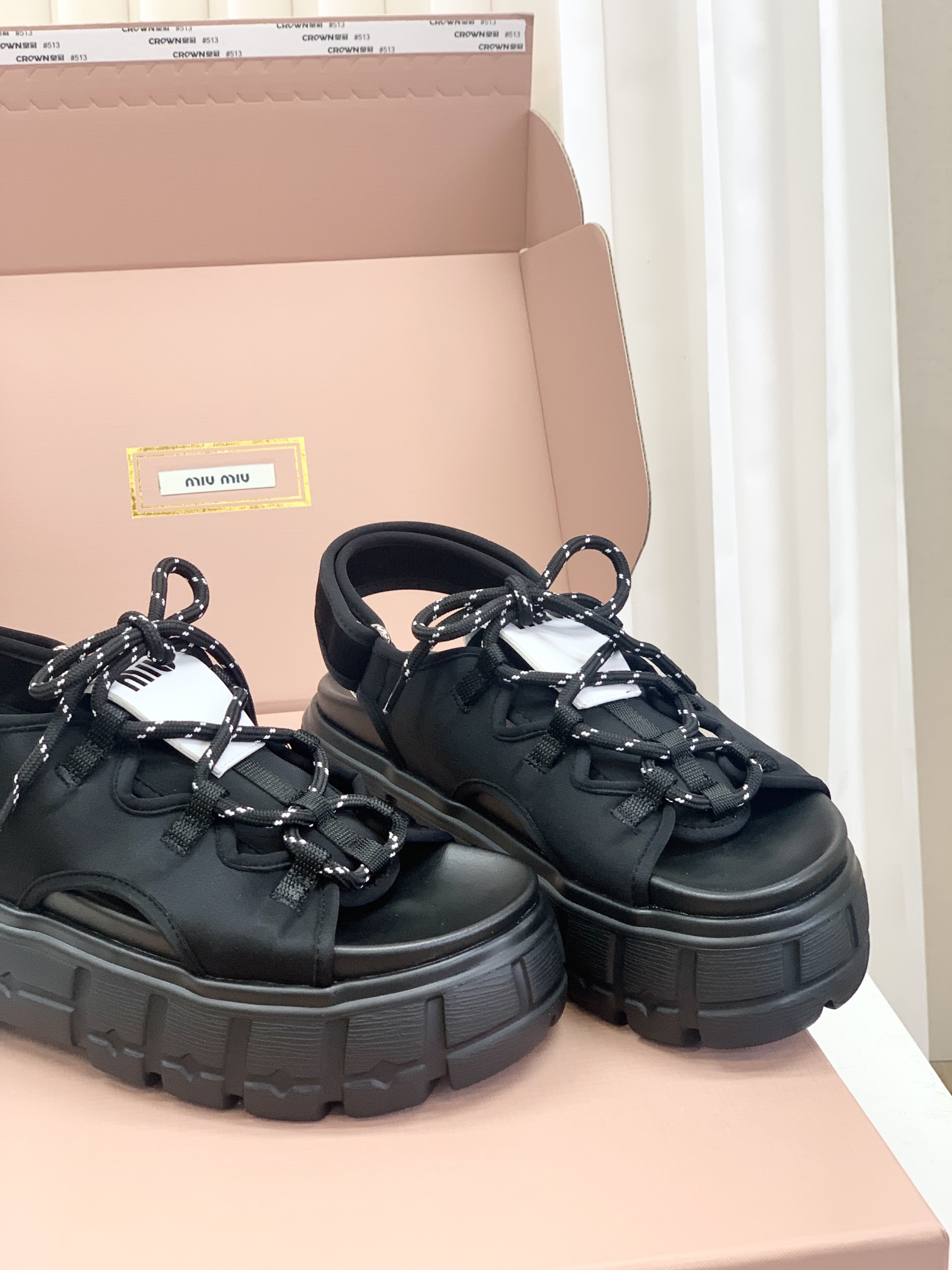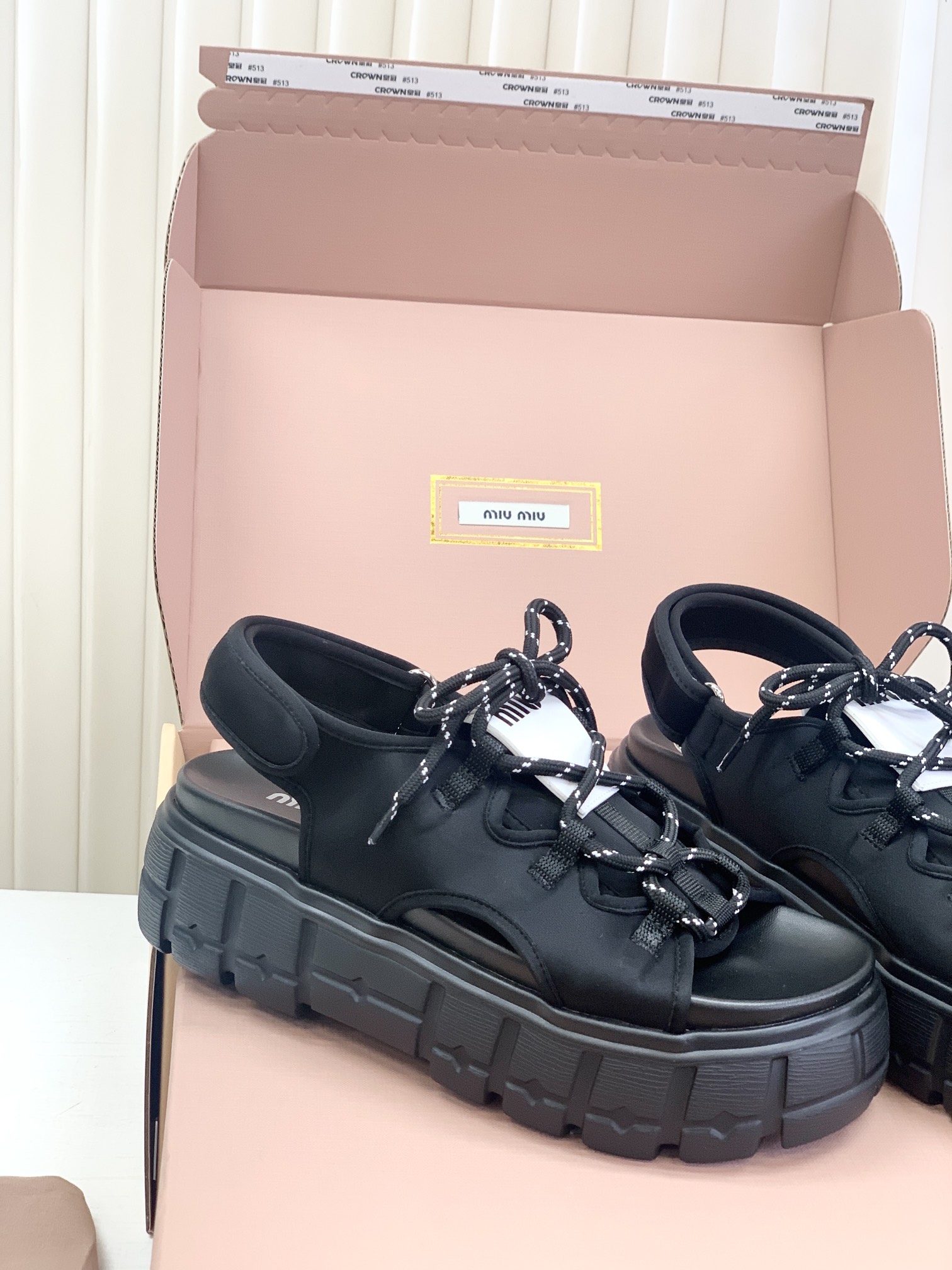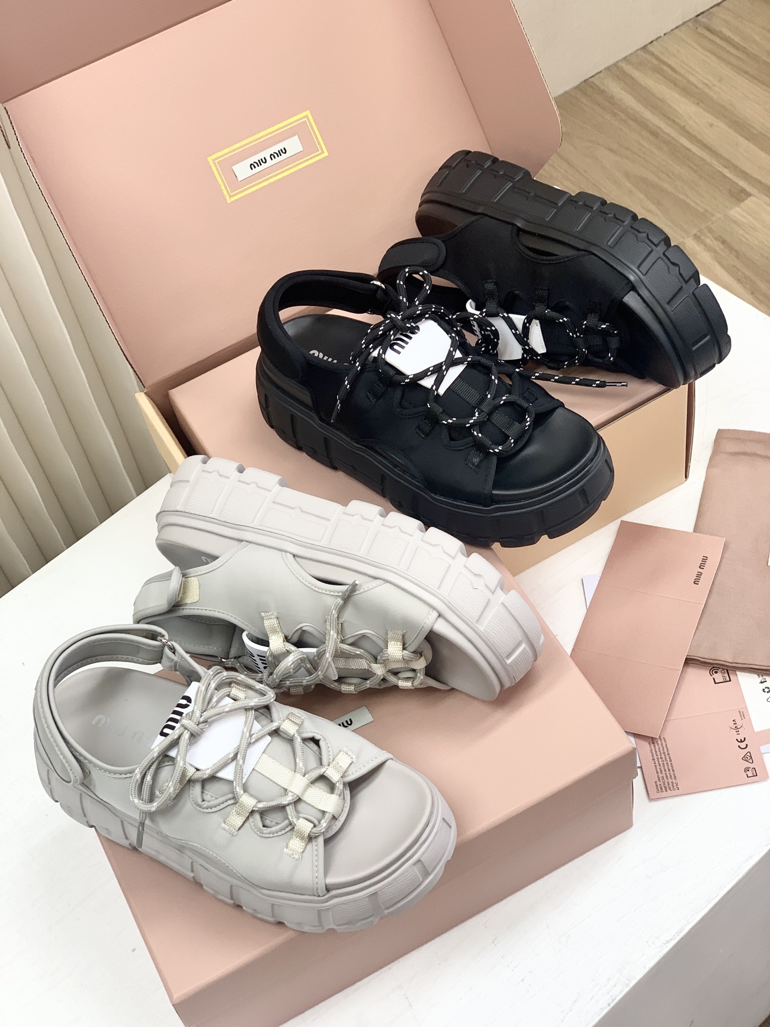 Miumiu,莞产,顶级,官网同步,2025专柜最新款,时尚抽绳绑带厚底魔术贴凉鞋‼️款式新颖时尚,一出场便是焦点,被追问无数次的夏日宝藏凉鞋,黑色款神秘而酷飒,低调中满是高级感,鞋面柔软细腻,随着步伐的移动,尽显奢华质感,温柔又清新,如同春日暖阳下的一缕微风,让你瞬间化身温柔女神 ,演绎随性优雅的气质!面料采用缎莱卡轻弹布,内里垫脚羊皮,柔软细腻,TPU模具发泡大底,底厚6cm!原盒包装,尺码,35 36 37 38 39 40 正码!