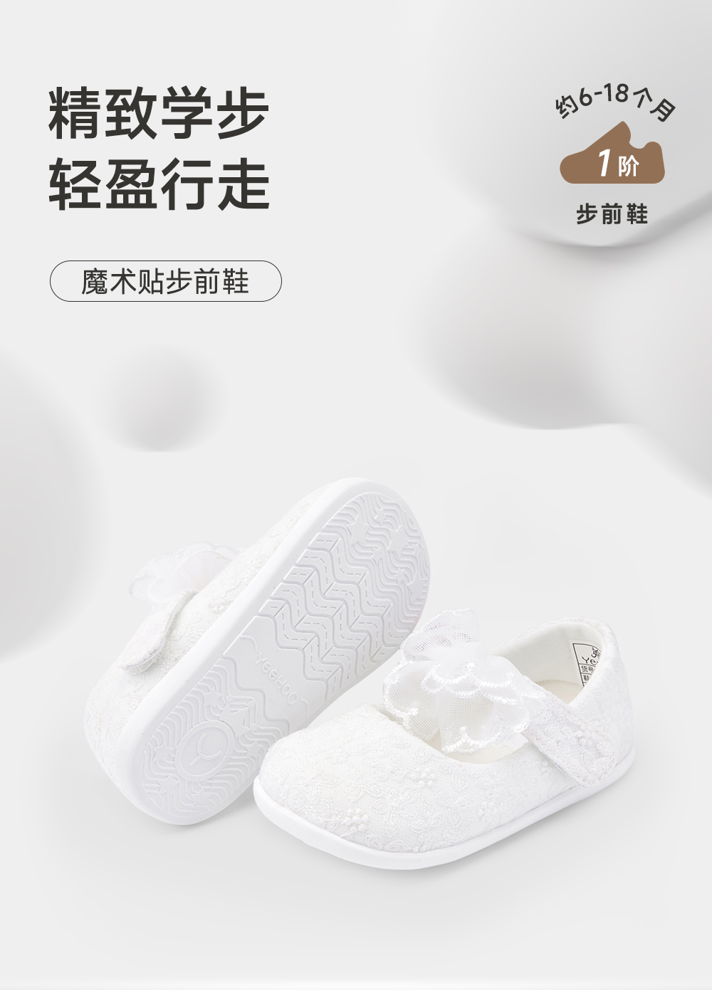 【商场同款】英氏儿童鞋婴儿步前鞋女宝蕾丝休闲鞋袜鞋公主鞋