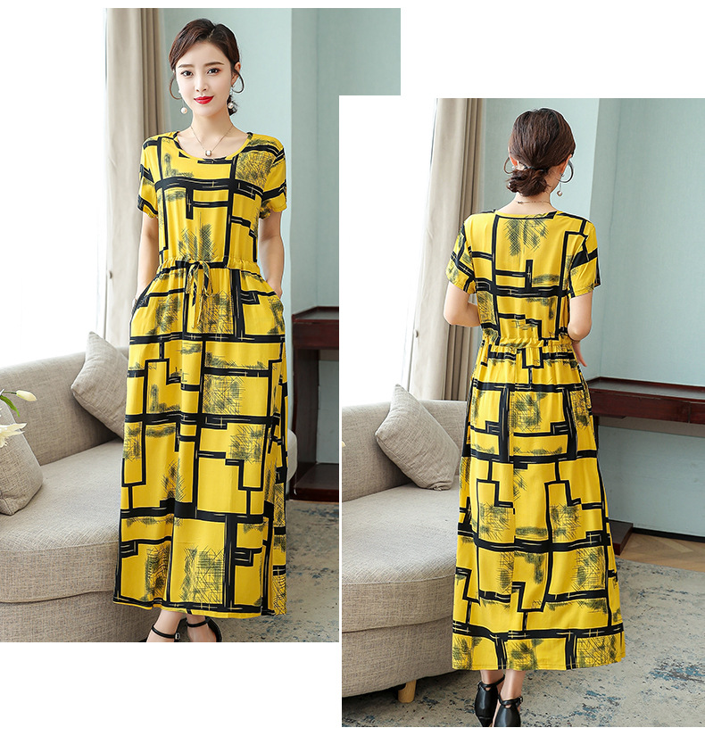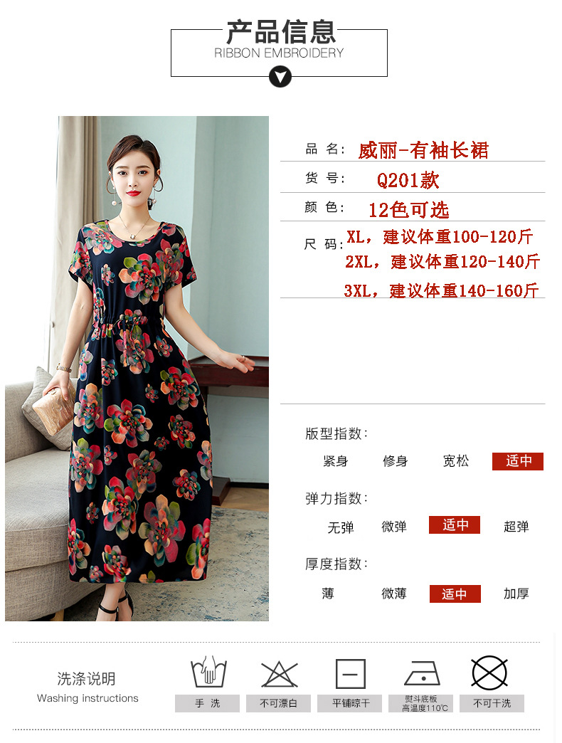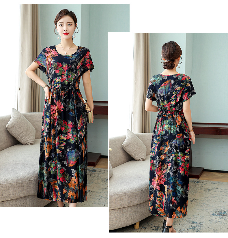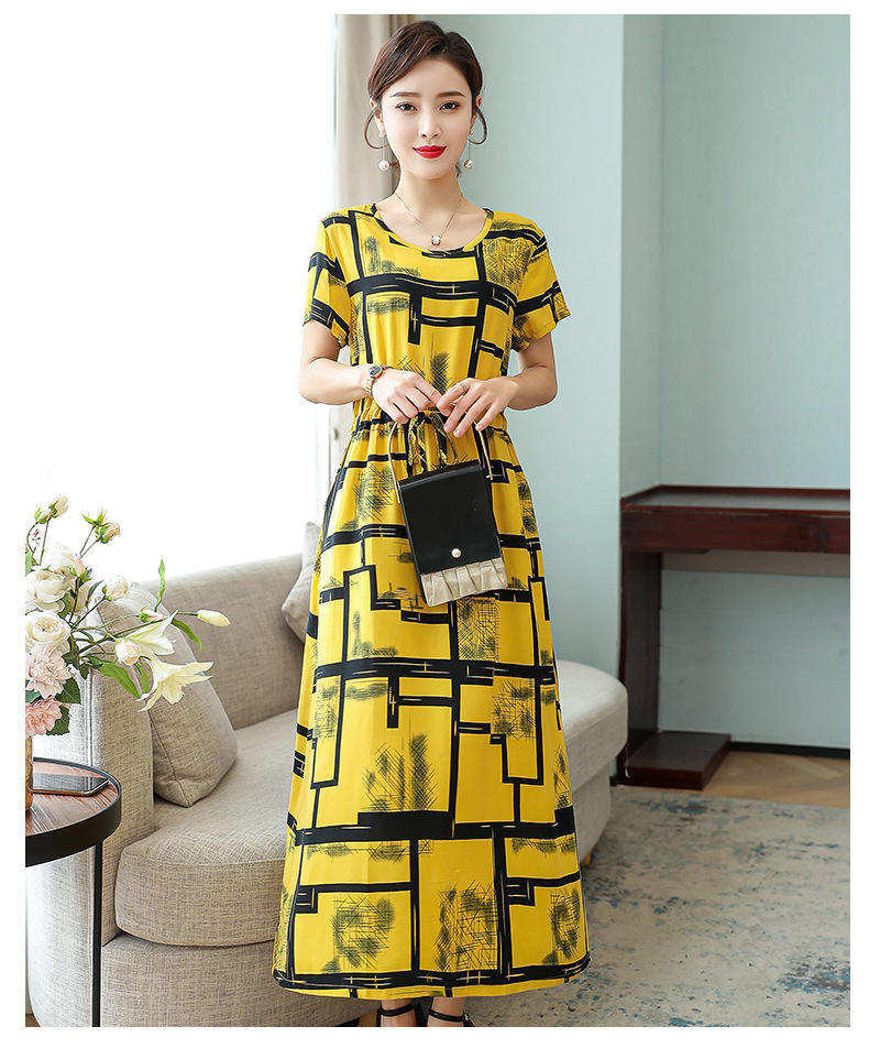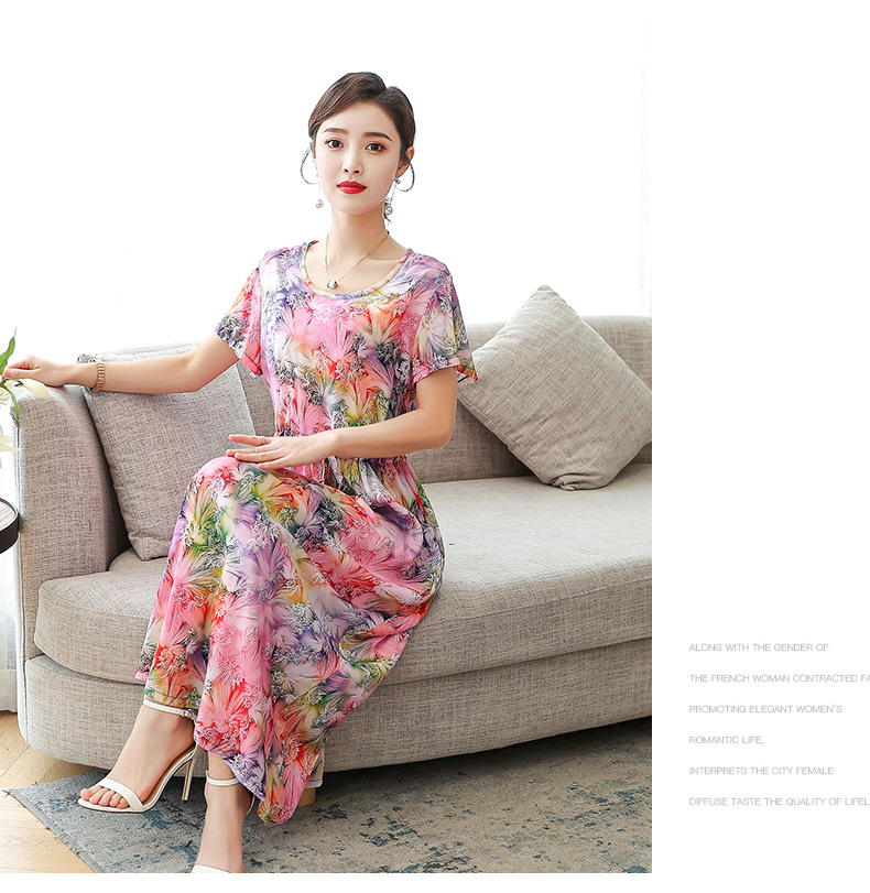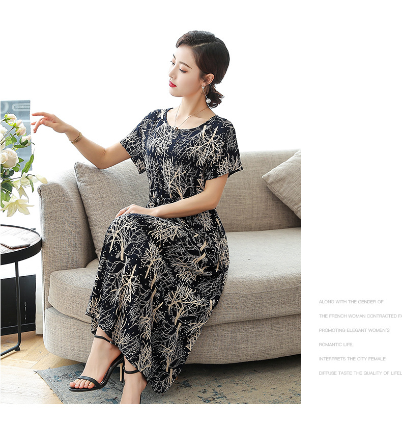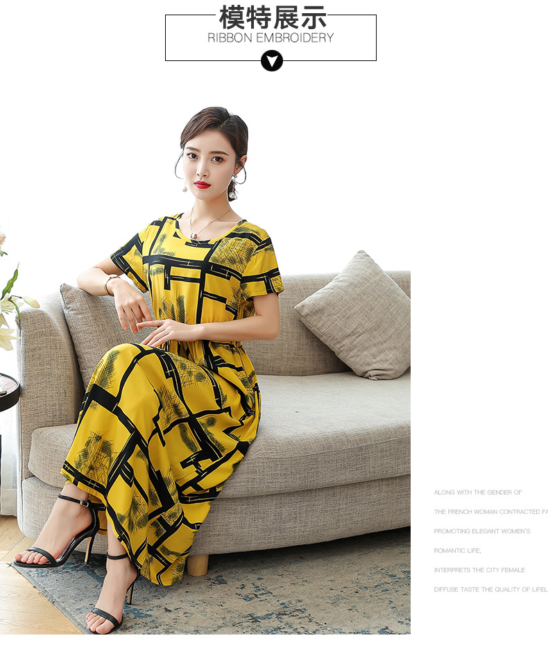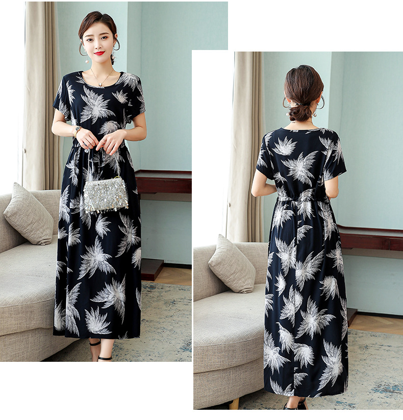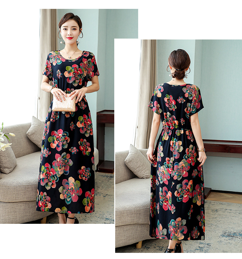 MQ-3324-Q201夏季新款宽松大码长款过膝棉绸连衣裙YY
