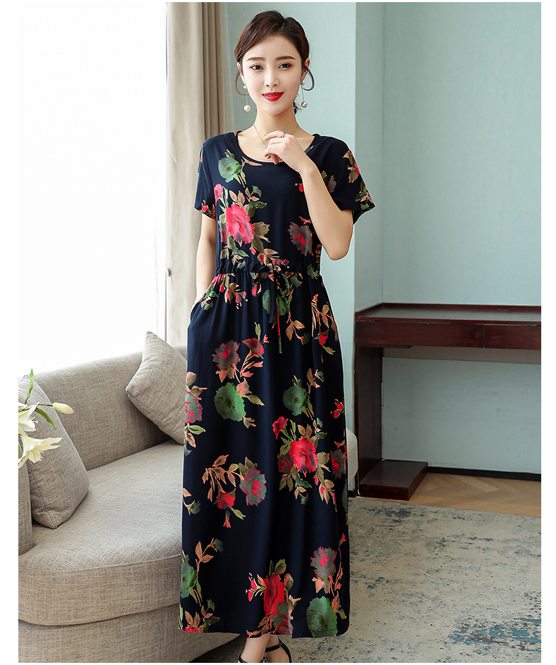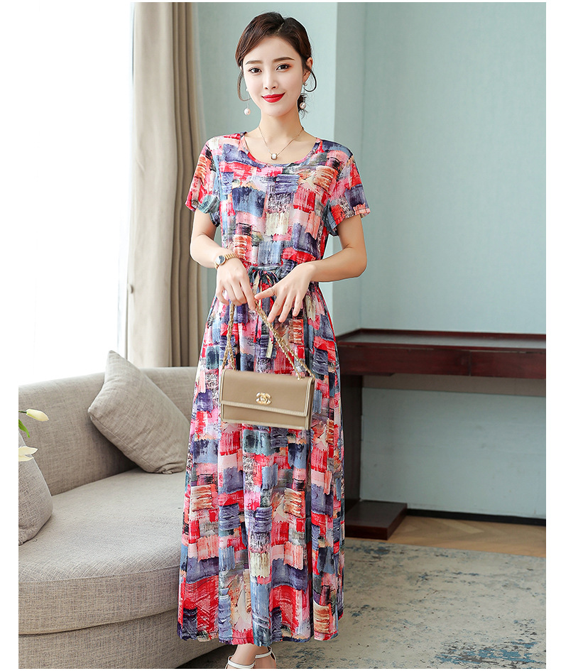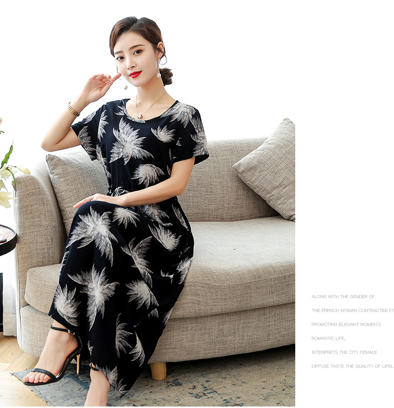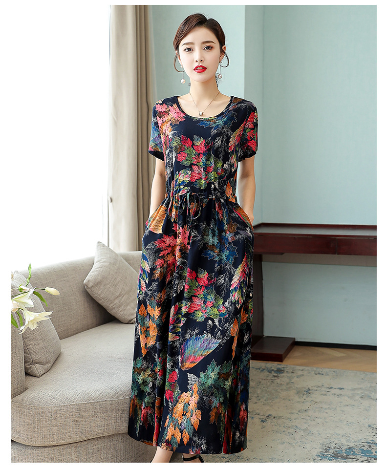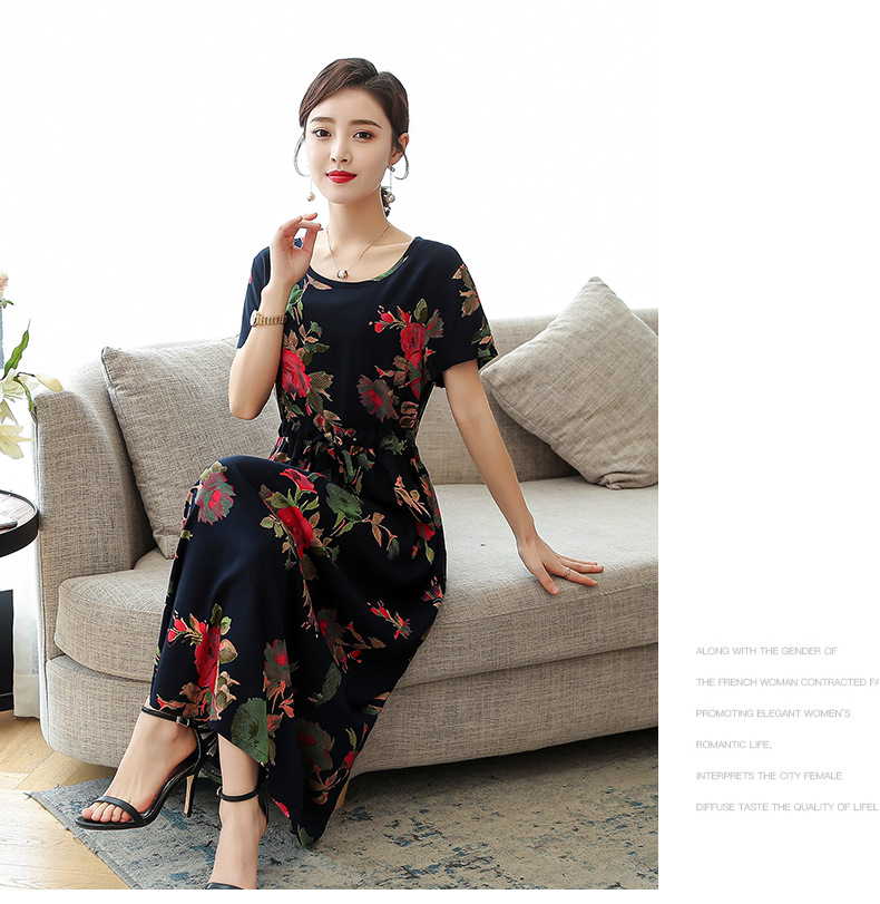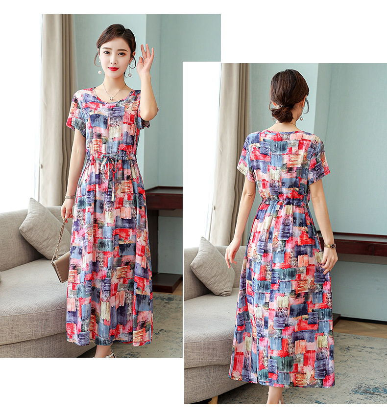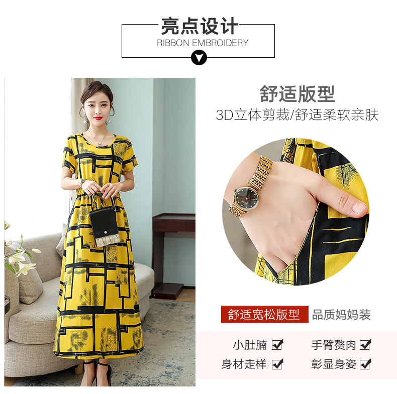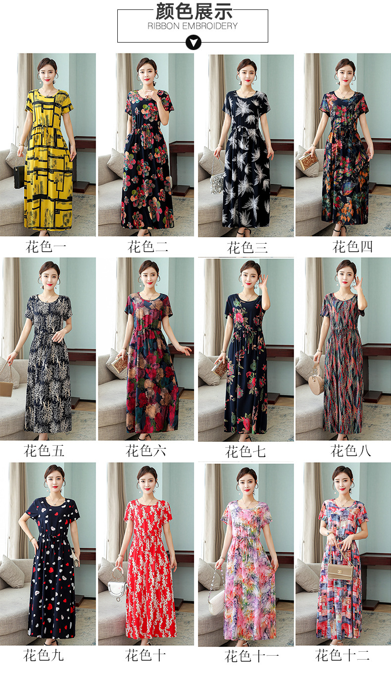 MQ-3324-Q201夏季新款宽松大码长款过膝棉绸连衣裙YY