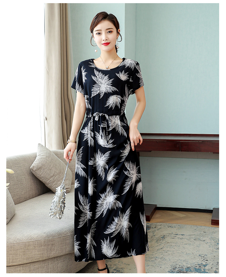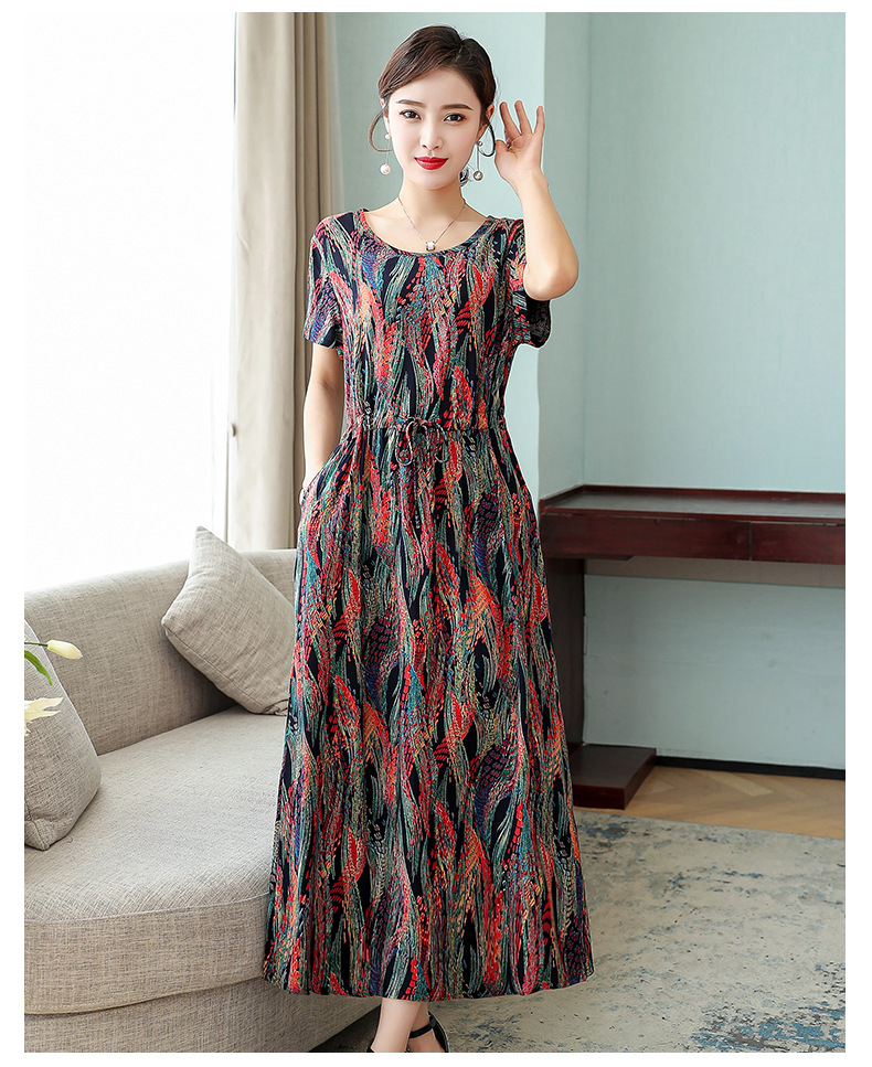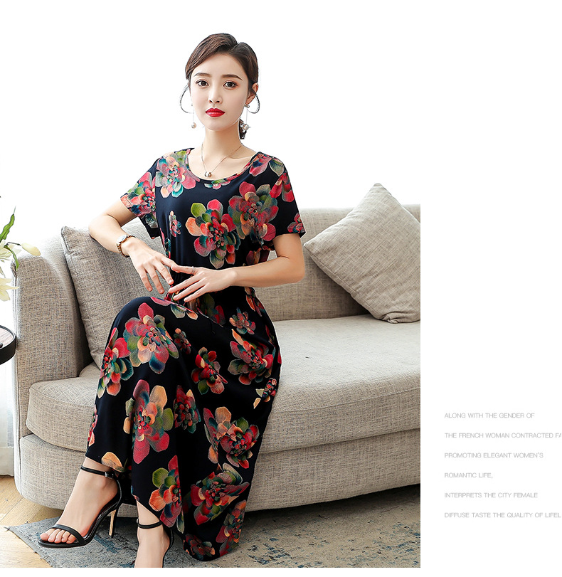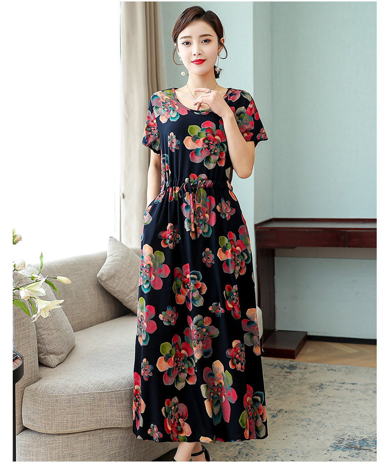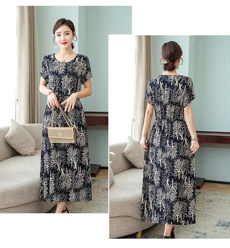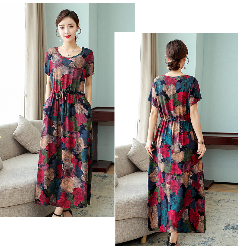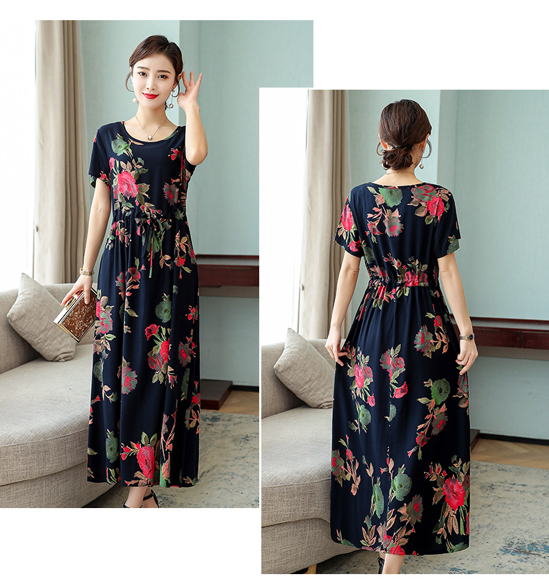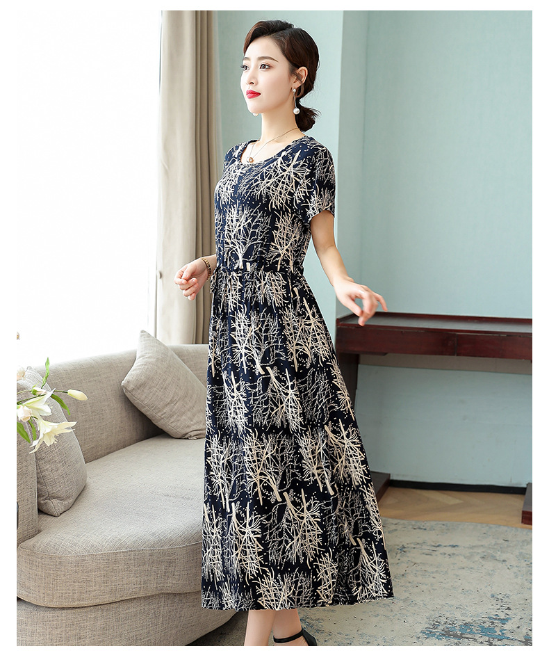 MQ-3324-Q201夏季新款宽松大码长款过膝棉绸连衣裙YY