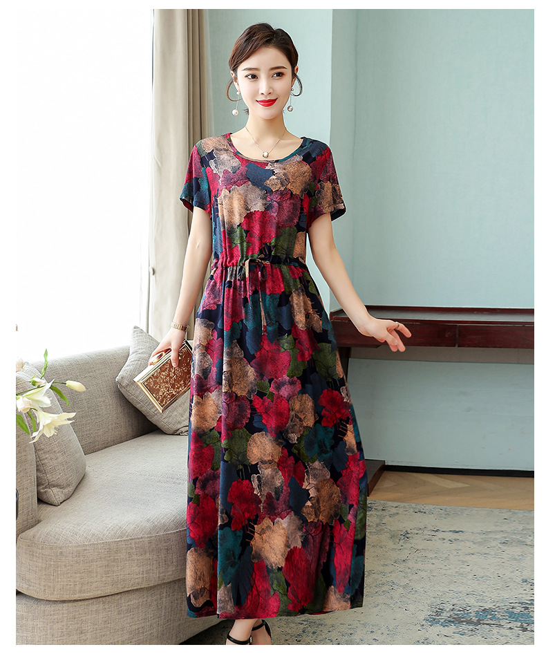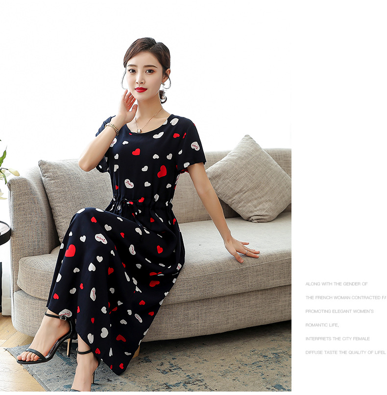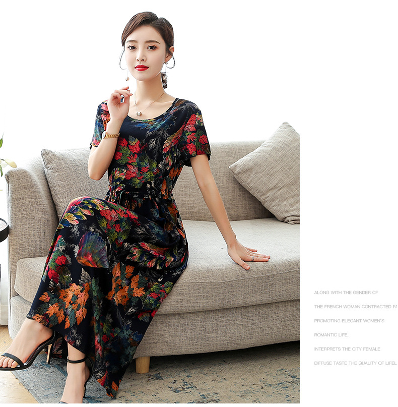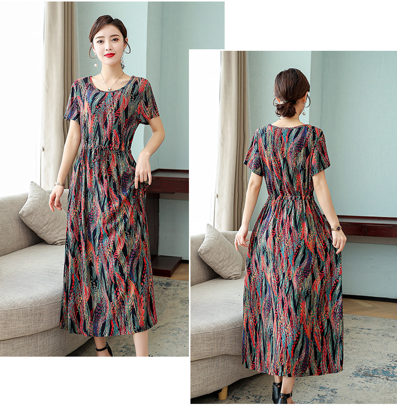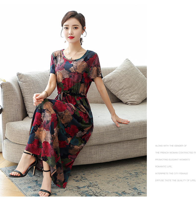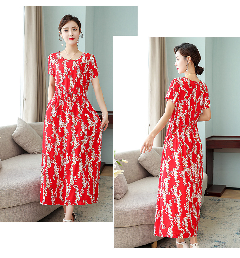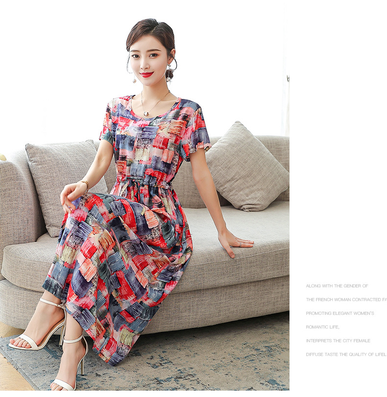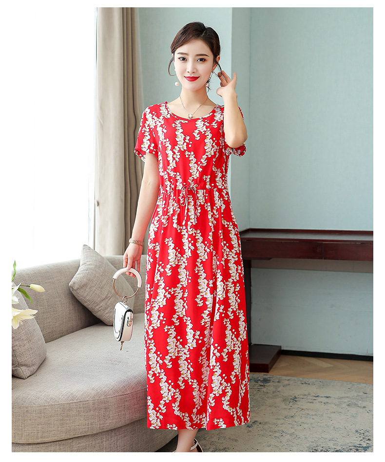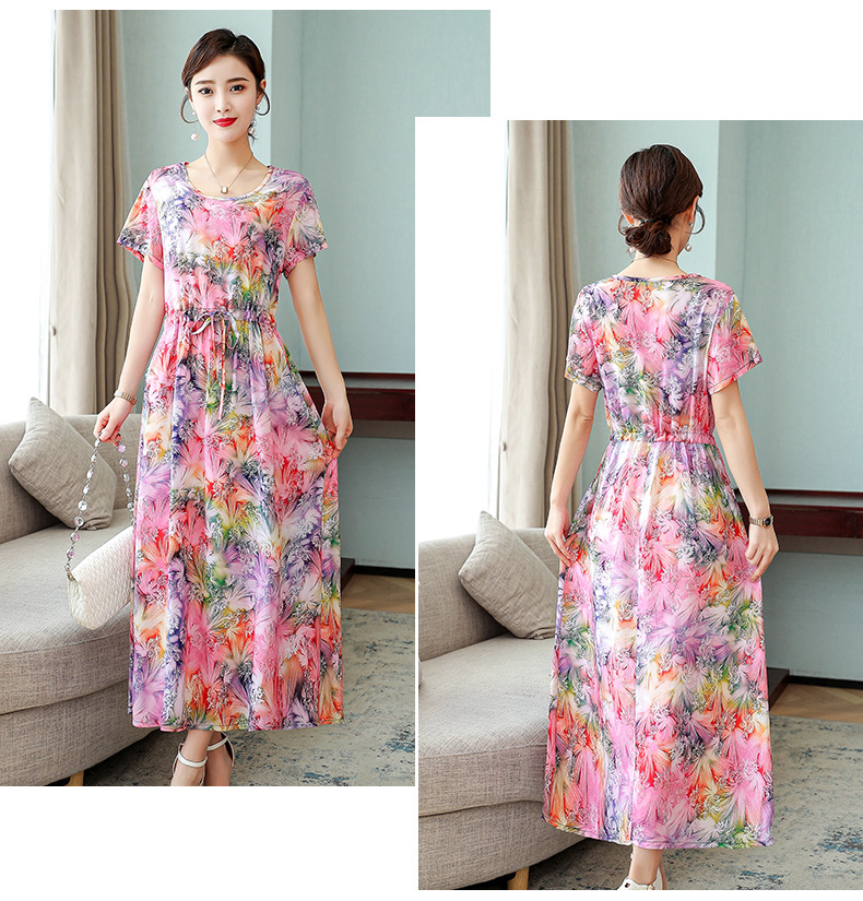 MQ-3324-Q201夏季新款宽松大码长款过膝棉绸连衣裙YY