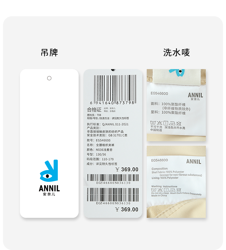 女童全腰梭织夹裤冬季新款安奈儿童装EG546600