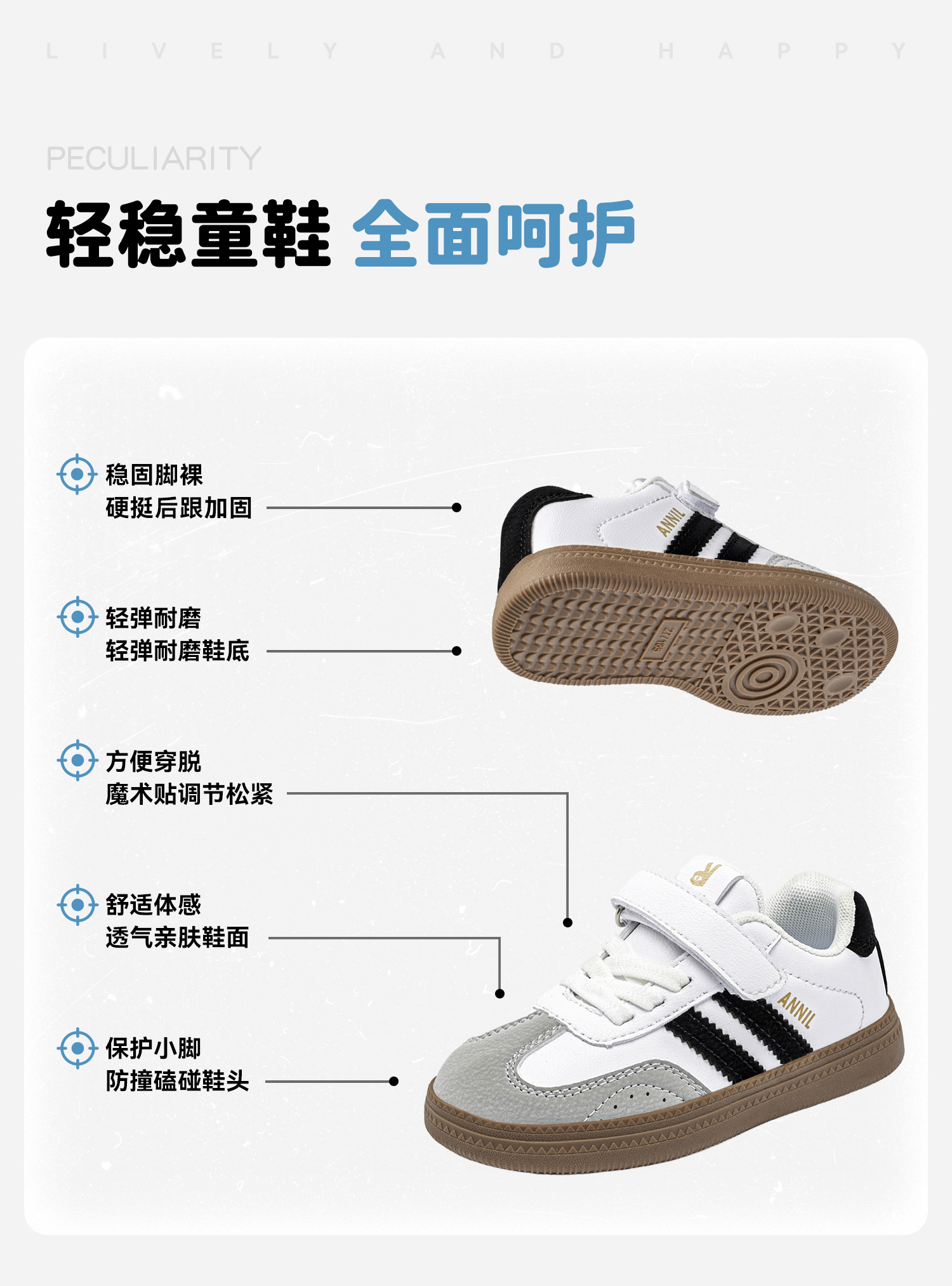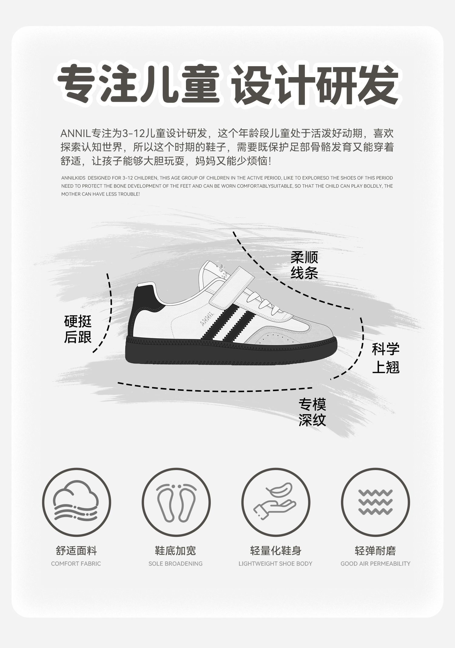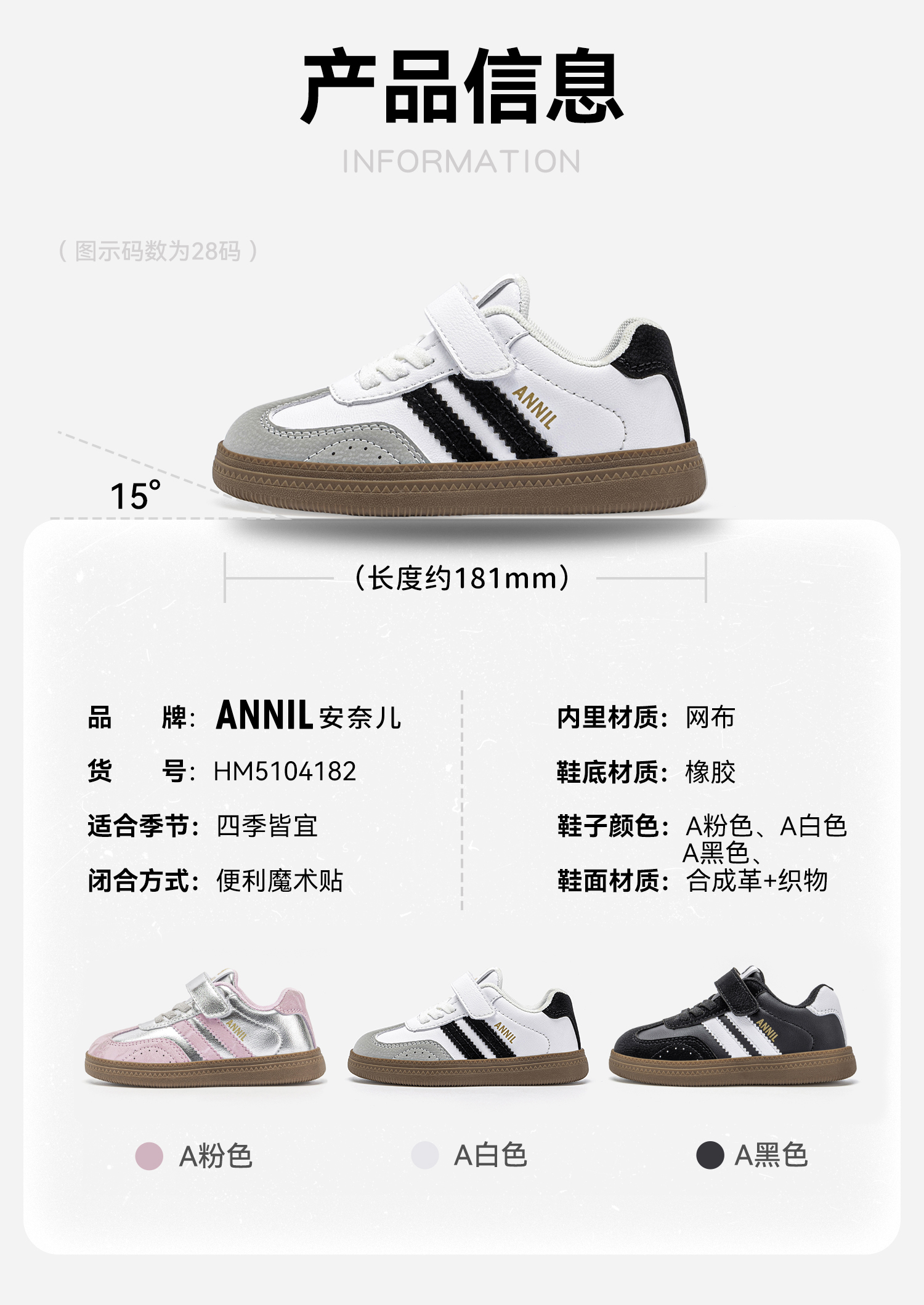 ANNIL/安奈儿儿童板鞋子2025春季软底防滑运动童鞋男童阿甘鞋女童德训鞋HM5104182