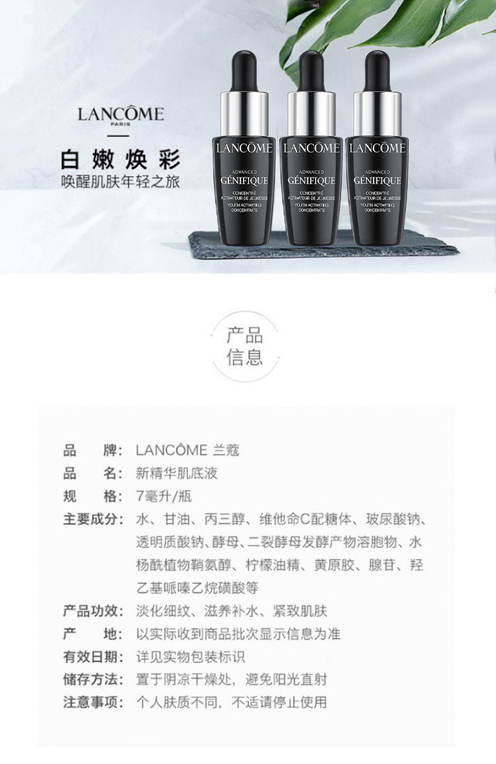 【520情人节好礼价】(香港直邮)lancome 兰蔻肌底液50ml套盒 修护精华礼盒 含肌底液50ml*1精华液7ml*5极光水50ml*1套盒装配礼袋