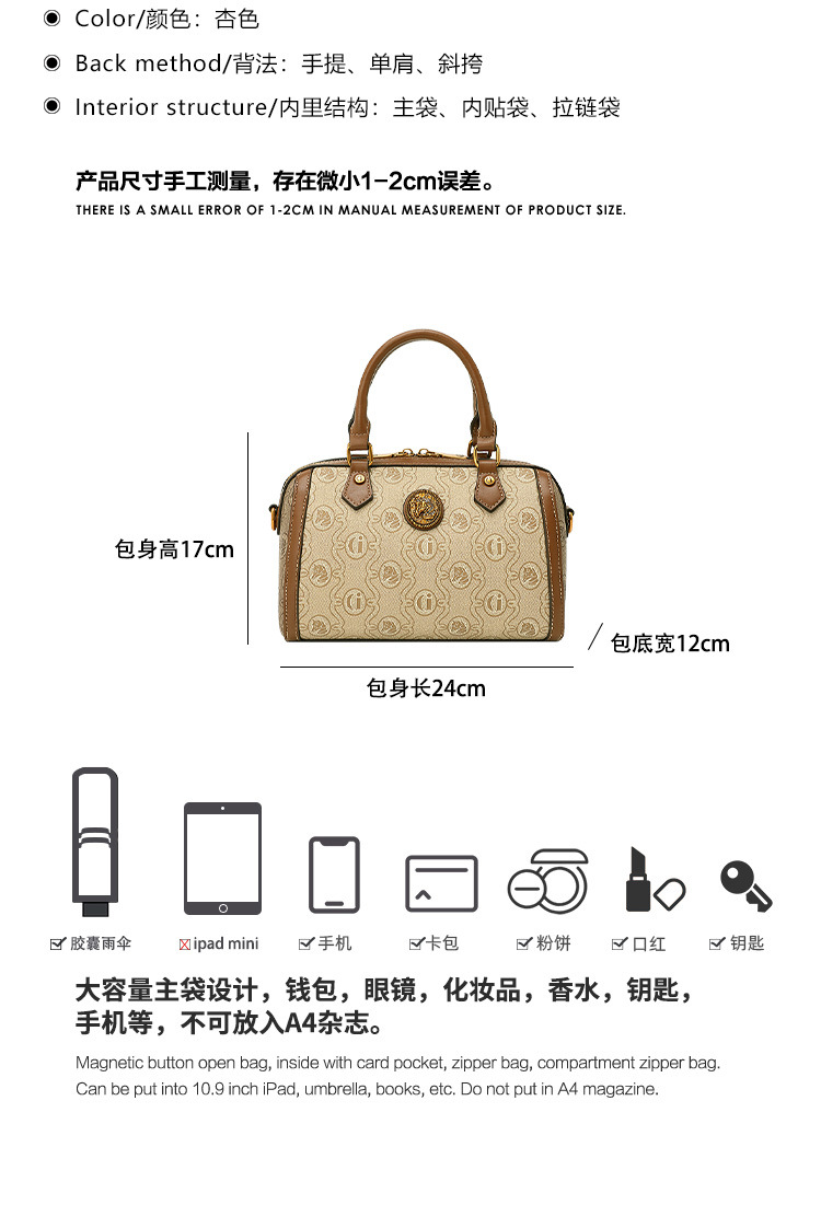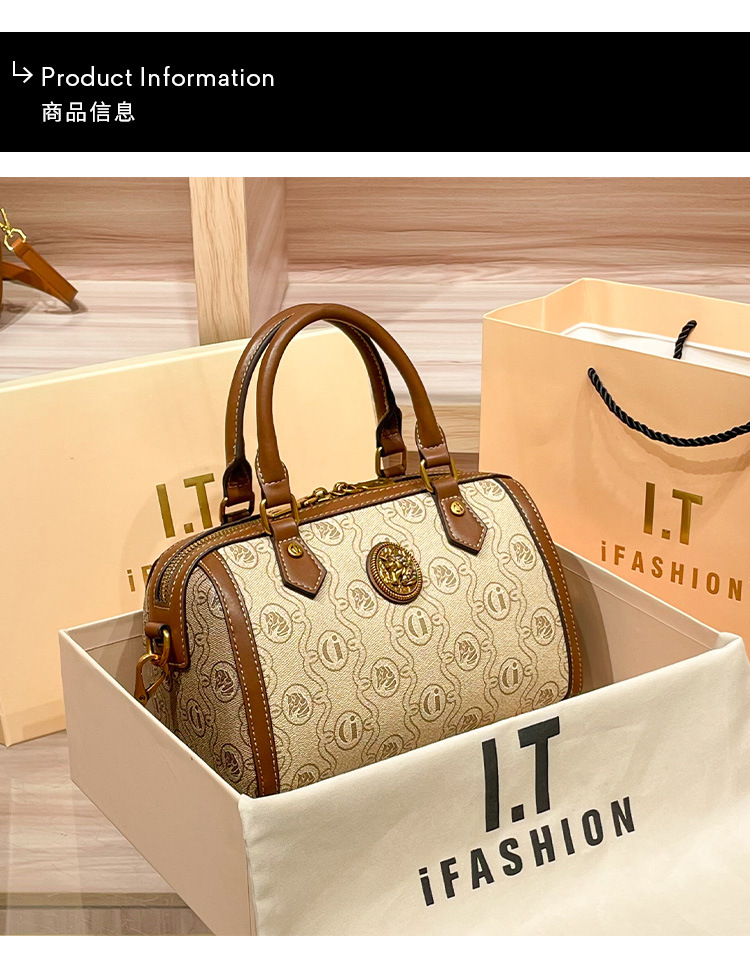 丁摩 包包新款高级感印花字母波士顿枕头包百搭斜挎手提小包女5ZF-00173