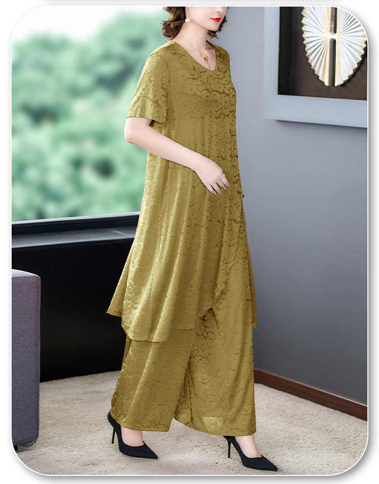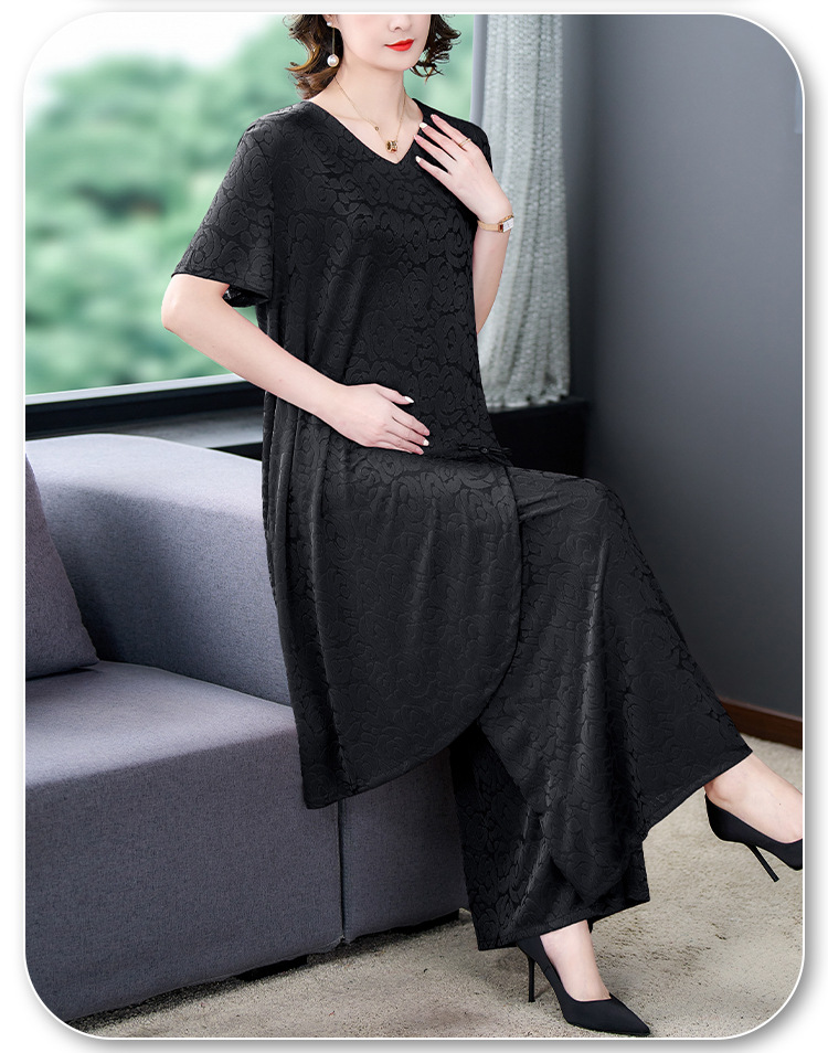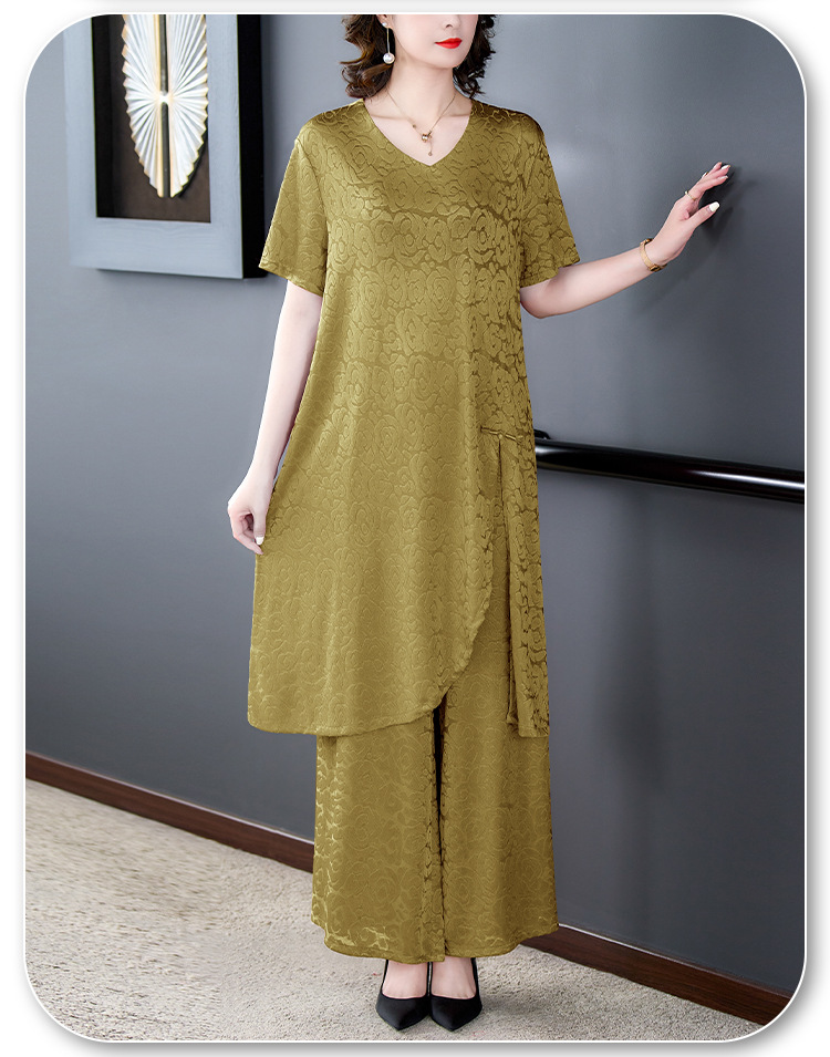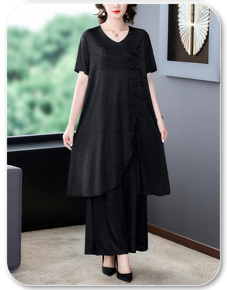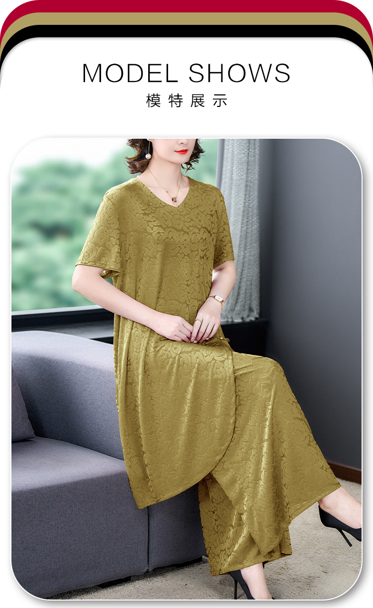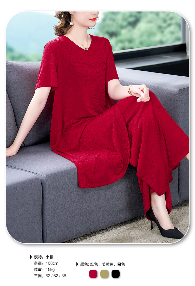NYL 9031时尚休闲套装妈妈不规则上衣阔腿裤两件套