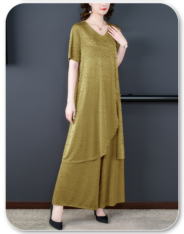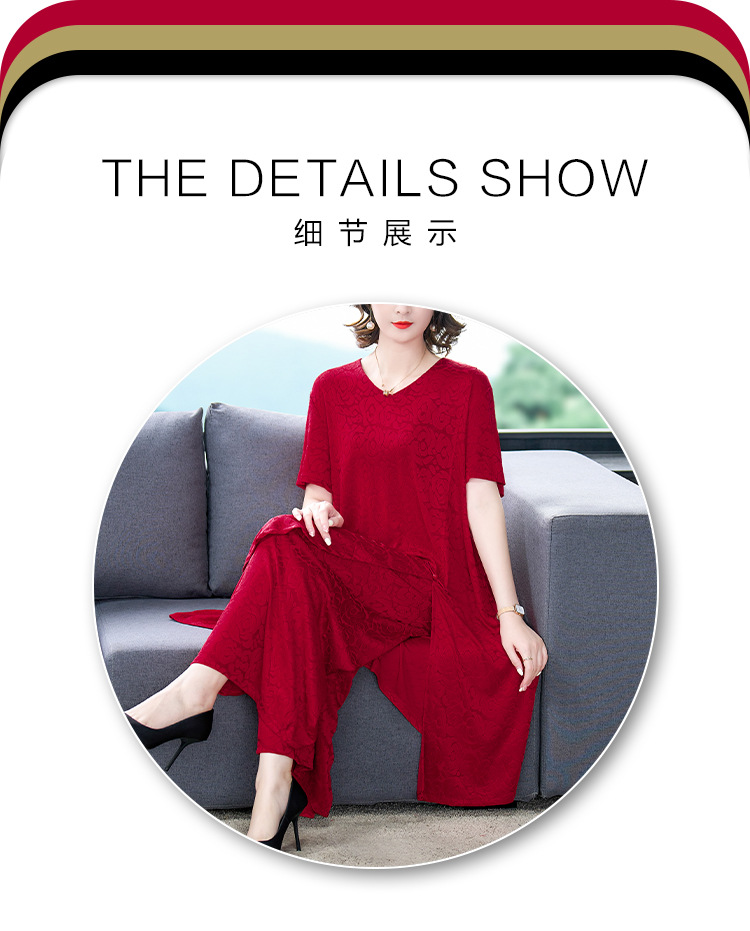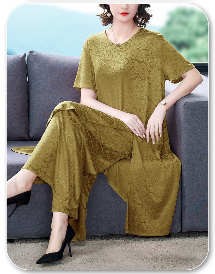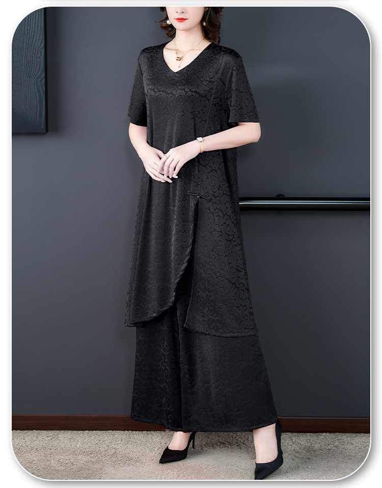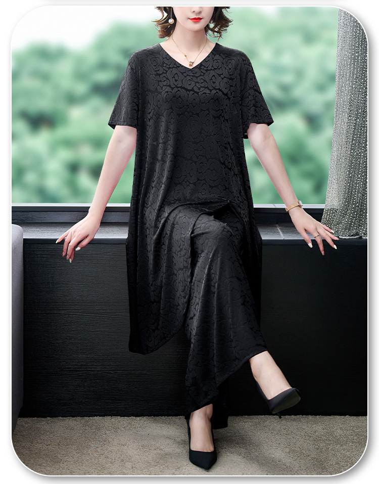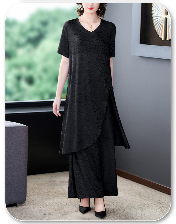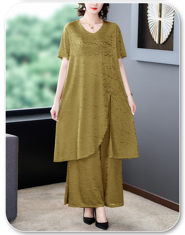 NYL 9031时尚休闲套装妈妈不规则上衣阔腿裤两件套