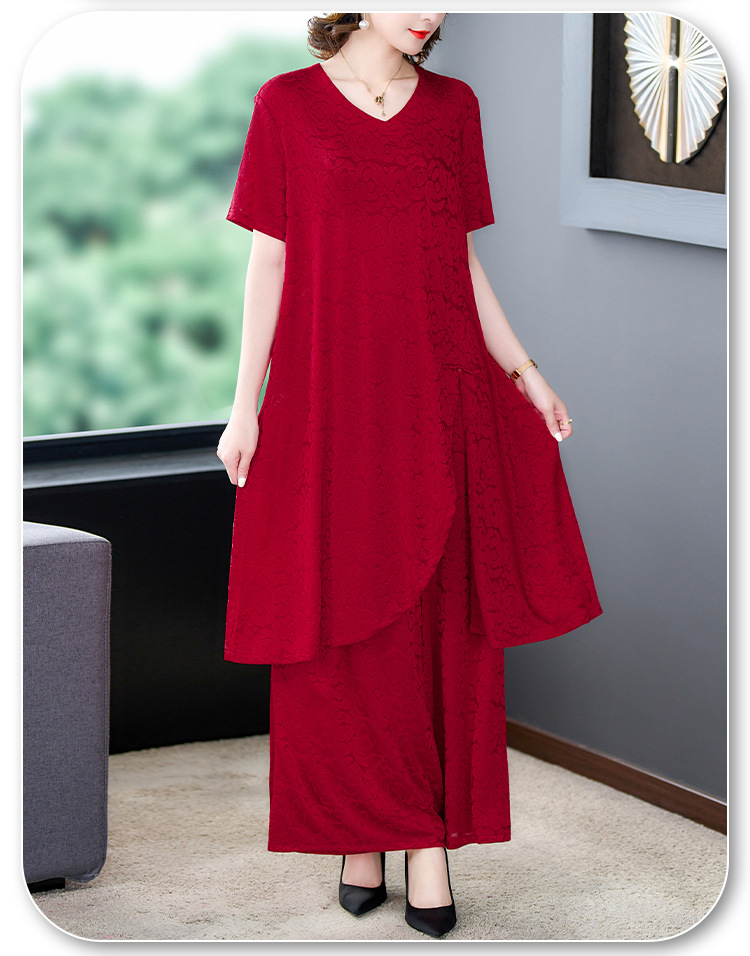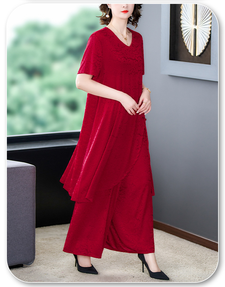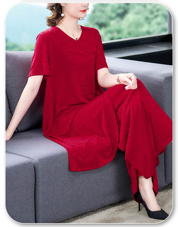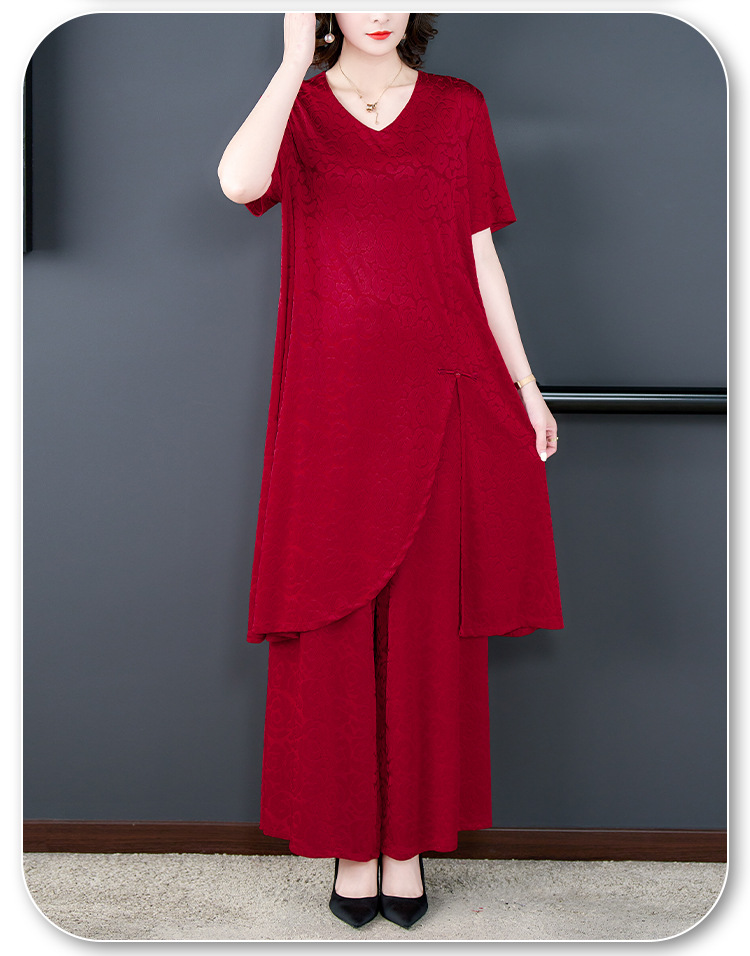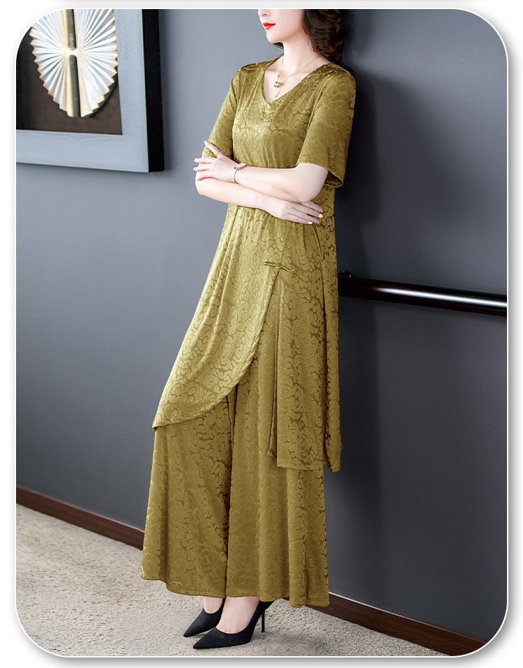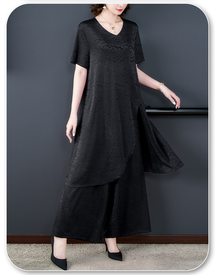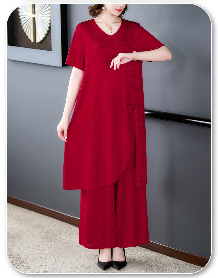 NYL 9031时尚休闲套装妈妈不规则上衣阔腿裤两件套