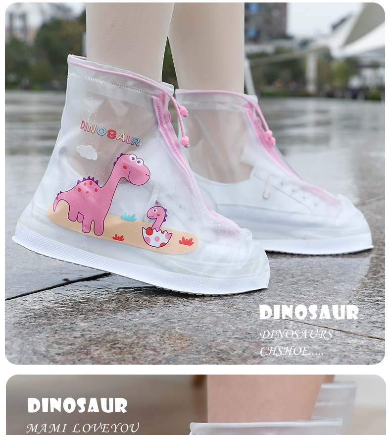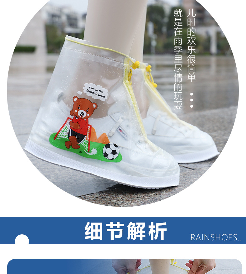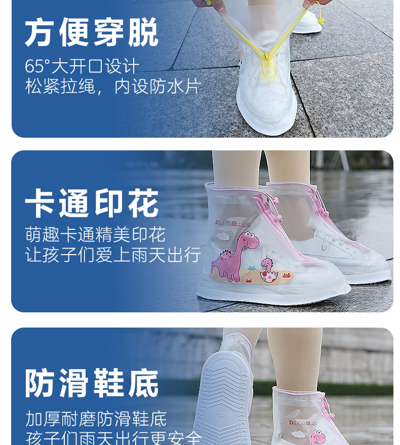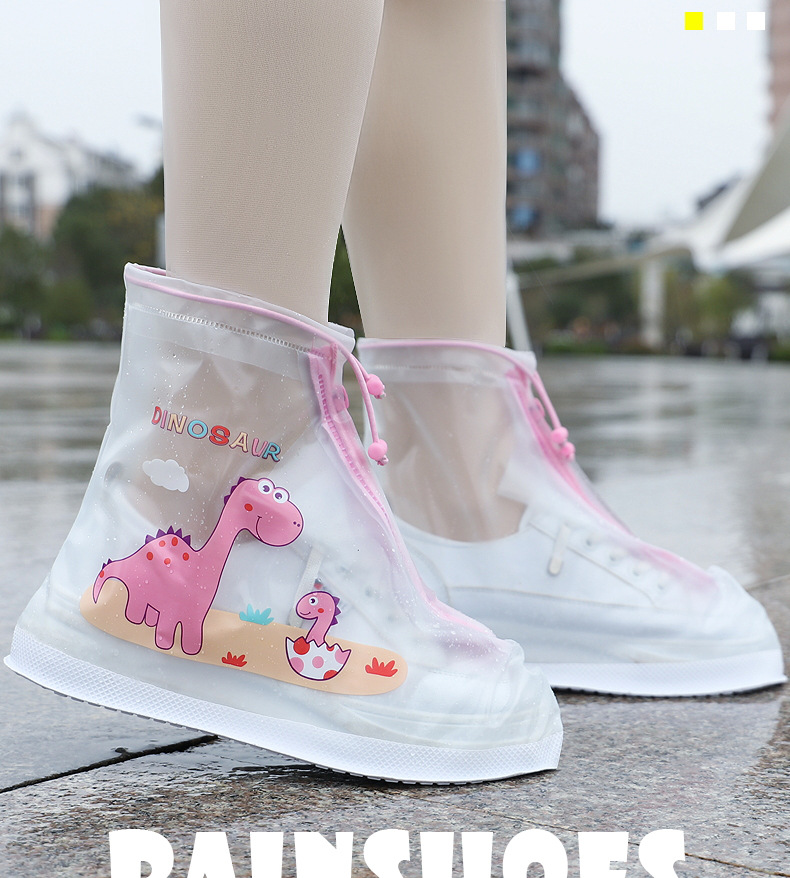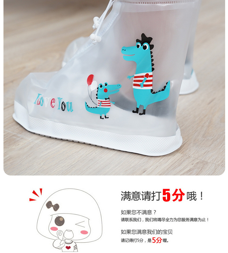 【简约时尚,靓丽出行,萌趣卡通儿童雨鞋套】平跟中筒儿童雨鞋套 圆头粉色可爱 卡通图案防滑 耐磨户外水鞋套-QQ