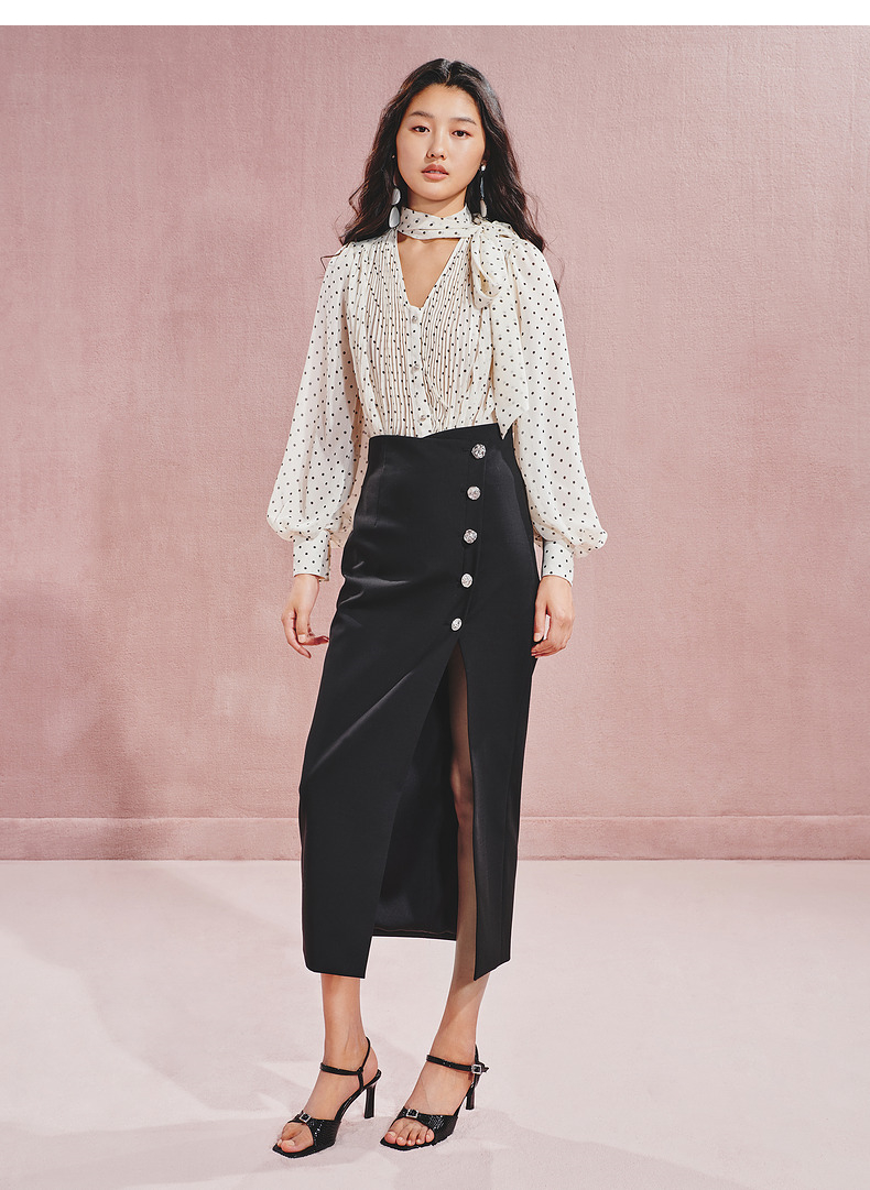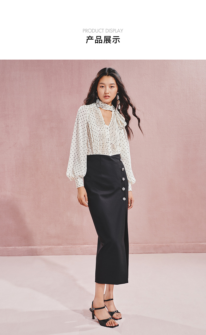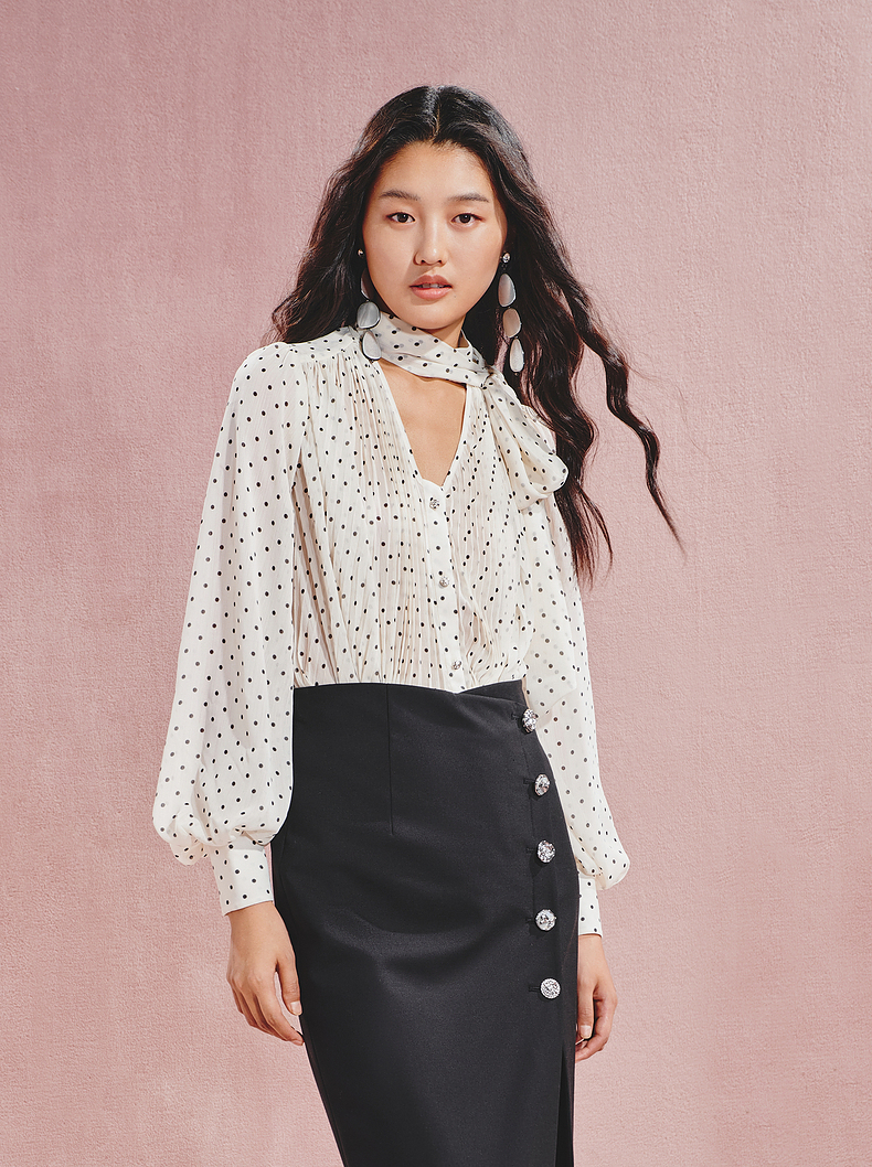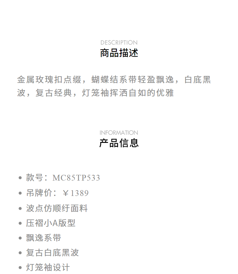 【贵雅日常-商场同款】MAXRIENY复古摩登感蝴蝶结系压褶上衣(货号:MC85TP533)