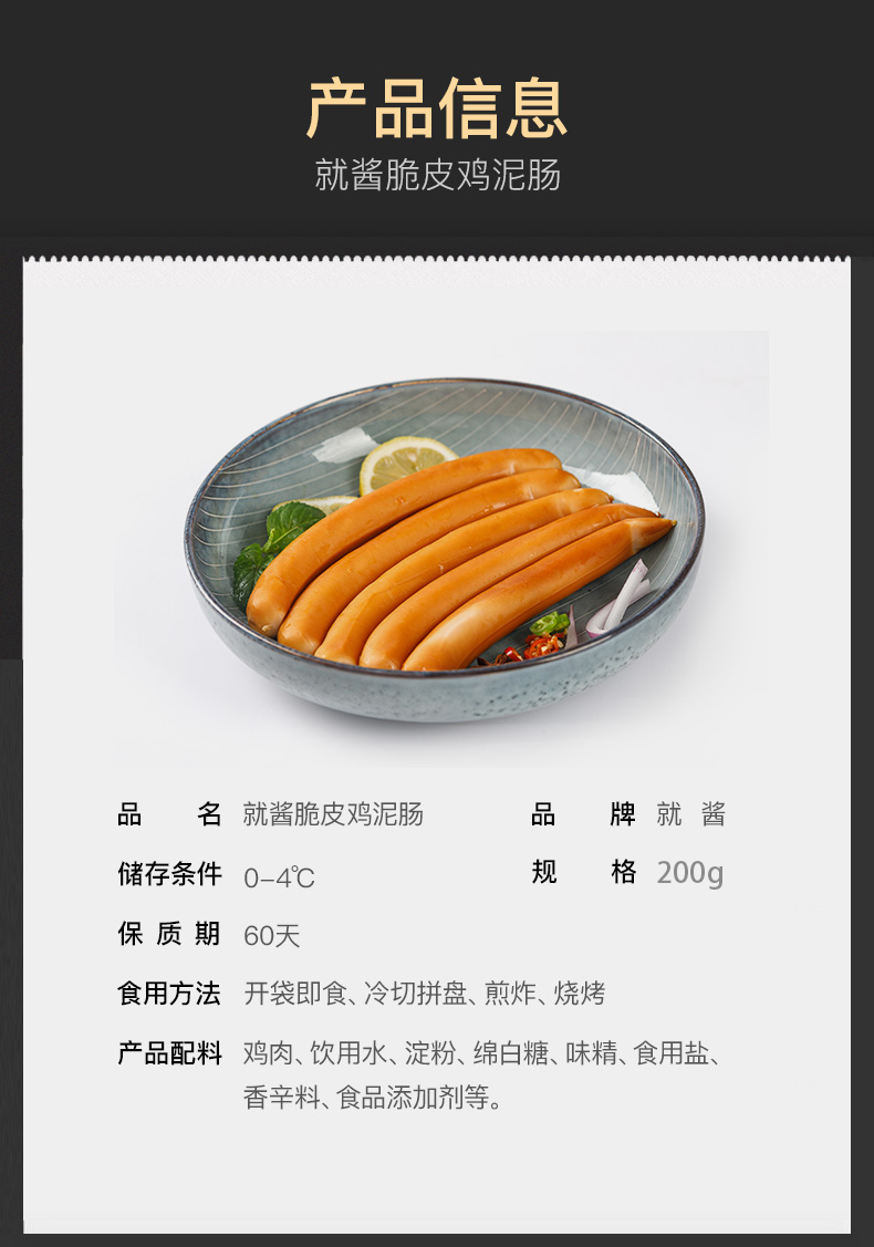 YP 就酱熟食套组 就酱脆皮鸡泥肠200g/袋*2袋;就酱金丝肉卷肠200g/袋*2袋;就酱松仁肉肚肠250g/袋*2袋