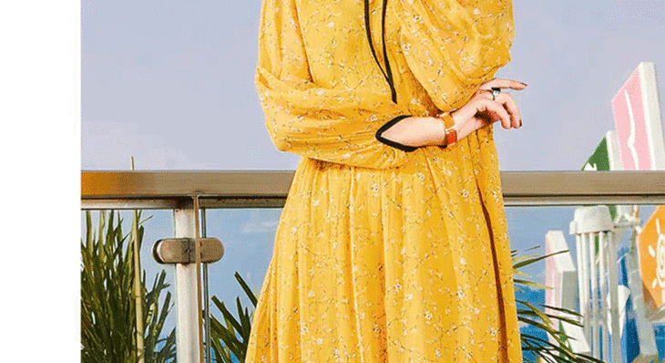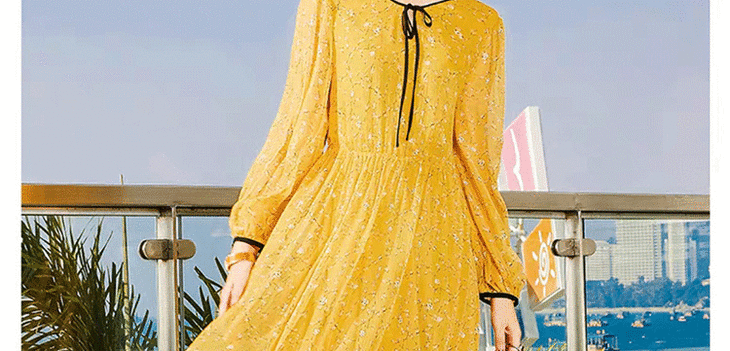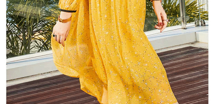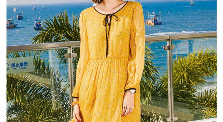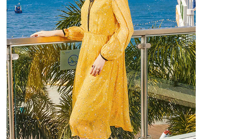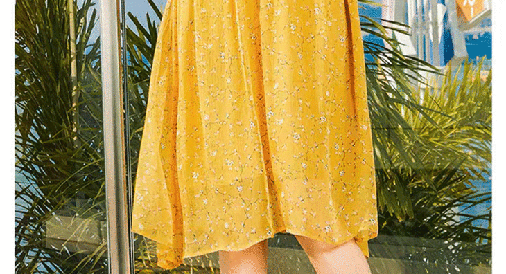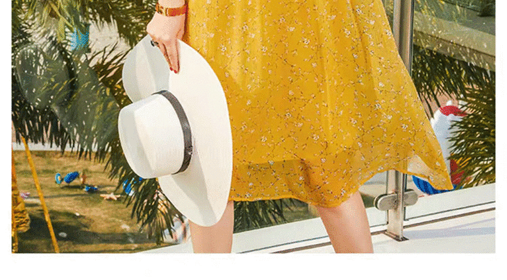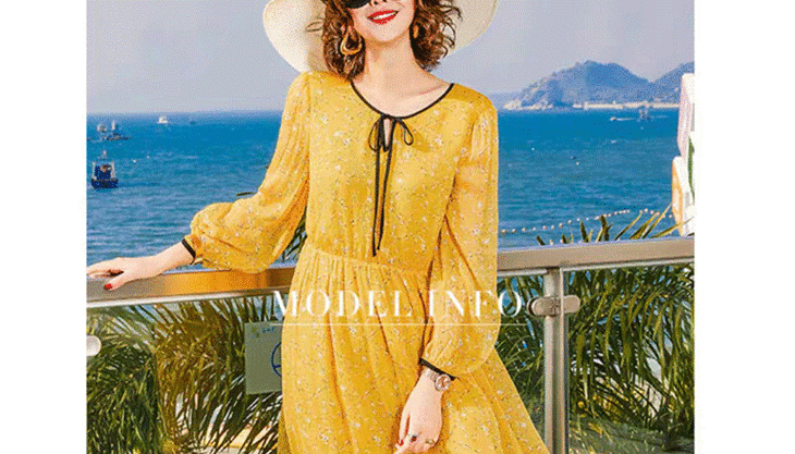 丁摩 真丝连衣裙女长裙桑蚕丝连衣裙海边度假碎花沙滩裙20-116-DW599