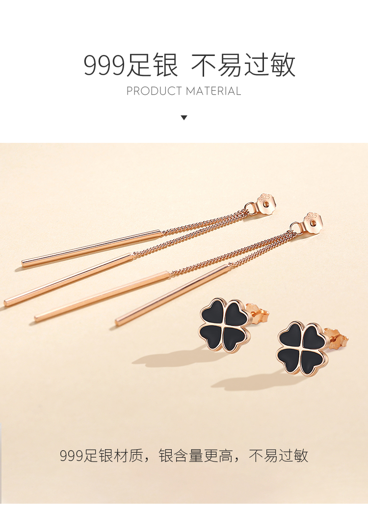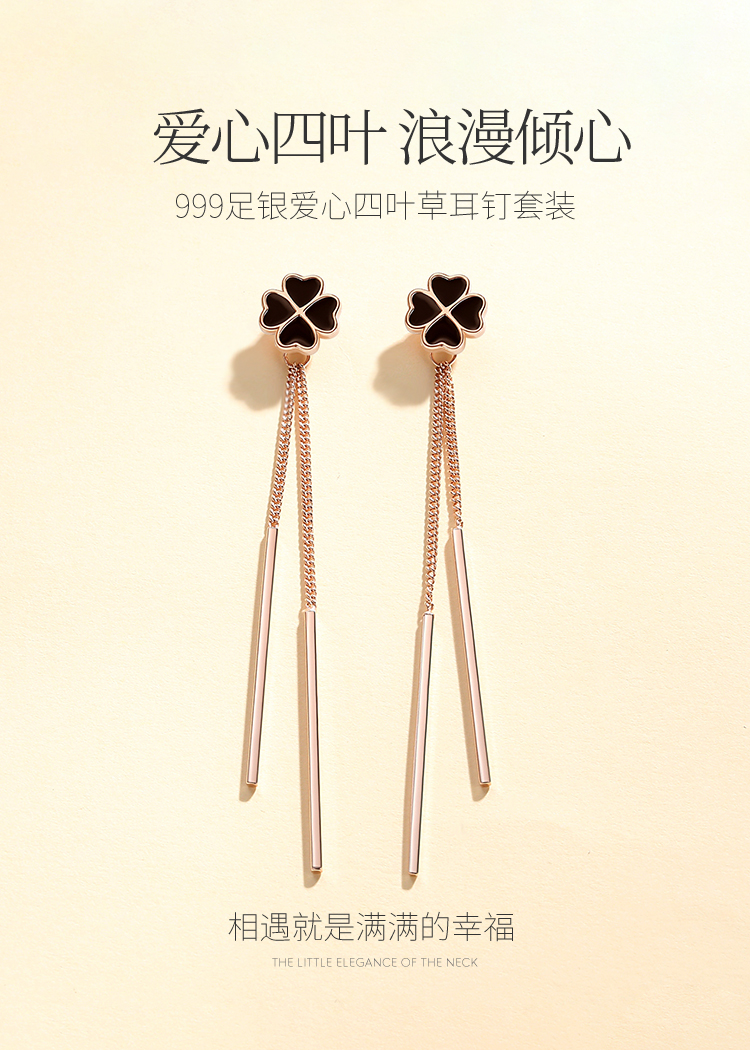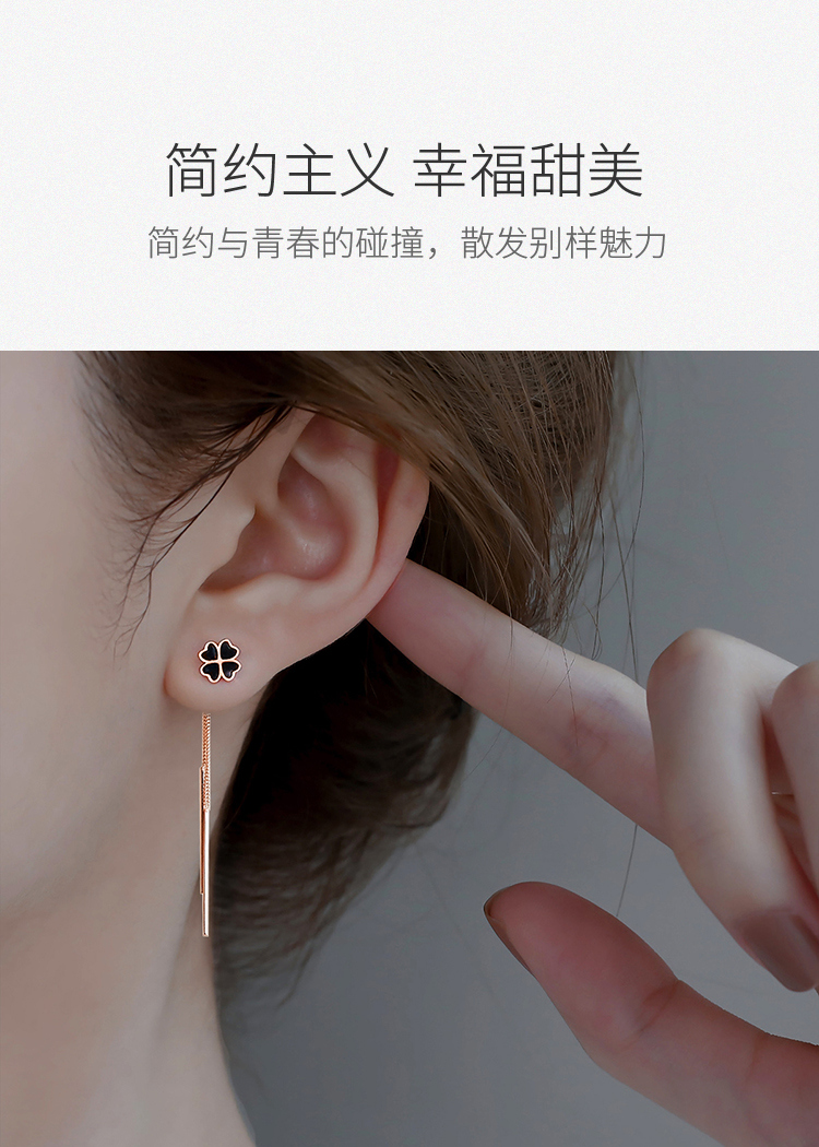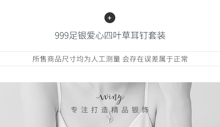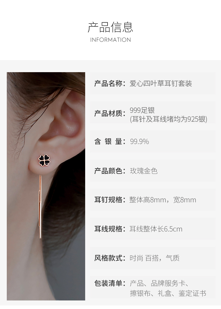 Winy999足银爱心四叶草耳钉流苏耳堵两件套轻奢小众高级感耳坠耳饰送女友生日礼物