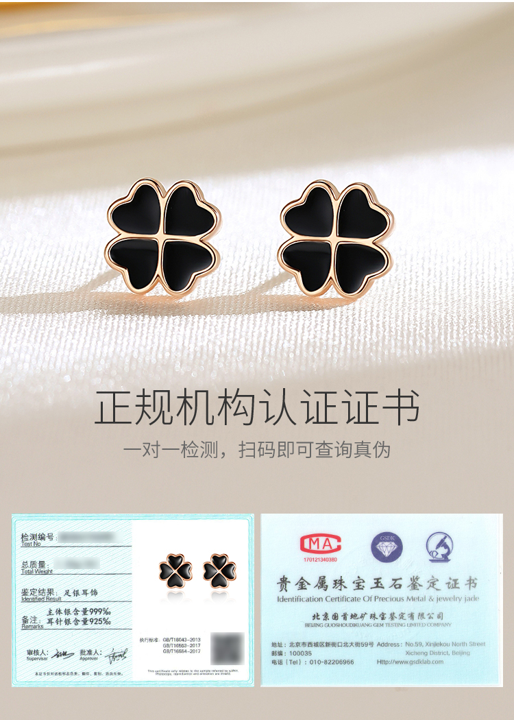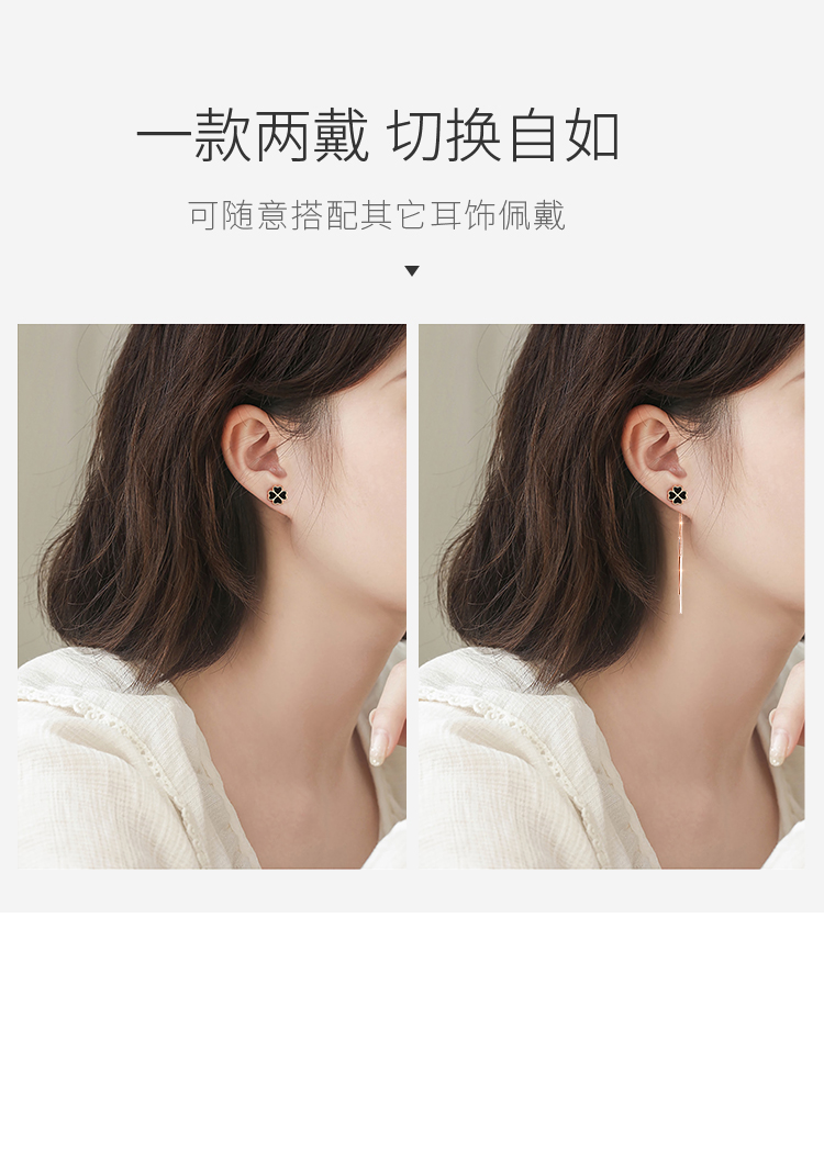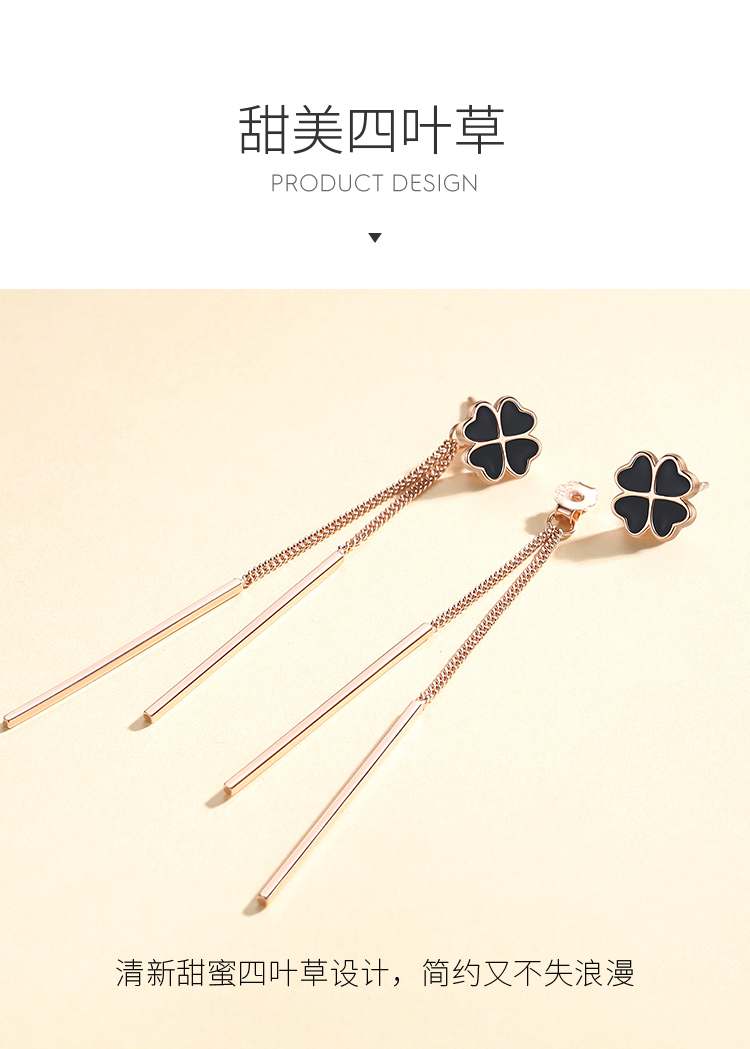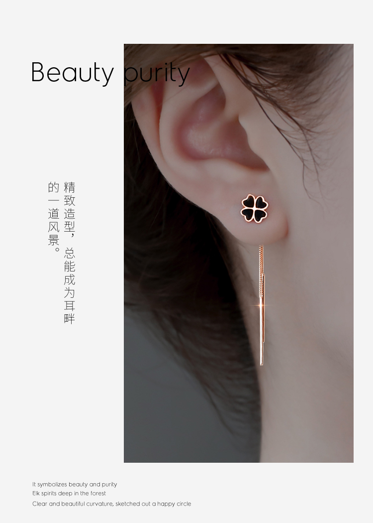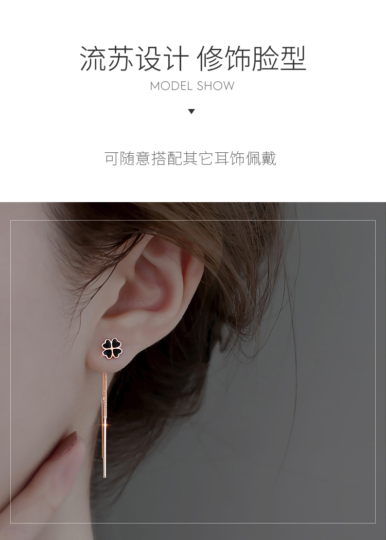 Winy999足银爱心四叶草耳钉流苏耳堵两件套轻奢小众高级感耳坠耳饰送女友生日礼物