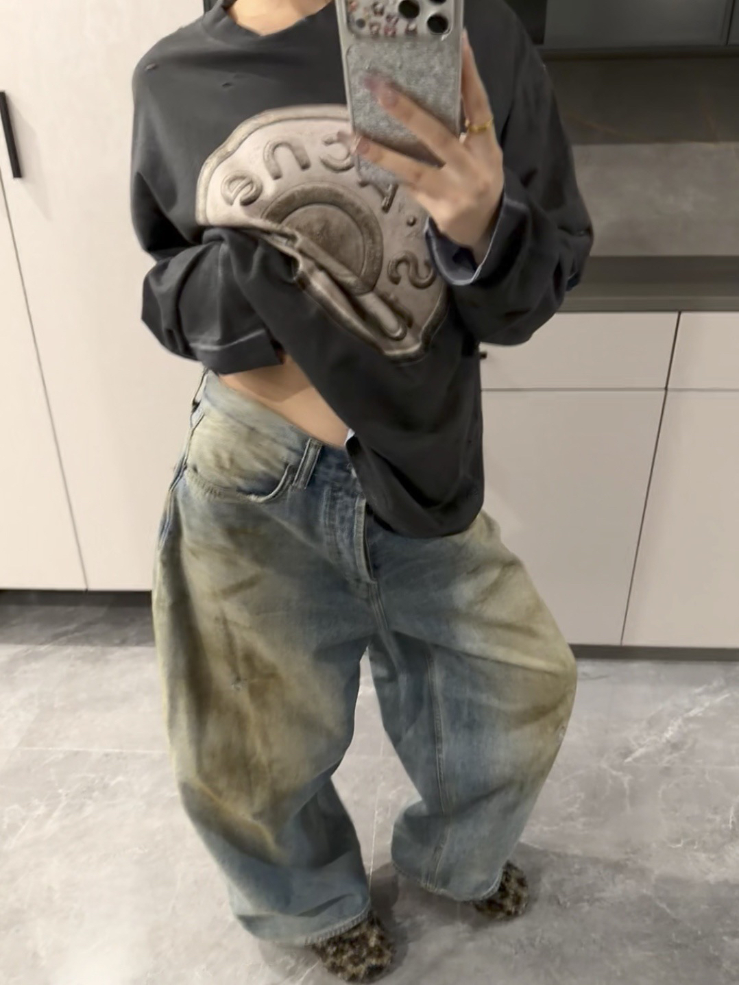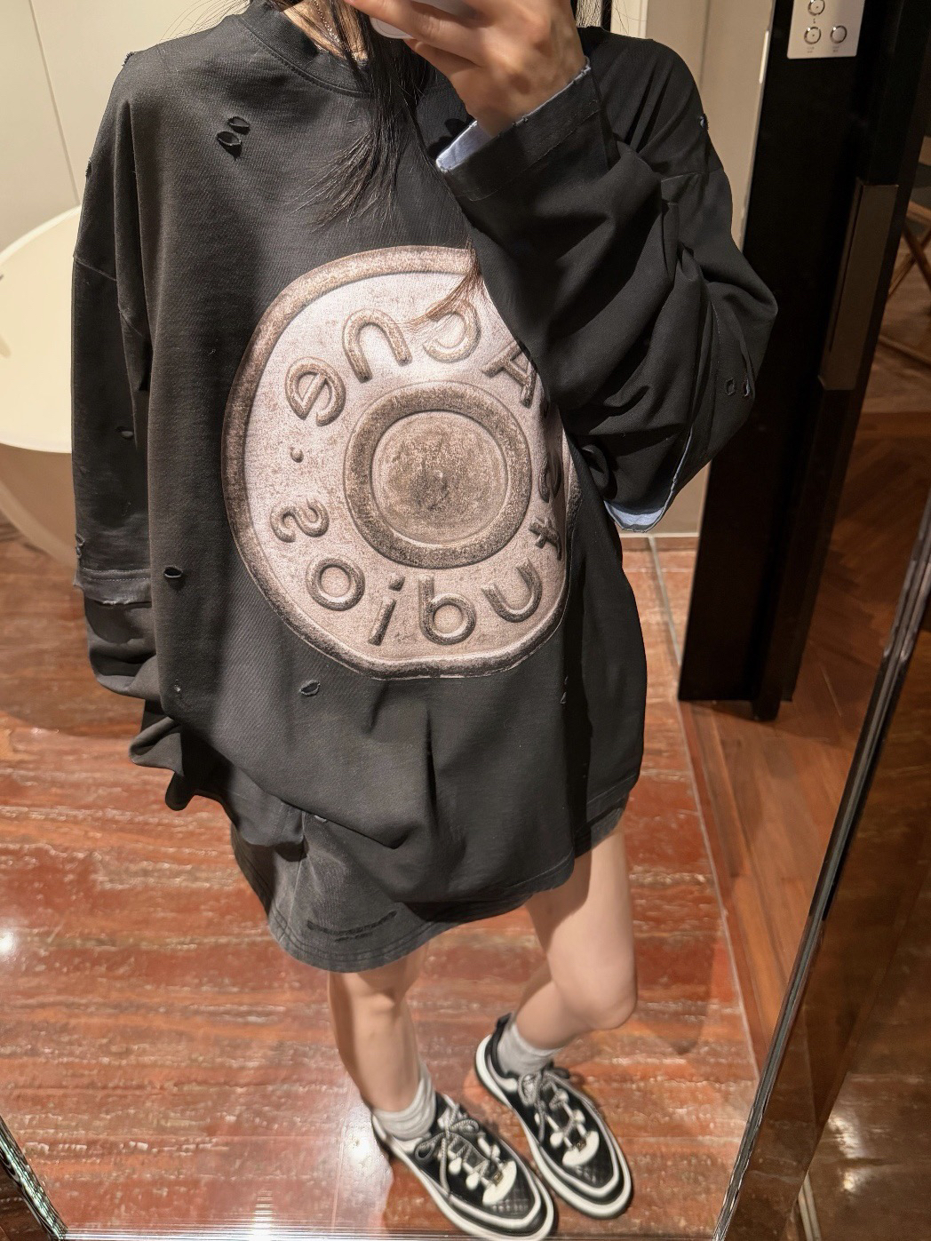 整件衣服为全喷马骝工艺耗时非常久 都是均为手工一件件喷的