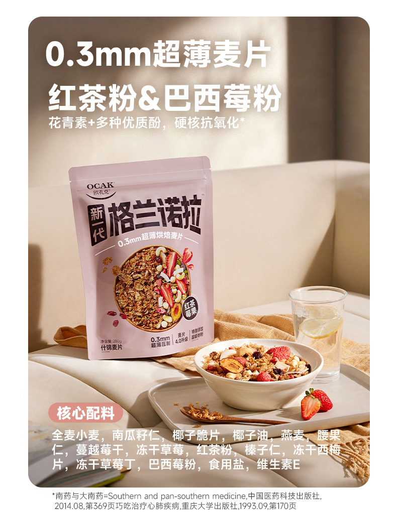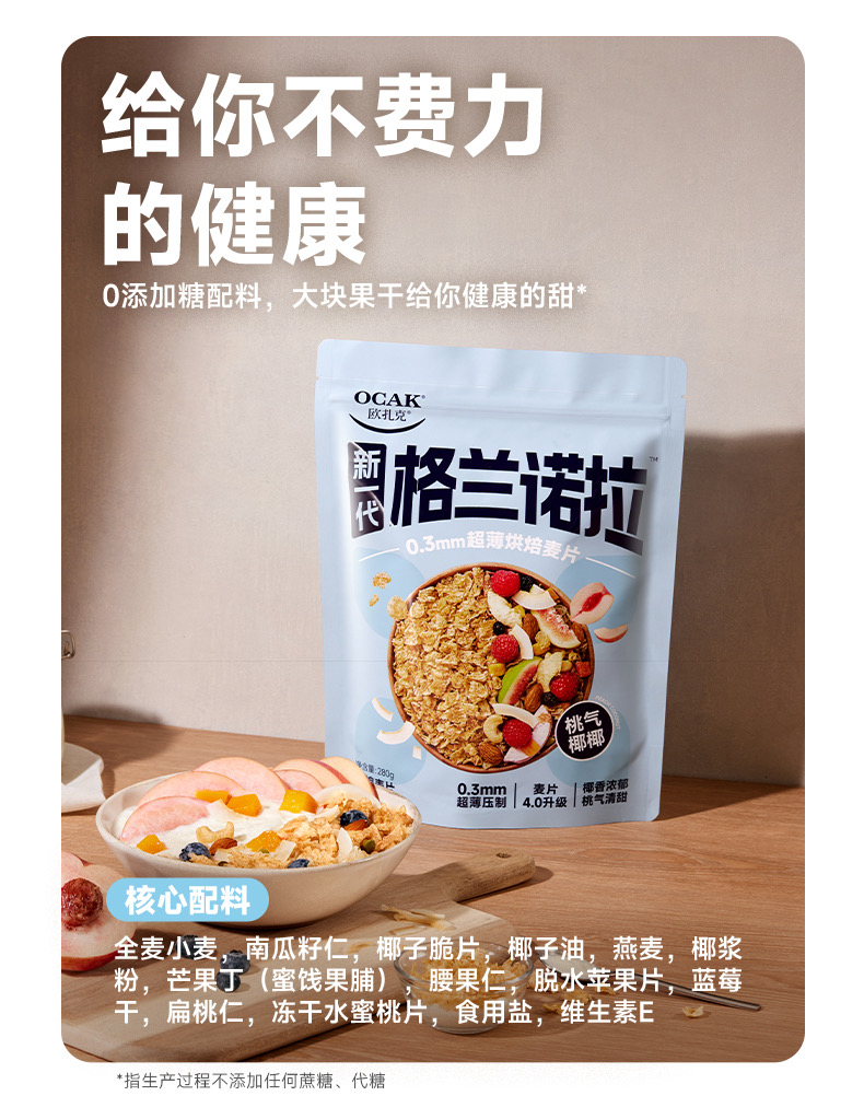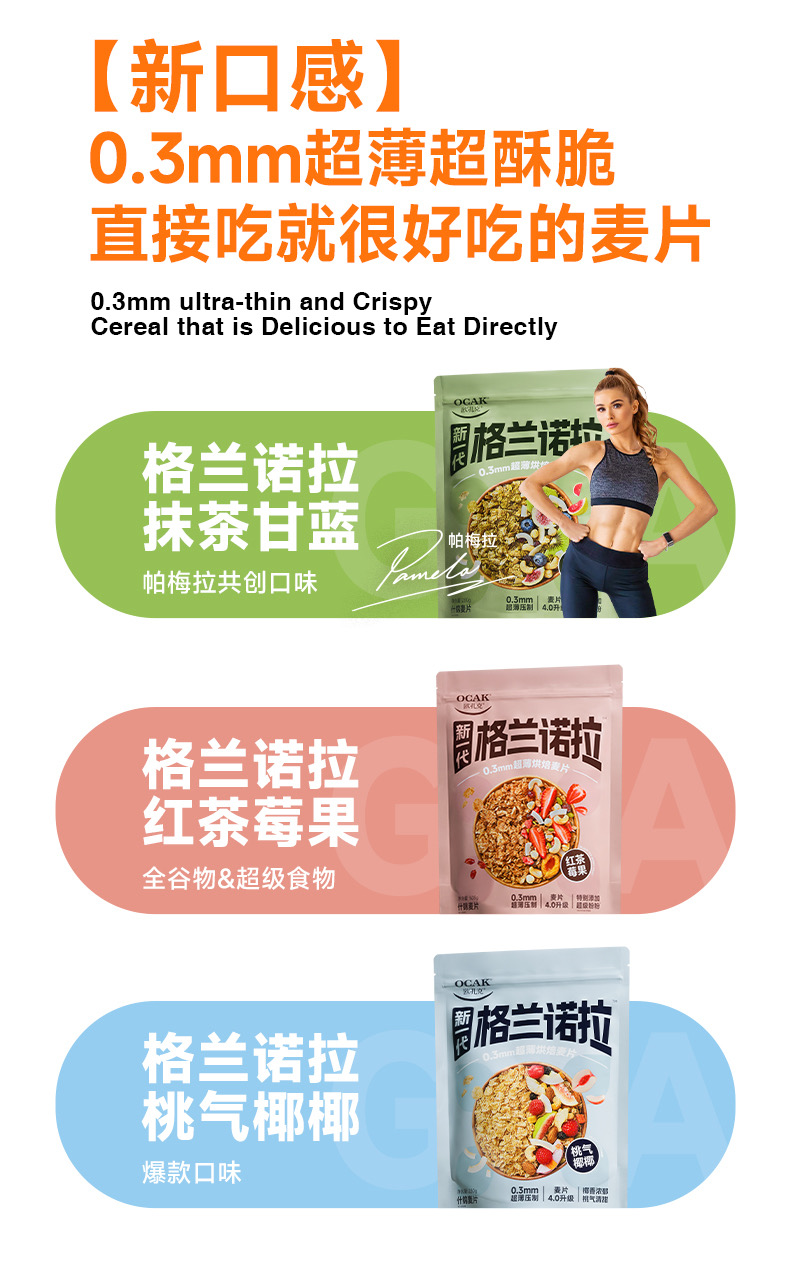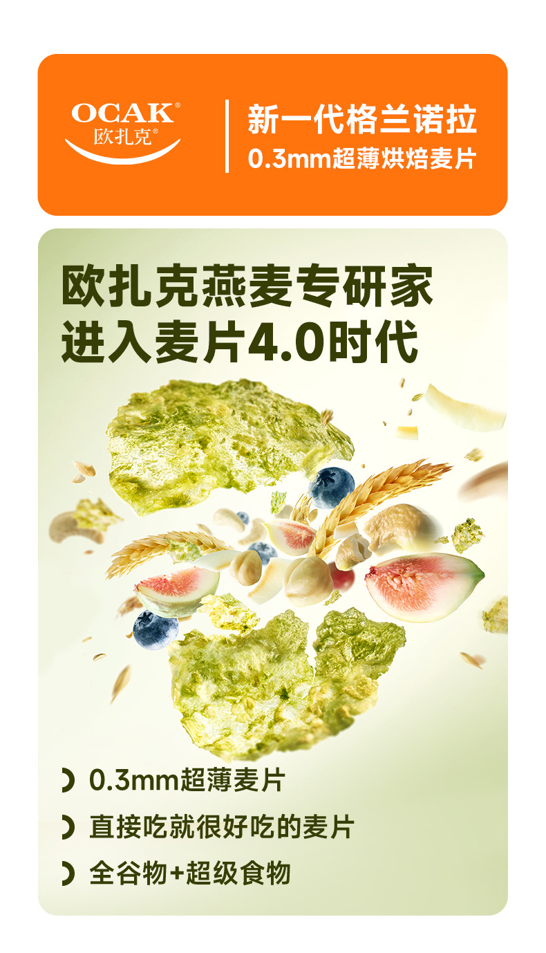 欧扎克格兰诺拉超薄烘焙麦片即食代餐饱腹干吃