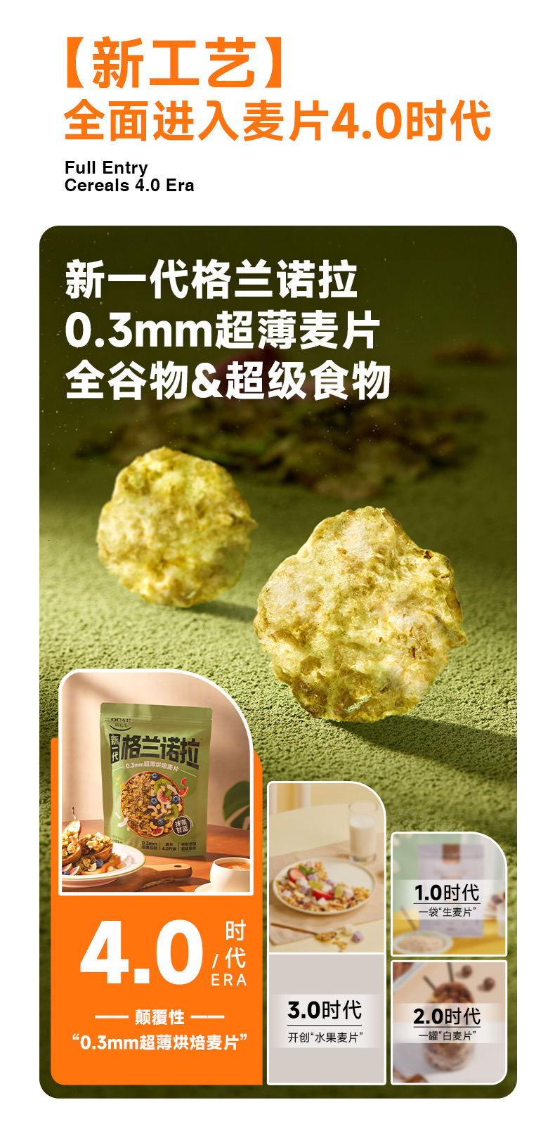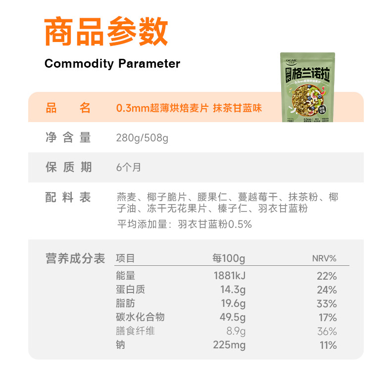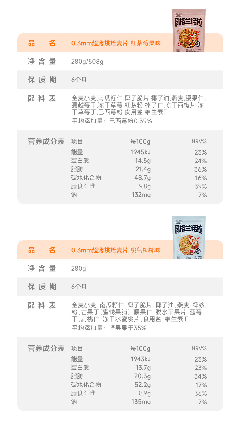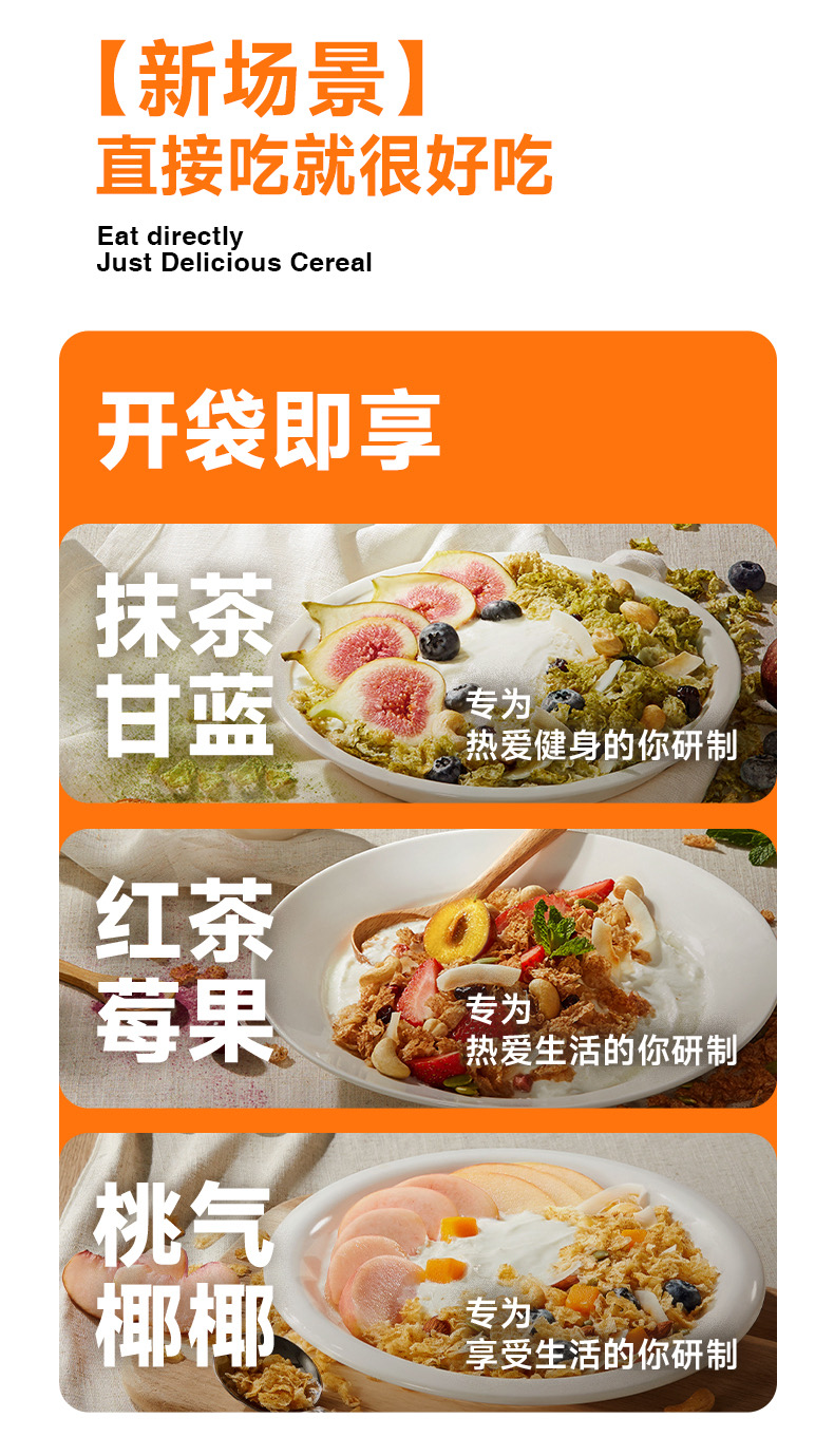 欧扎克格兰诺拉超薄烘焙麦片即食代餐饱腹干吃