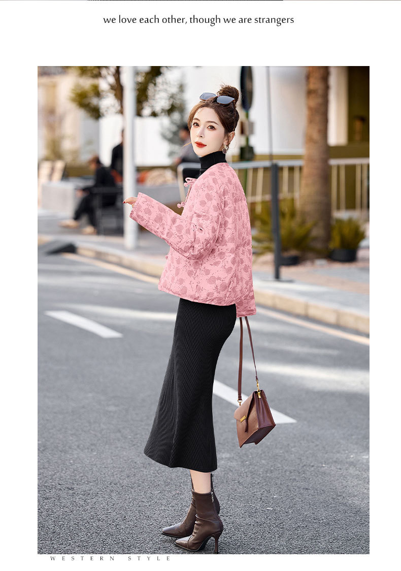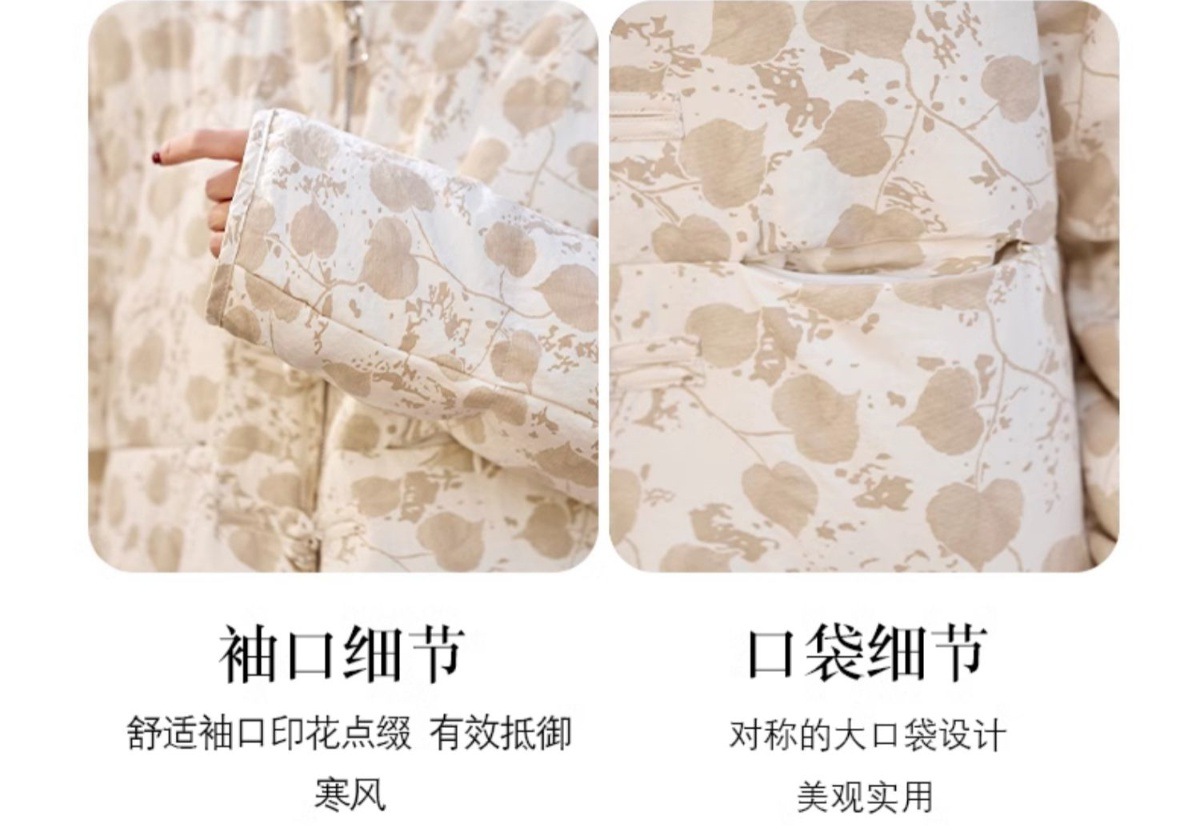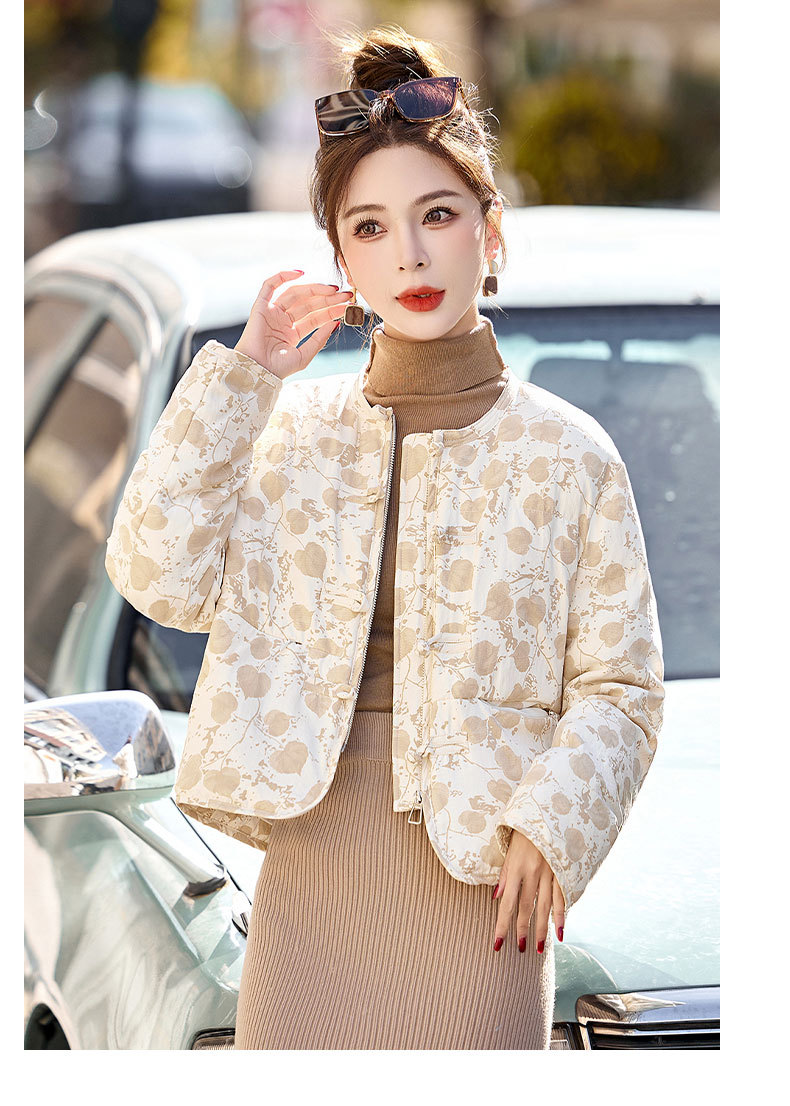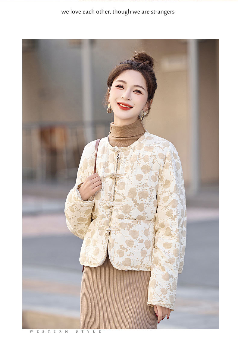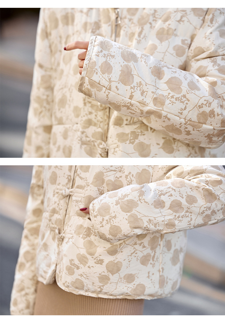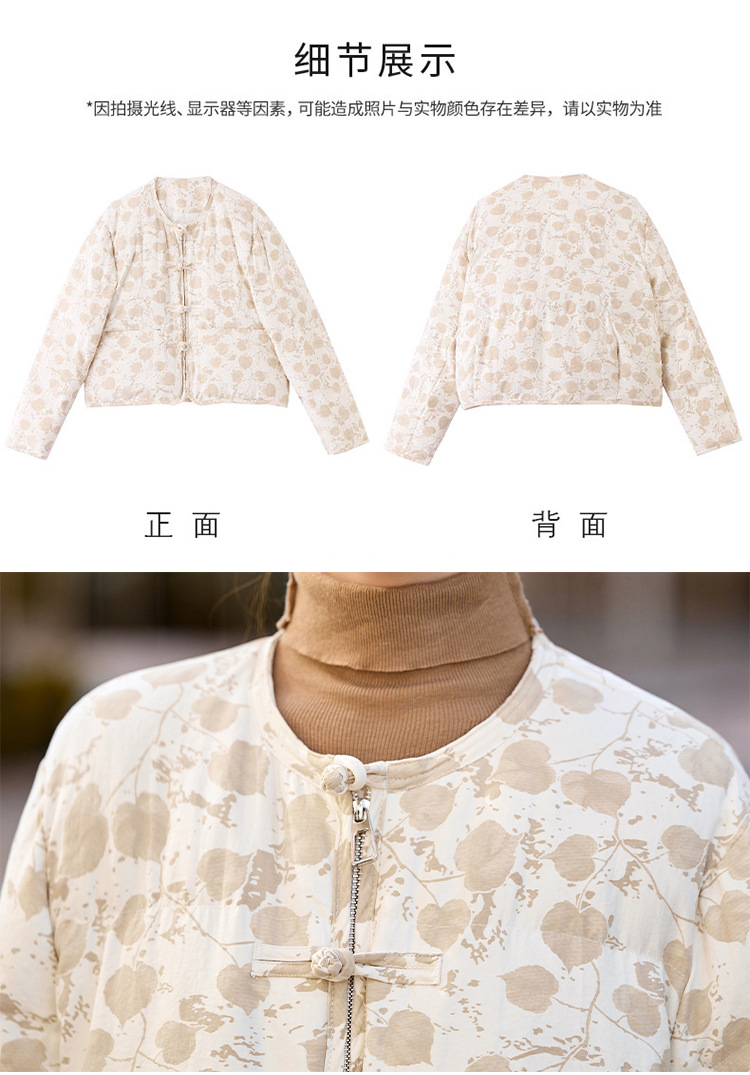 新中式国风羽绒服冬季小个子时尚复古印花盘扣短款白鸭绒外套BX2821