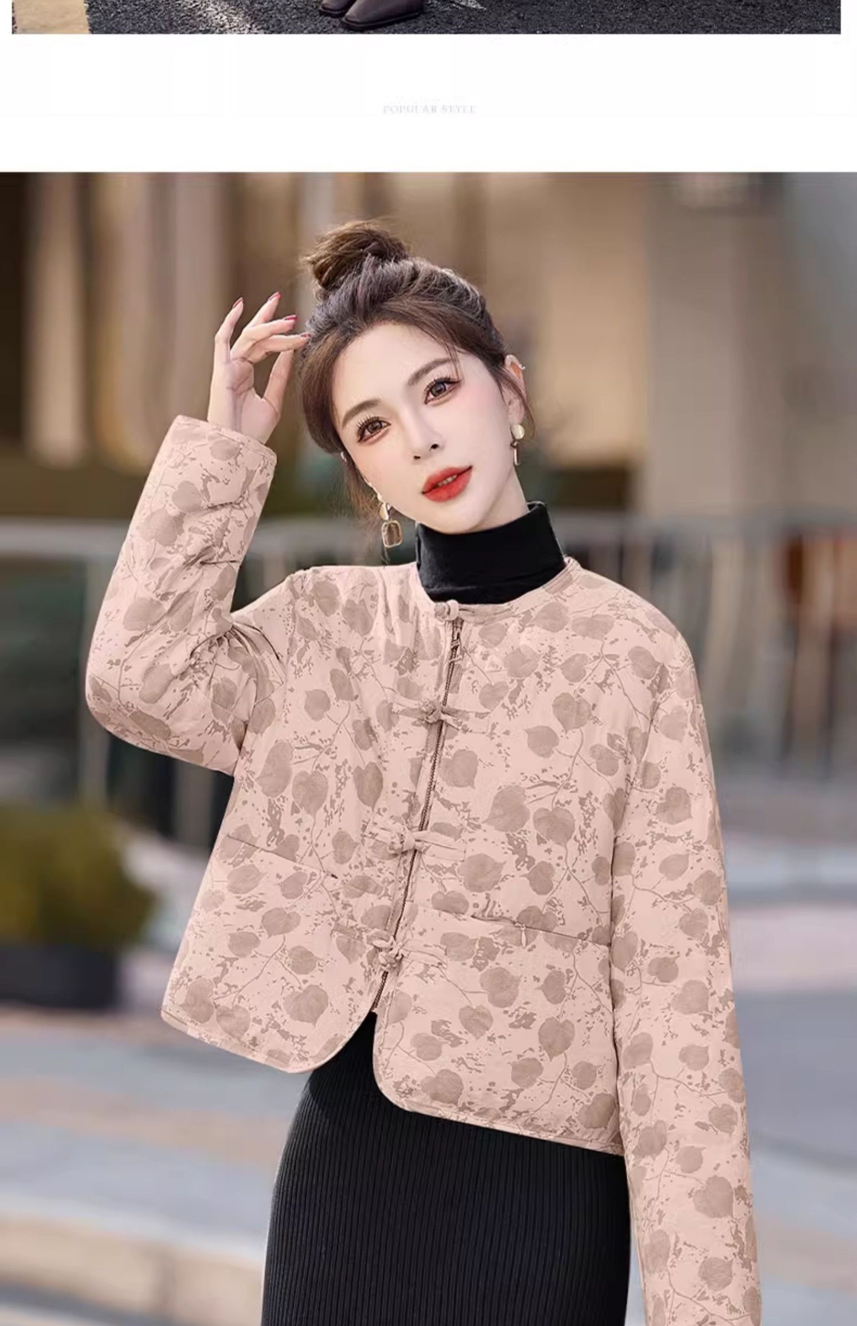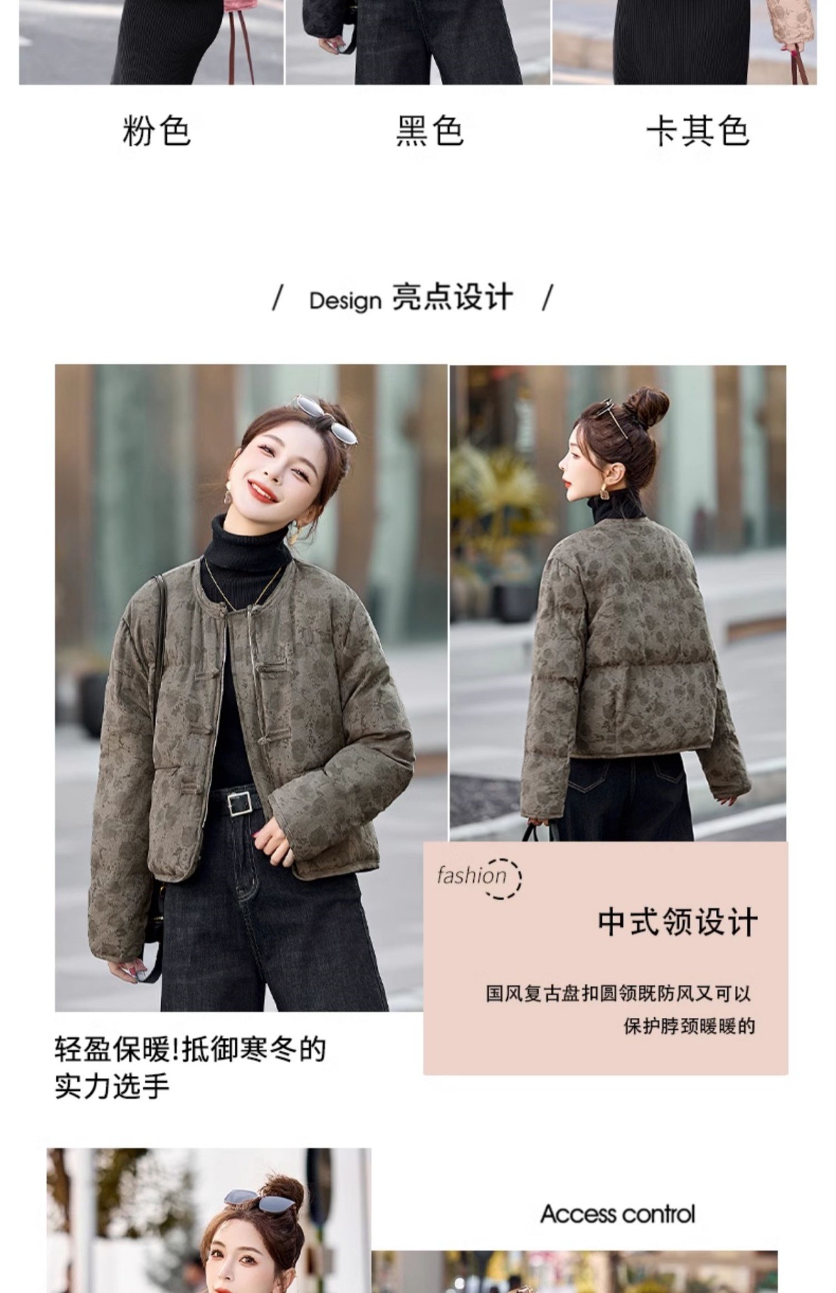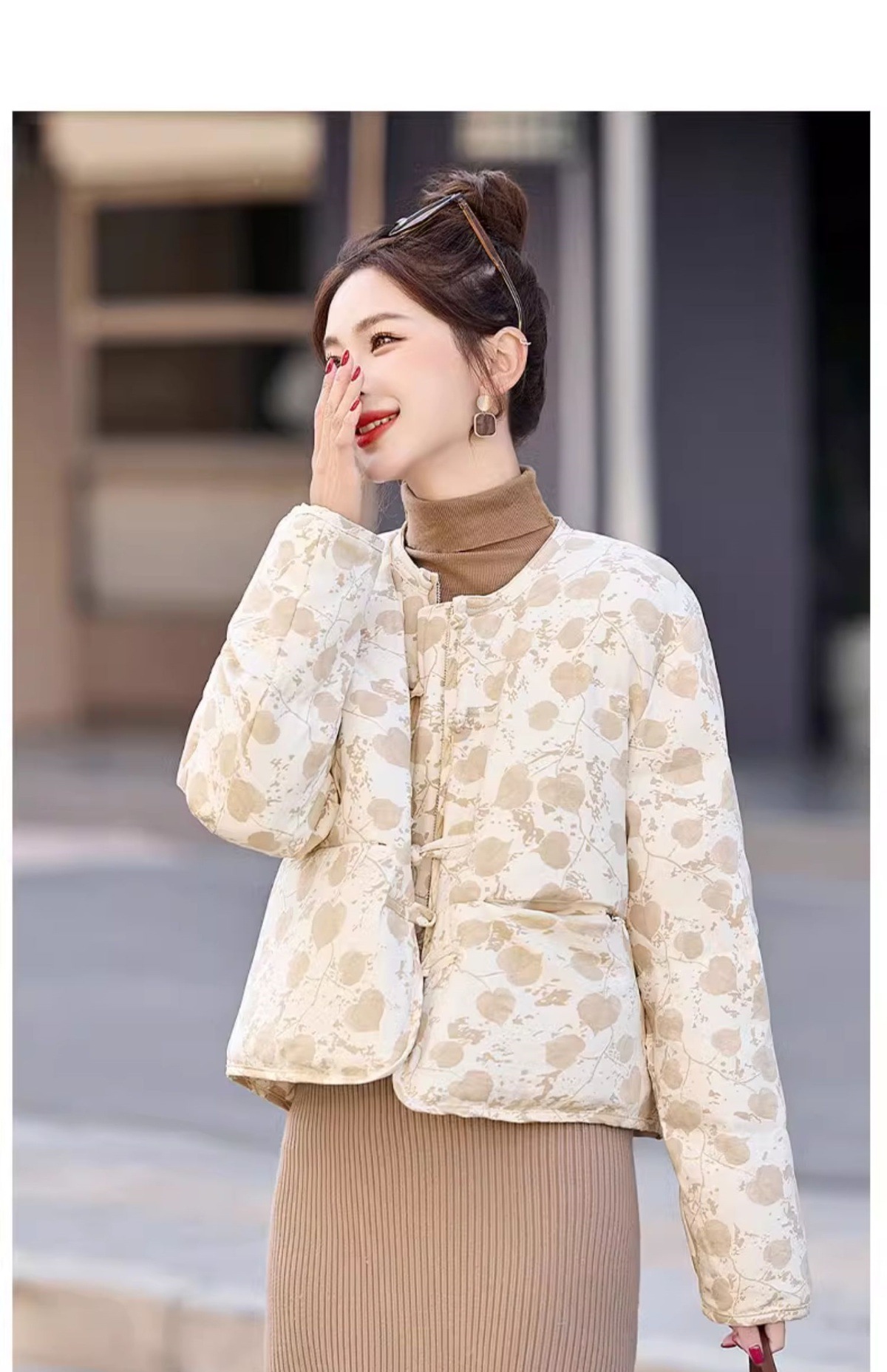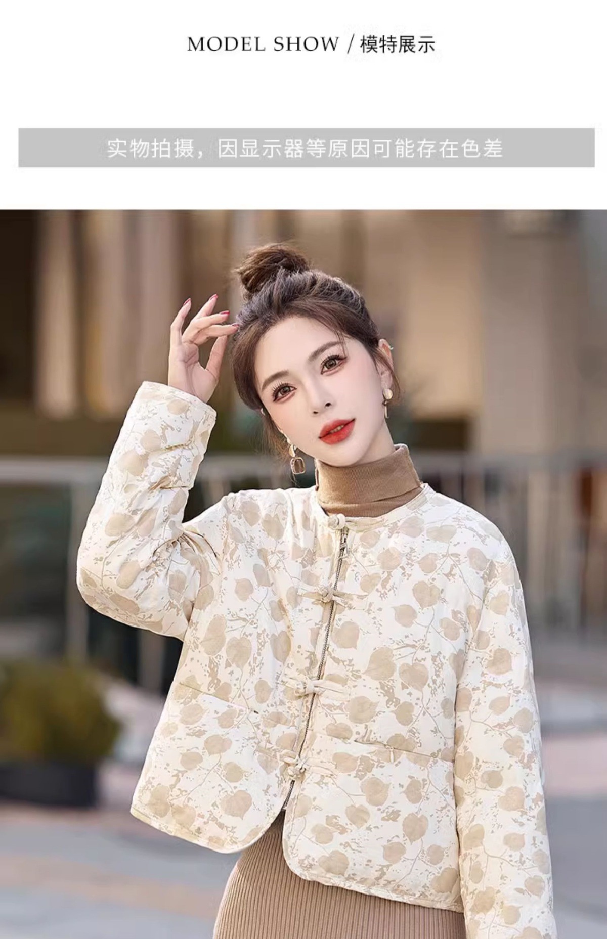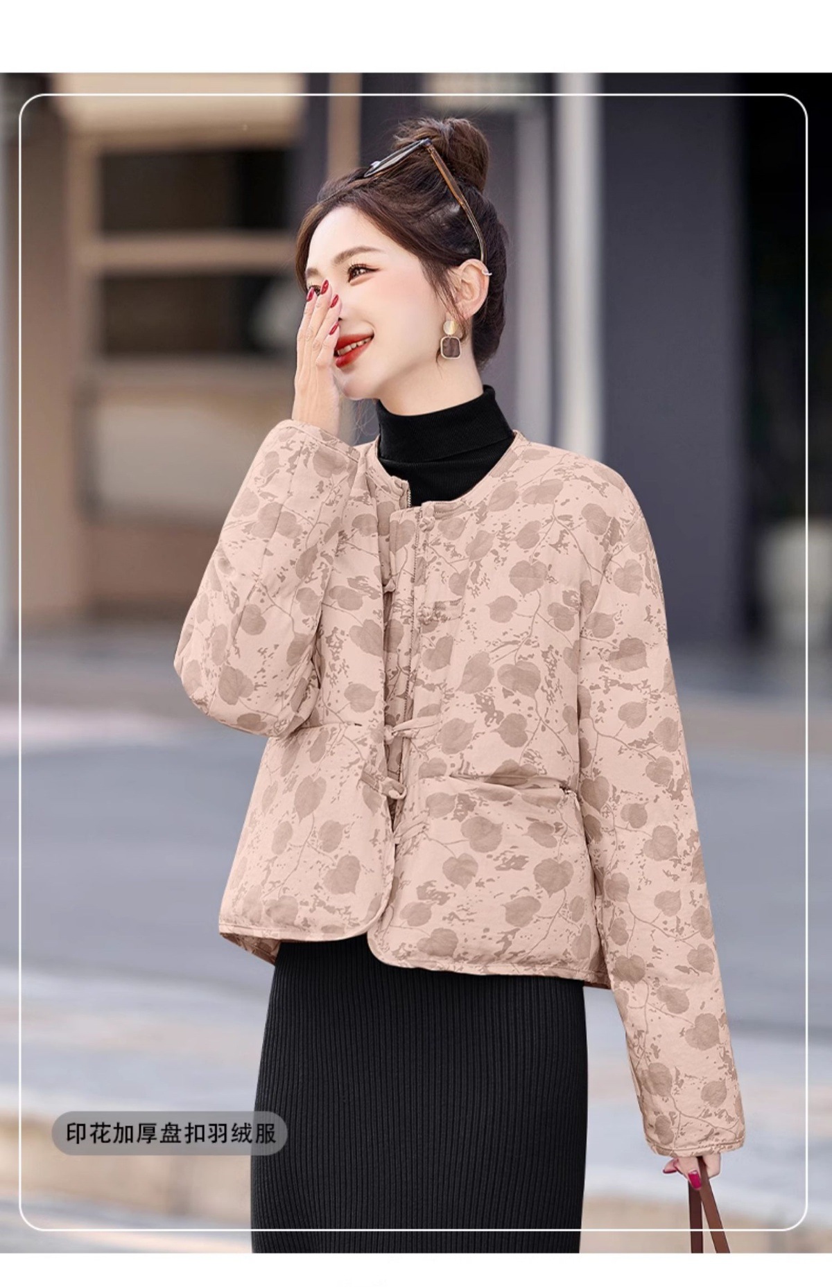 新中式国风羽绒服冬季小个子时尚复古印花盘扣短款白鸭绒外套BX2821