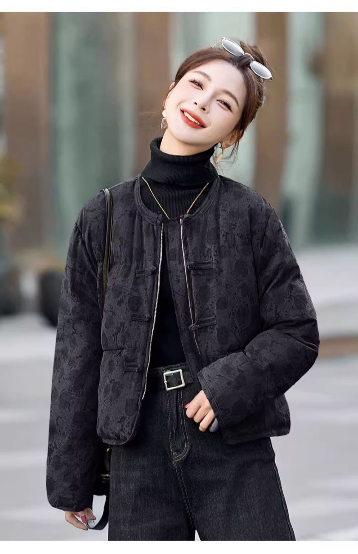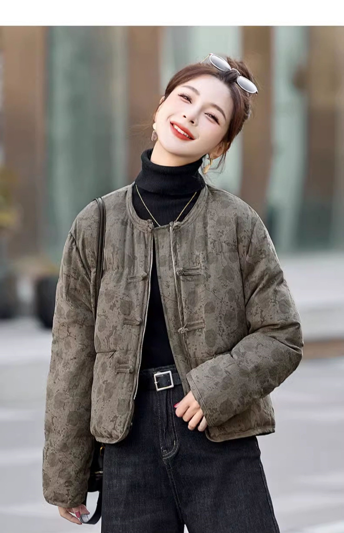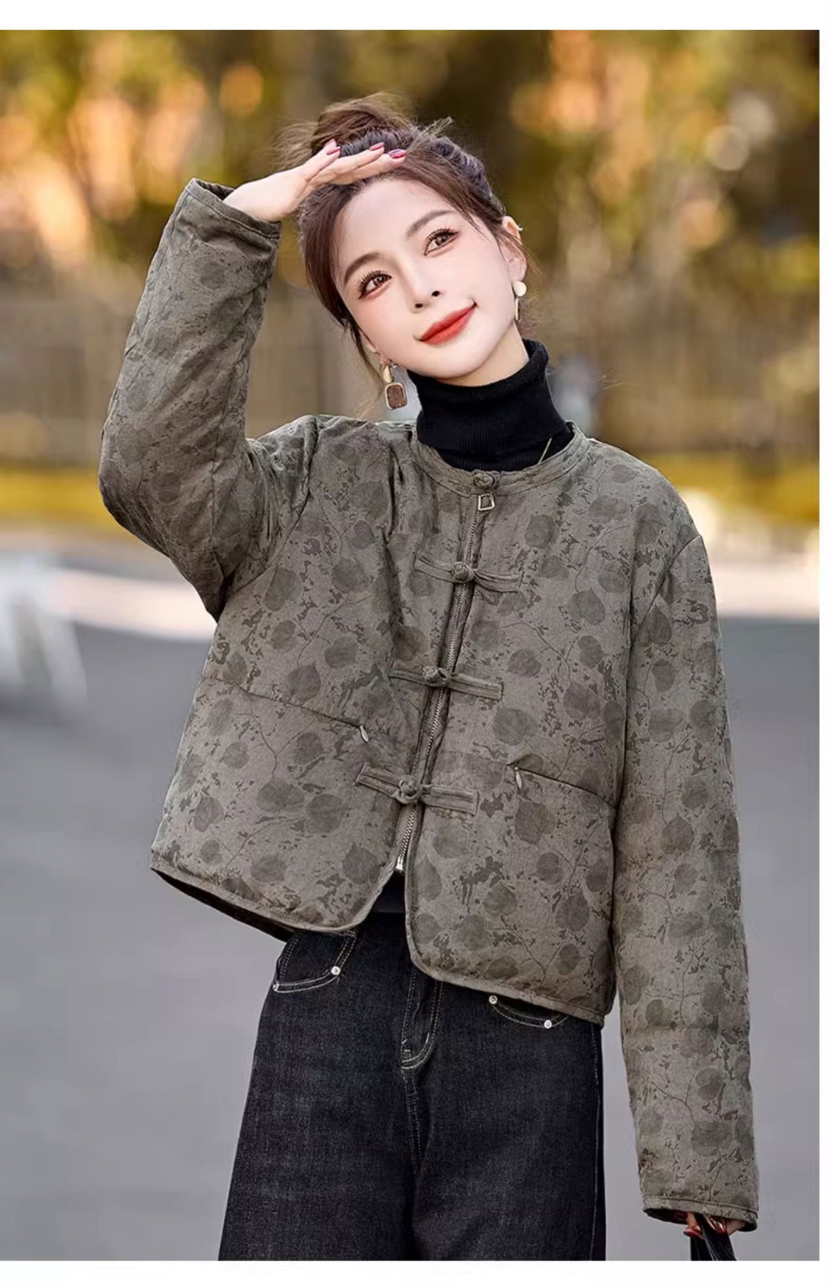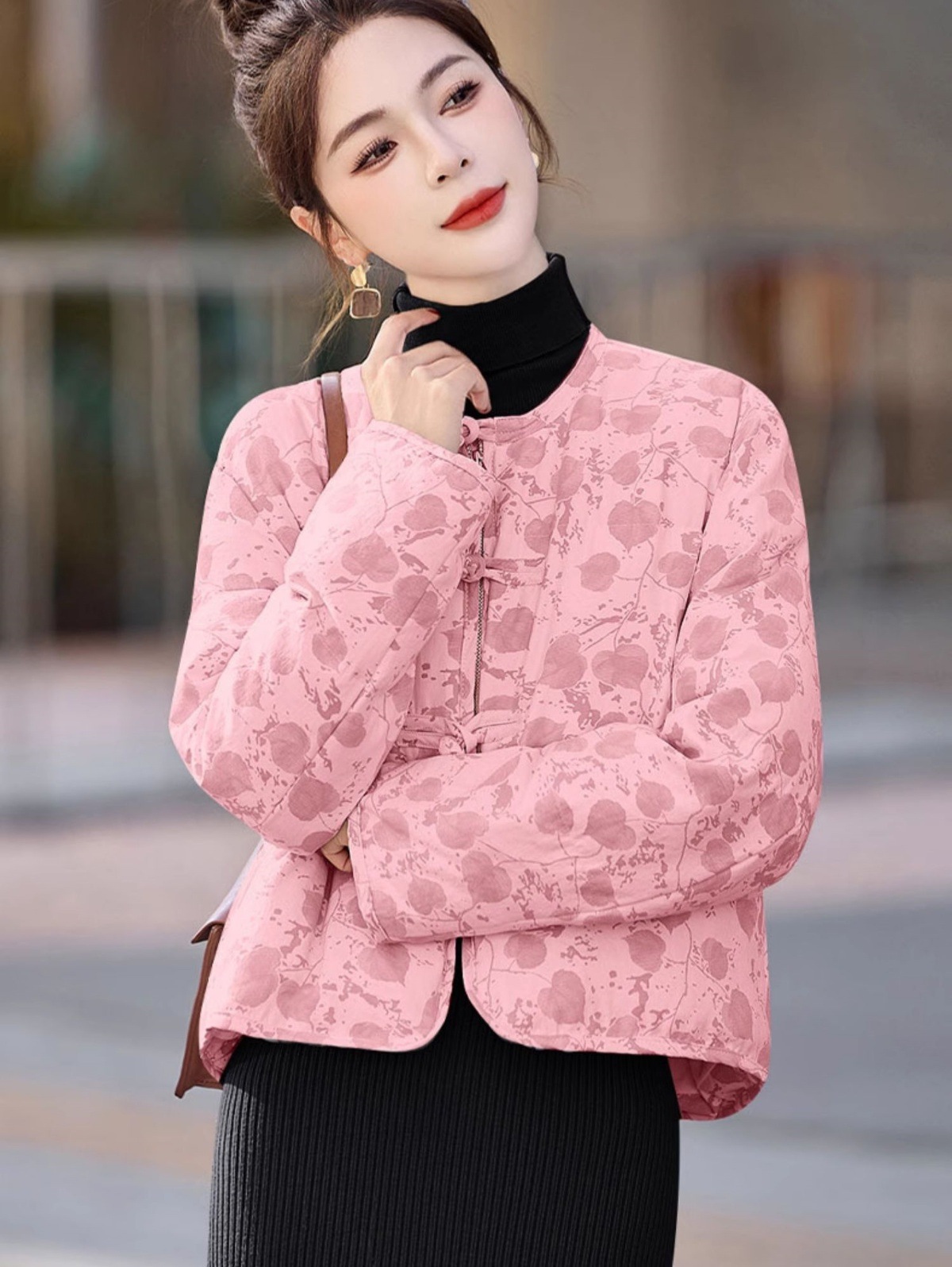新中式国风羽绒服冬季小个子时尚复古印花盘扣短款白鸭绒外套BX2821